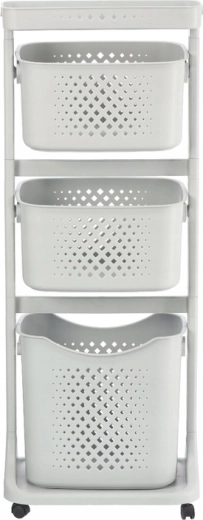 Hold orden med en mobil reol, der sparer plads og giver maksimal opbevaring. Fire perforerede kurve sikrer luftcirkulation og overblik over indholdet, og top-hylden er ideel til småting, du vil have lige ved hånden. Takket være hjul med glidende kørsel kan reolen nemt flyttes derhen, hvor den behøves.