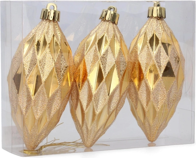 Elegant sæt med tre aflange juleornamenter på 10 cm i rød, guld og sølv fra kollektionen Traditionel, som giver dit træ et klassisk julelook. Takket være den blanke overflade og det splintsikre materiale er de sikre i hjem med børn og samtidig robuste og holdbare.