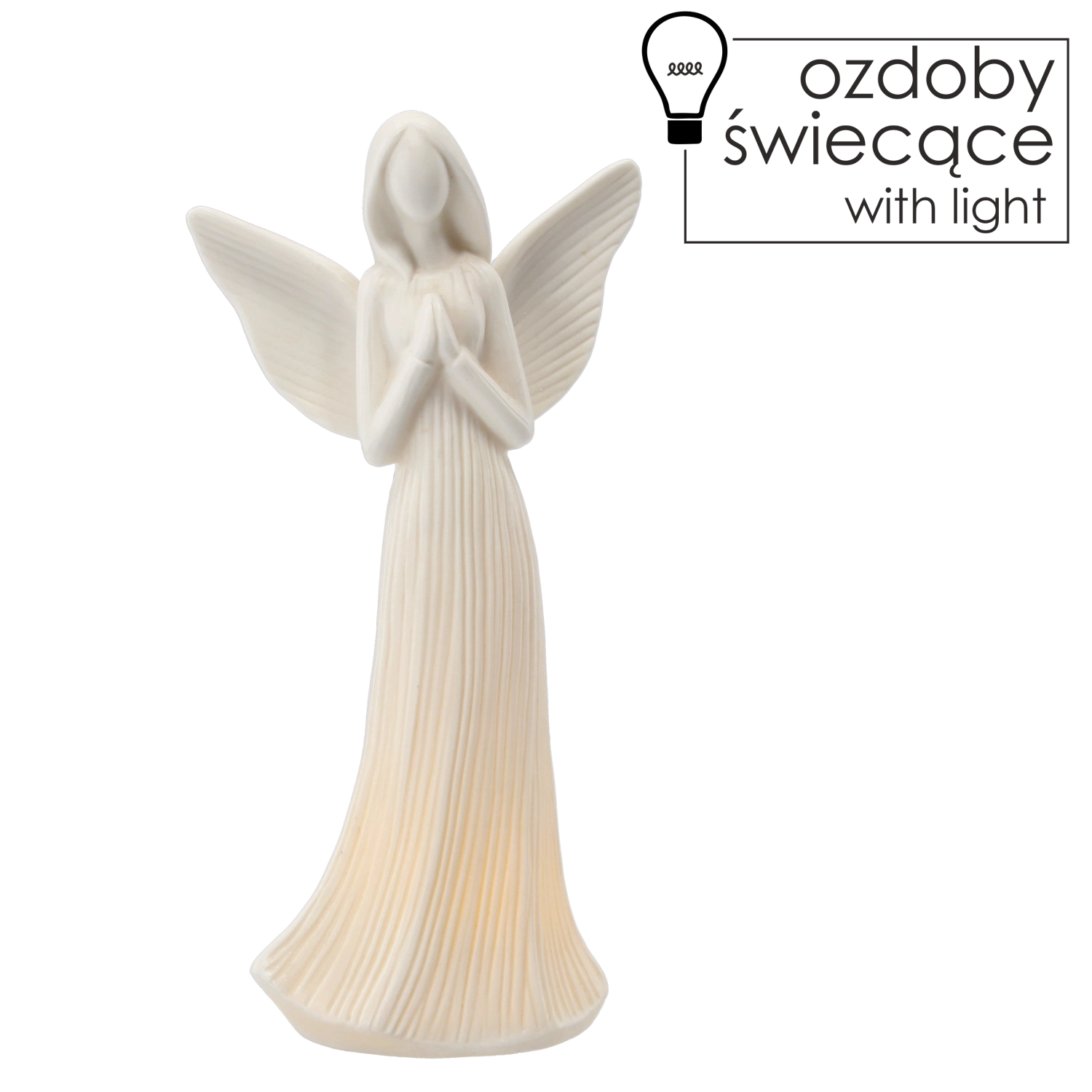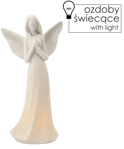 Denne engledekoration med LED-belysning udmærker sig ved sit klassiske, tidløse design og matte finish, som tager sig elegant ud i enhver indretning. Takket være den stabile base står den sikkert på plane overflader, og dens højde på 23,6 cm gør den ideel til stue, soveværelse og entré.