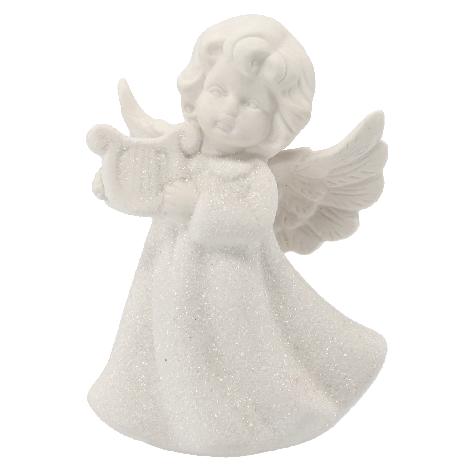 Hver figur har sit eget udtryk – hjerte, harpe eller bøn – og sammen danner de en harmonisk helhed. De er fremragende som dekoration hele året, men også som en symbolsk gave, der udtrykker omsorg, beskyttelse og fred.