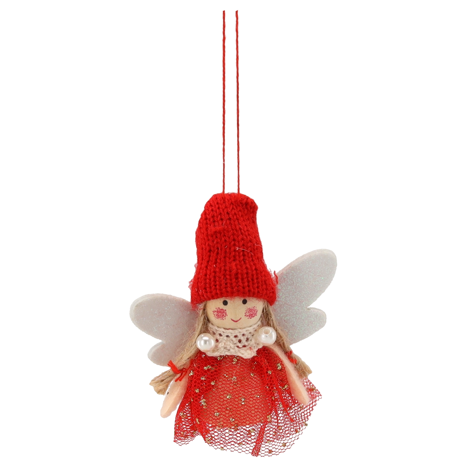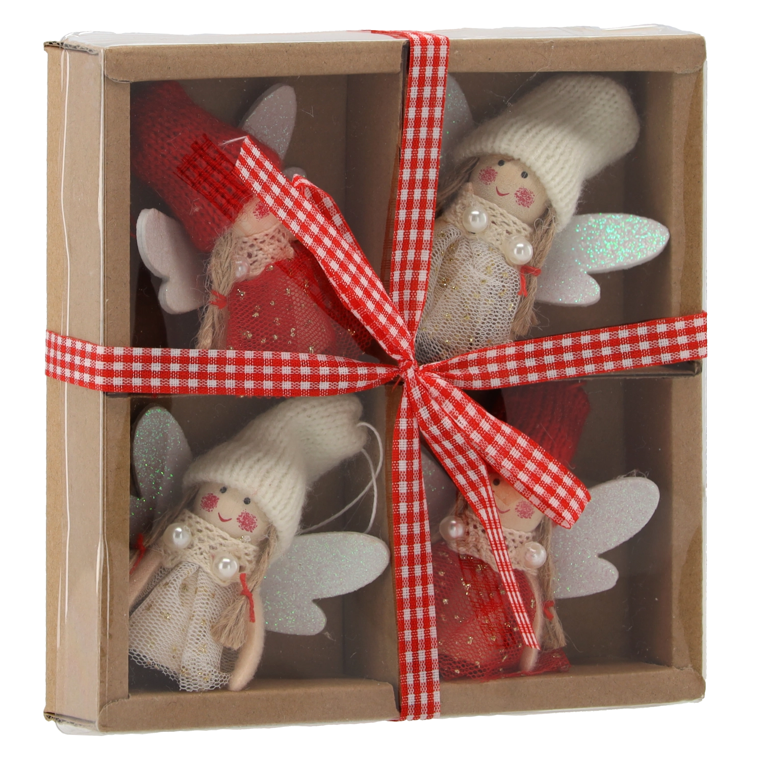 Dette sæt indeholder fire engle med strikkede huer, glitrende vinger og fine detaljer, som giver julepynten et eventyrligt præg. Takket være de alsidige farver – rød og hvid – passer de nemt til både traditionelle og moderne dekorationer.