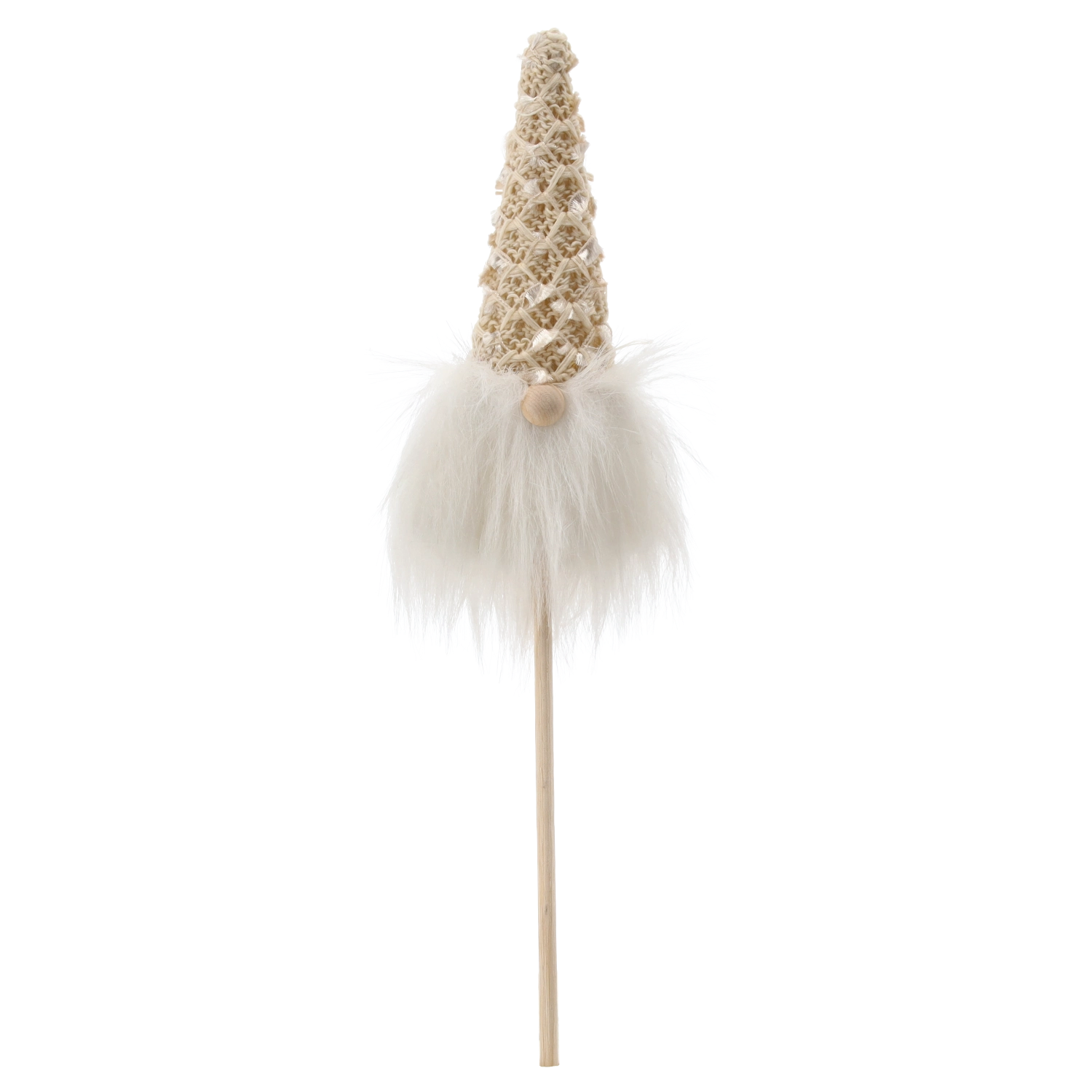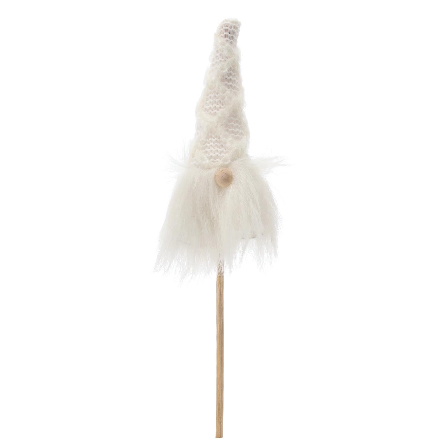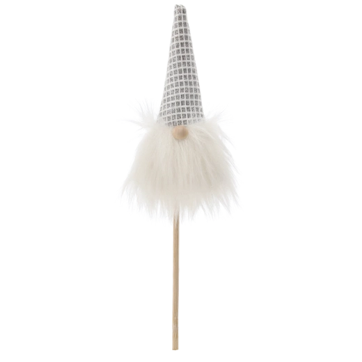 Denne yndige jule-nisse på pind bringer en varm atmosfære og et legende præg til hjemmet. Den gennemtænkte kombination af kvalitetstekstil og træ gør den let, men stabil, og nem at arrangere i urtepotter, julebuketter, kranse eller borddekorationer.