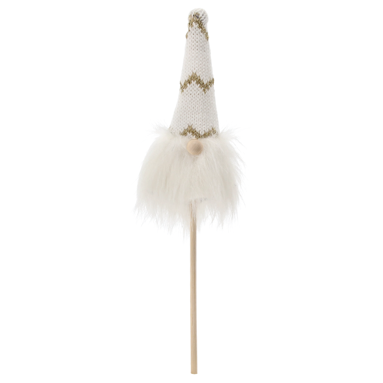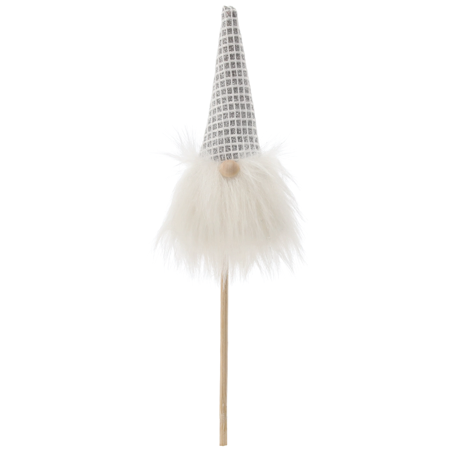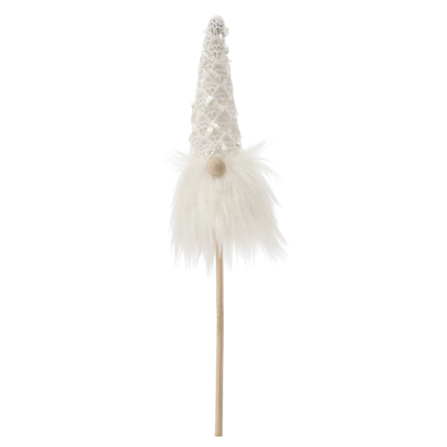 Denne yndige jule-nisse på pind bringer en varm atmosfære og et legende præg til hjemmet. Den gennemtænkte kombination af kvalitetstekstil og træ gør den let, men stabil, og nem at arrangere i urtepotter, julebuketter, kranse eller borddekorationer.