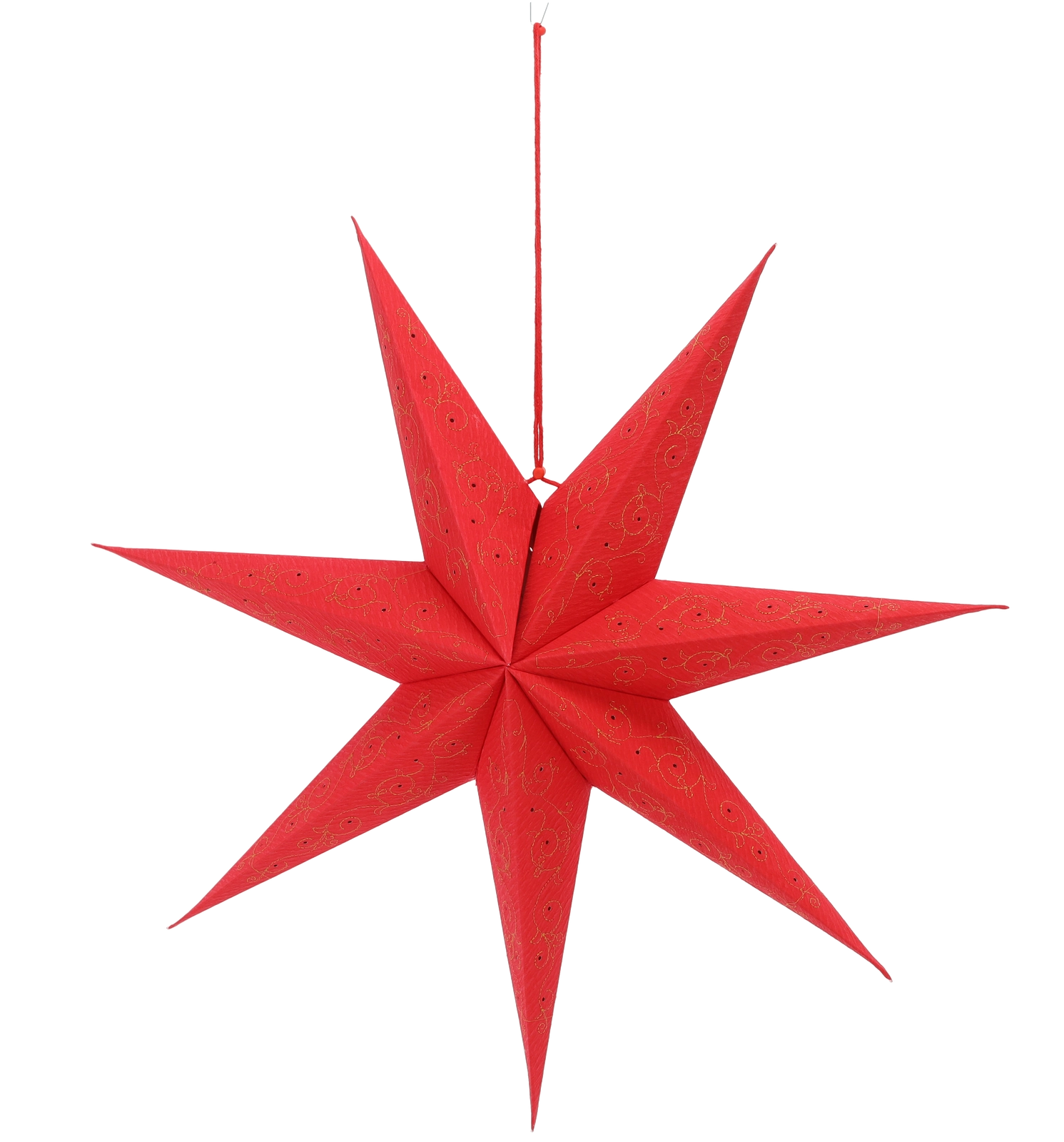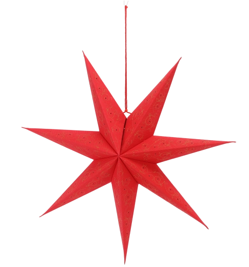 Skab en festlig stemning i hjemmet med en elegant papirstjerne i dyb rød med guldbroderi. Med en diameter på 60 cm tager den sig flot ud i vinduet, over bordet eller i udstillingen. Den er sammenklappelig, så den er let at opbevare og kan bruges igen og igen.