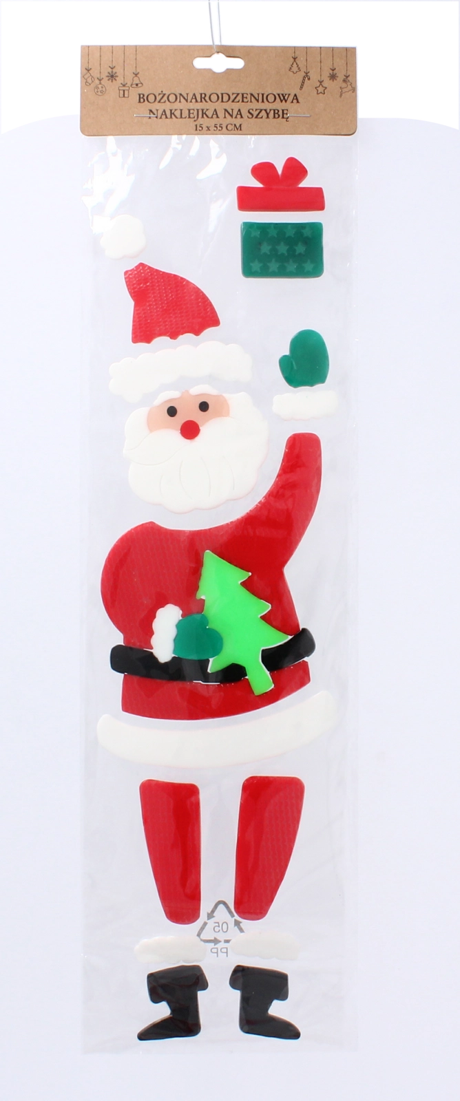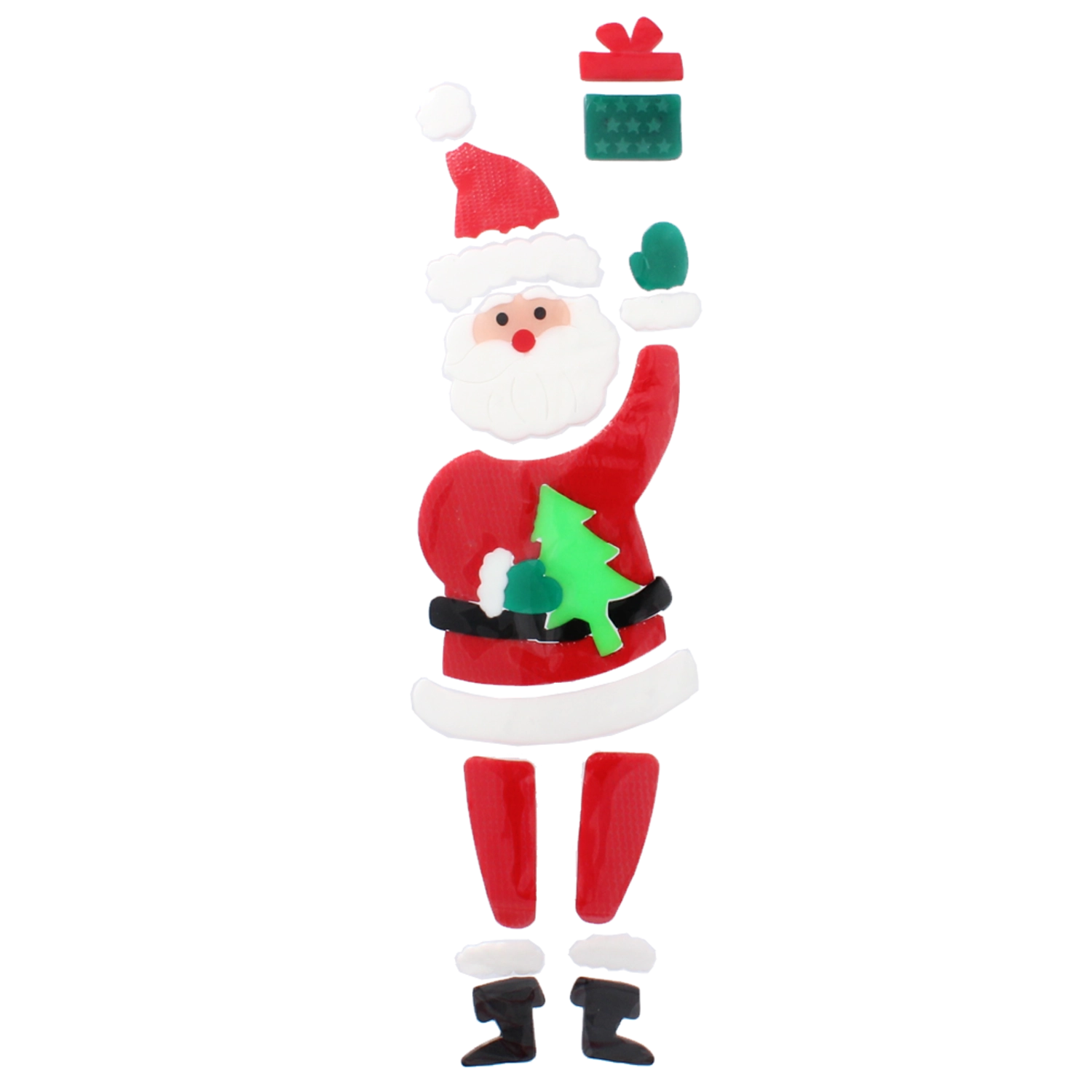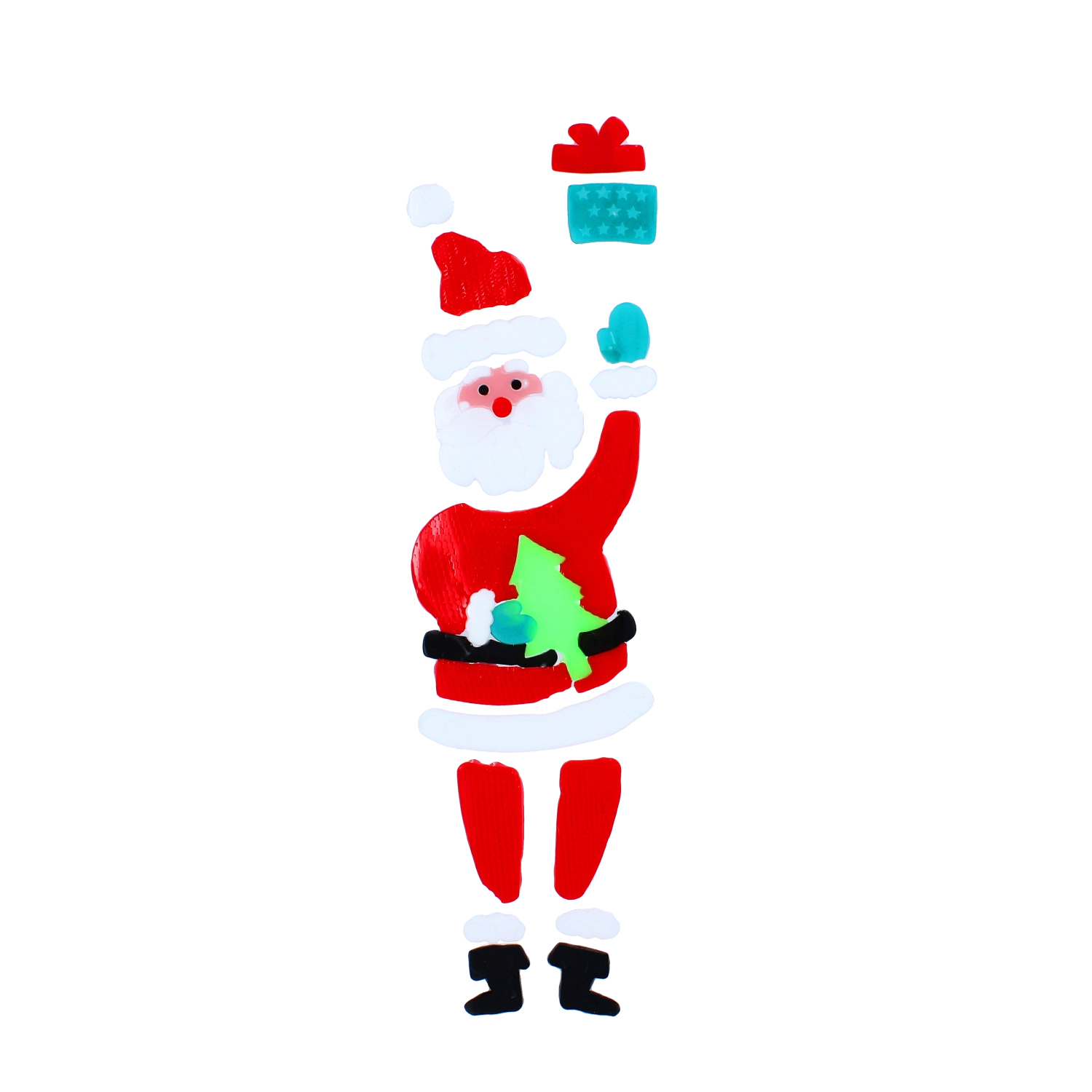 Det segmenterede motiv af JULEMANDEN med gave samles let på glasset og kan flyttes når som helst – uden lim og uden spor.