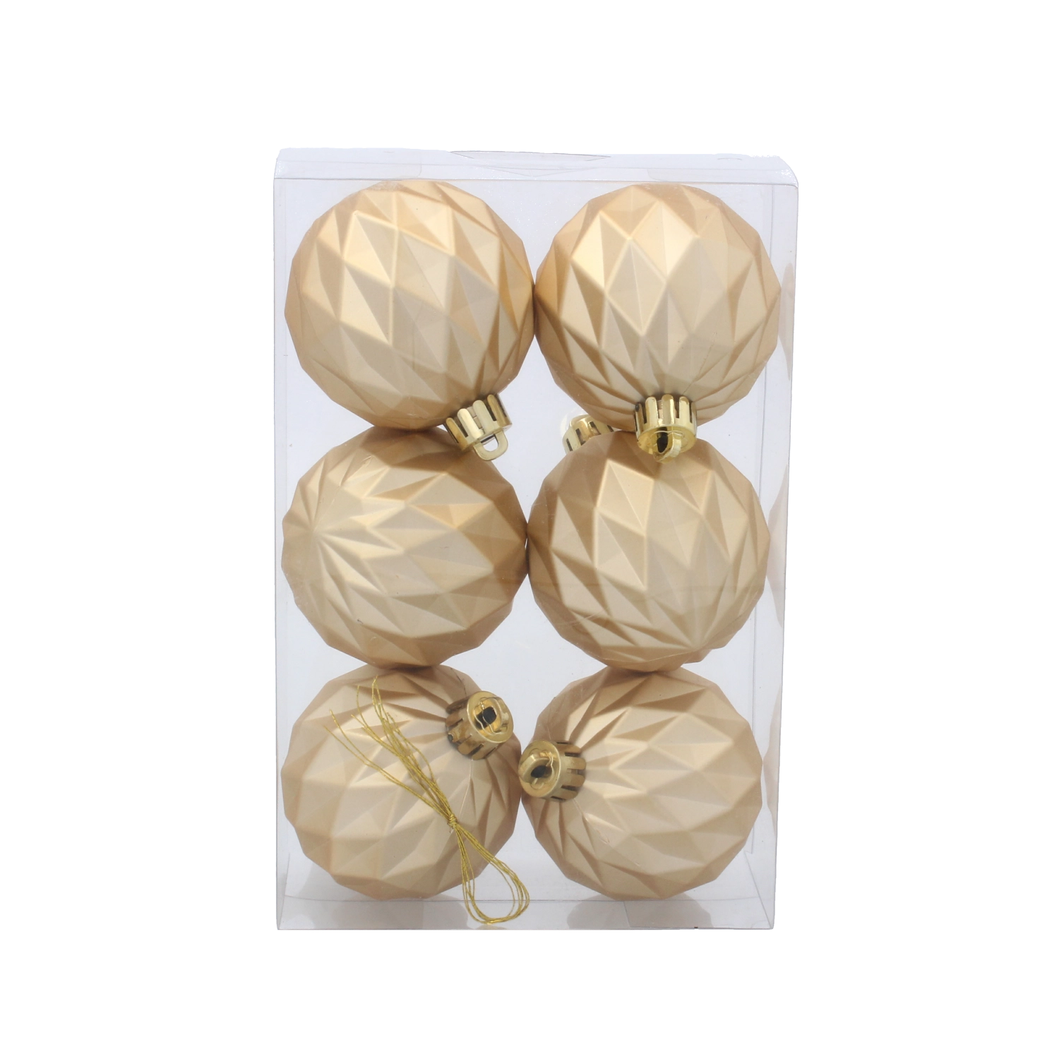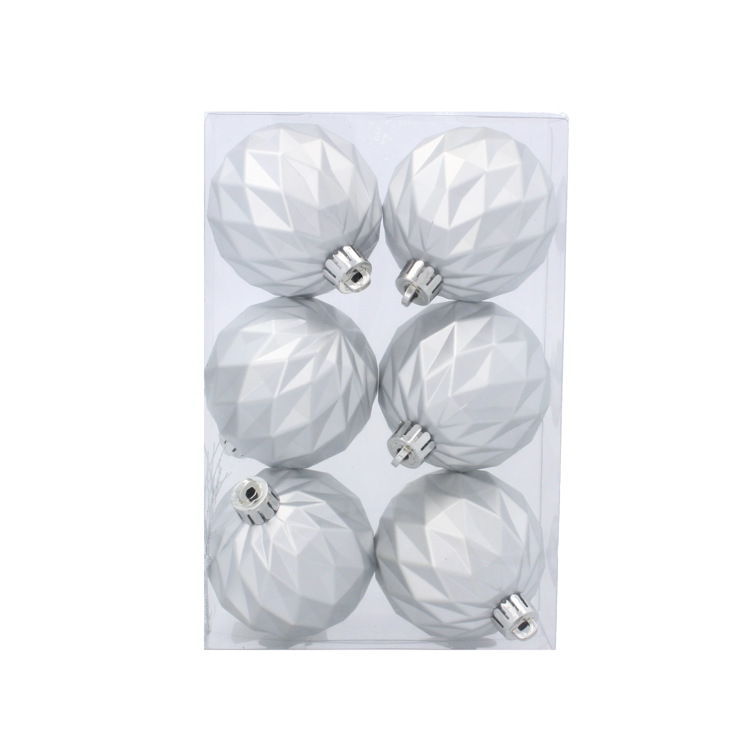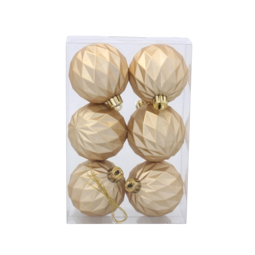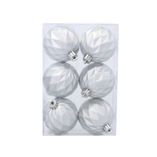 Dette sæt indeholder 6 lette og holdbare kugler med et diamantformet geometrisk mønster, som skaber blide reflekser selv i mat udførelse. Takket være det splintfrie materiale er de ideelle til hjem med børn og kæledyr og er perfekte til at dekorere juletræ, kranse og guirlander.