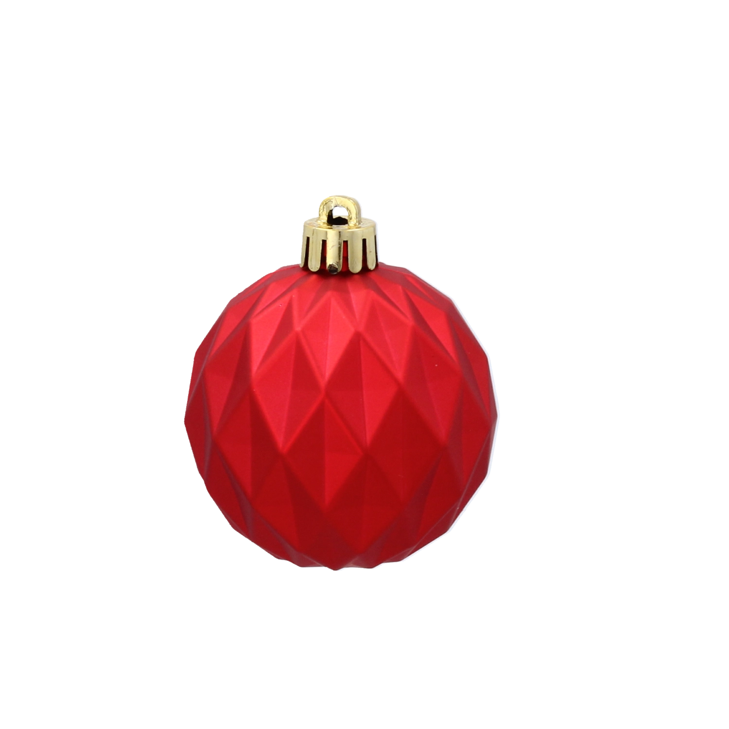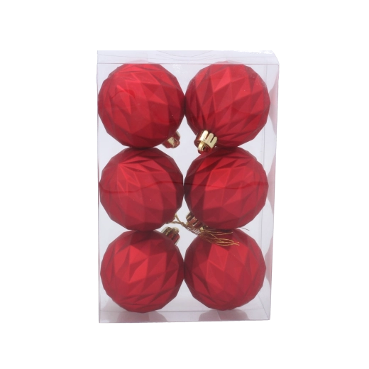 Giv dit juletræ et moderne twist med et sæt på seks julekugler med en diameter på 6 cm. Let, splintfrit plast og mat geometrisk design sikrer et elegant udseende, nem ophængning og lang holdbarhed. Den stilfulde kombination af rød, guld og sølv passer perfekt til de fleste juledekorationer.