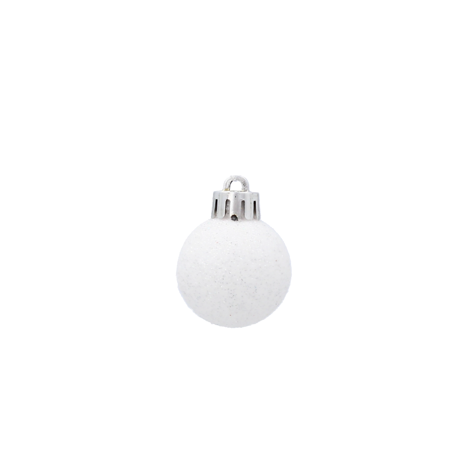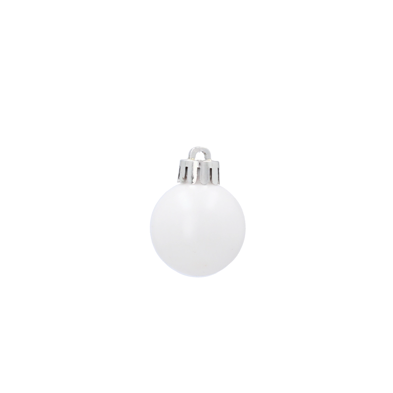 Dette alsidige sæt hvide kugler i den kompakte størrelse 3 cm er perfekt til at pynte både mindre og større juletræer, kranse og dekorationer. Den ensartede hvide farve og de fire forskellige overflader kombineres flot med både traditionelle og moderne accessories og fremhæver den festlige stemning i dit hjem.