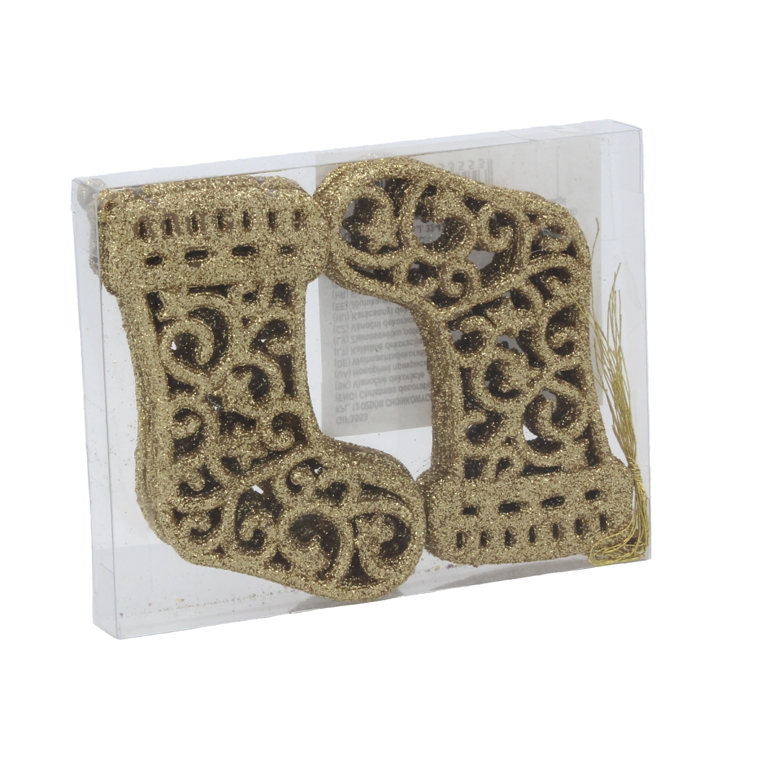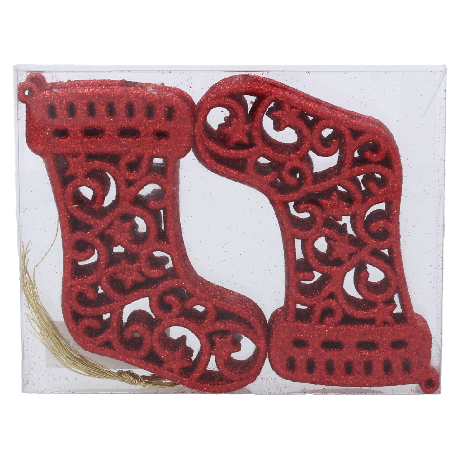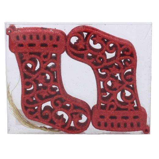 Sættet med strømpeformede pynt bringer julens magi i et tidløst design. Pynten er let, uknuselig og får med sin glitrende overflade straks dit juletræ, din krans og øvrige julearrangementer til at stråle. Praktiske snore gør det hurtigt og sikkert at hænge dem præcis dér, hvor du vil skabe størst effekt.