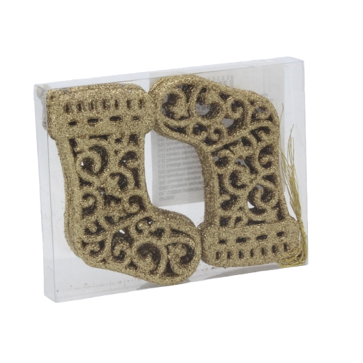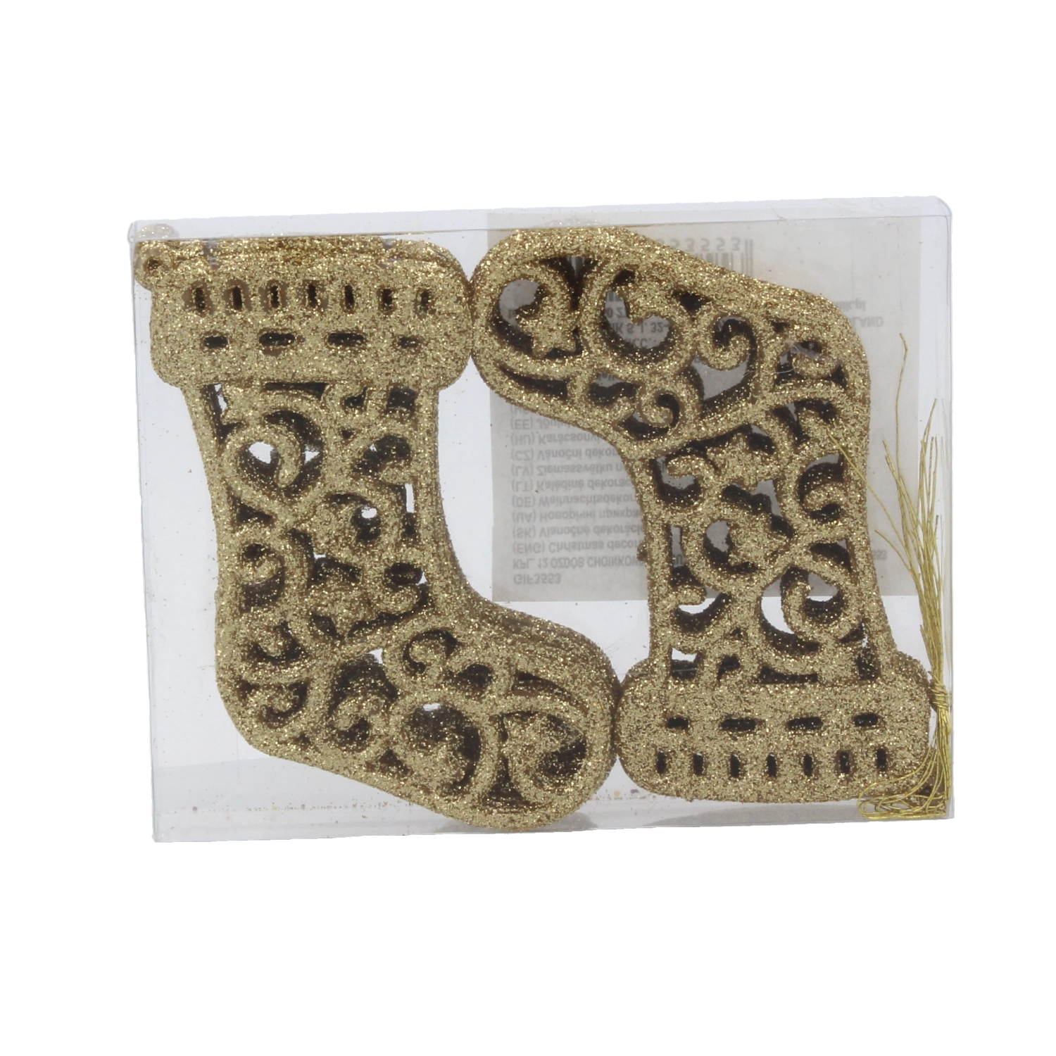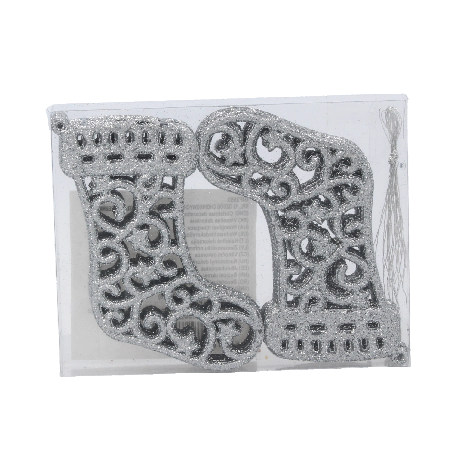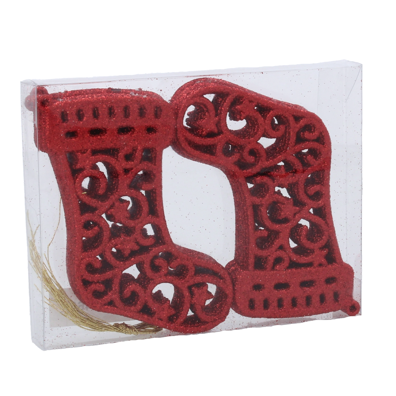 Sættet med strømpeformede pynt bringer julens magi i et tidløst design. Pynten er let, uknuselig og får med sin glitrende overflade straks dit juletræ, din krans og øvrige julearrangementer til at stråle. Praktiske snore gør det hurtigt og sikkert at hænge dem præcis dér, hvor du vil skabe størst effekt.