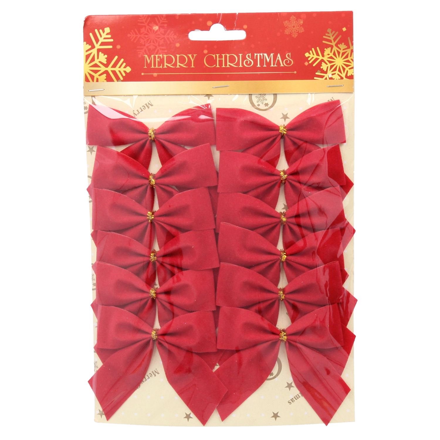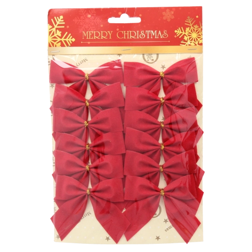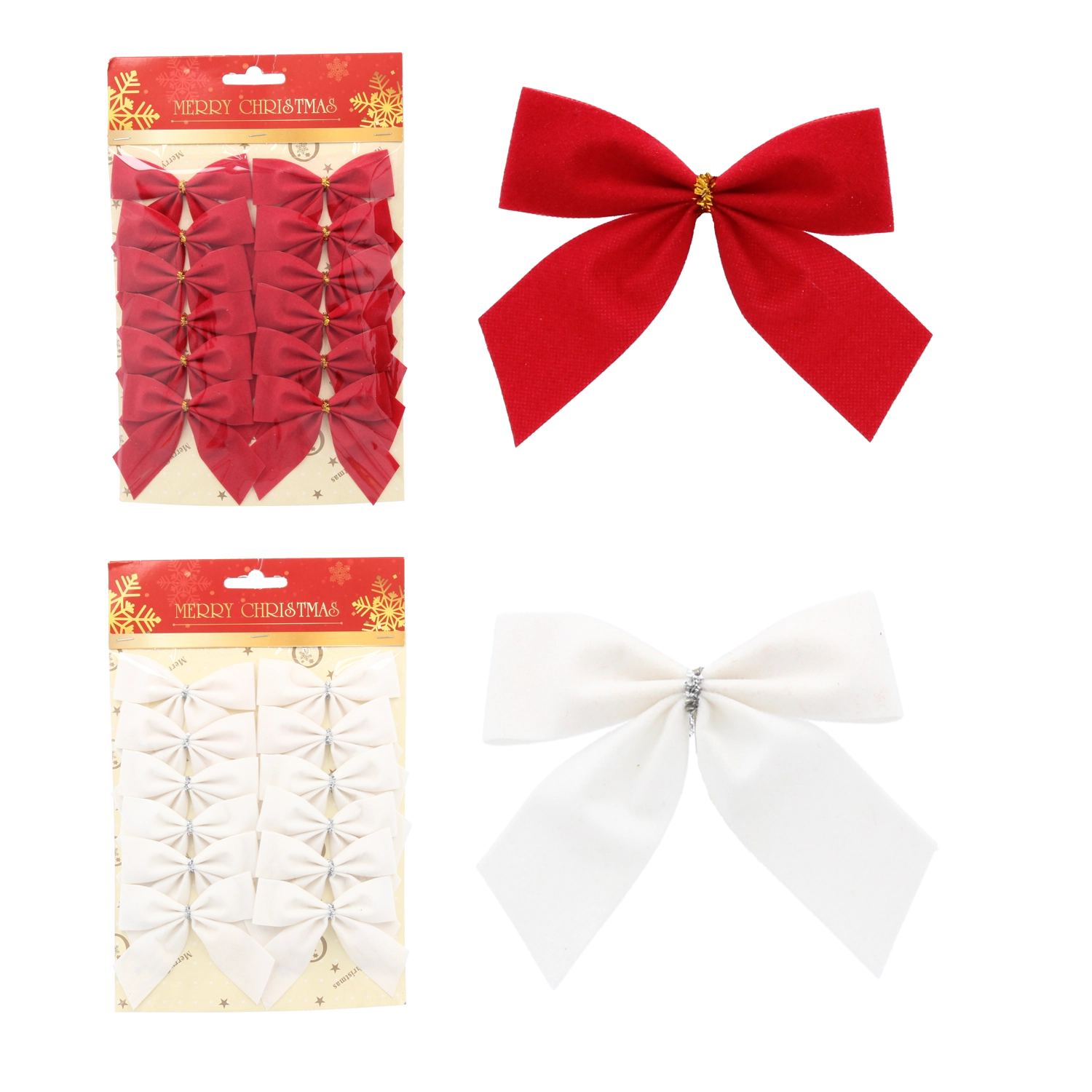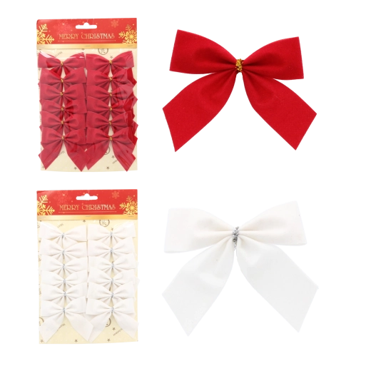 Elegant sæt med 12 julesløjfer i rød og hvid, der giver din dekoration en festlig atmosfære. Kvalitetstekstil med fin fløjlsstruktur virker luksuriøst, og den praktiske tråd sikrer hurtig og sikker fastgørelse på træ, kranse og gaver.