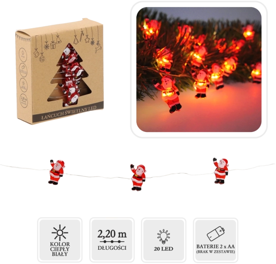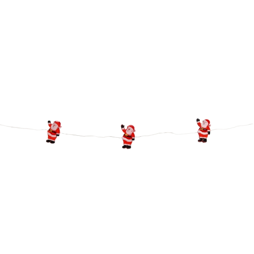 Julelyskæden med JULEMANDEN er en legende dekoration, der straks bringer en behagelig, varm atmosfære ind i hjemmet. Hver LED er dækket af et sødt motiv af julemanden, som tager sig flot ud på juletræets grene, på kaminhylden og på børneværelset.