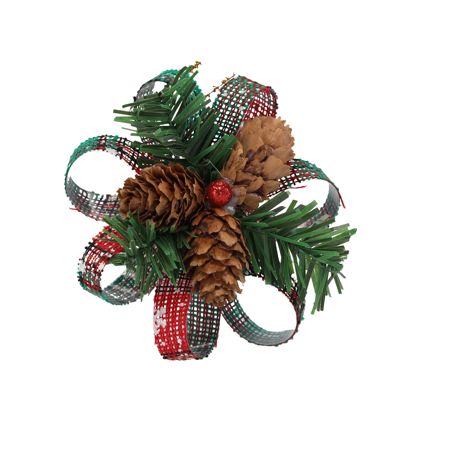 Realistisk kunstigt nåletræ og naturlige kogler giver udsmykningen et autentisk, rustikt udtryk og understøtter ubesværet vinterstemningen.