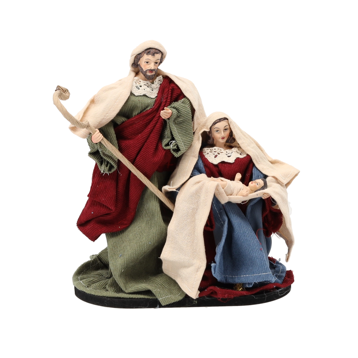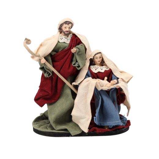 Figuren af Den Hellige Familie er en tidløs juledekoration, der straks skaber en højtidelig atmosfære i hjemmet, i kirken eller på skolen. Den detaljerede udformning af ansigter og klædedraperier virker realistisk og giver scenen elegance og dybde.