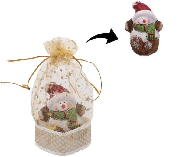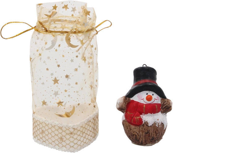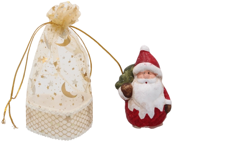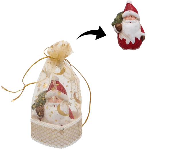 Figuren er lavet af holdbar keramik og leveres i en dekorativ pose, så den er klar til at blive givet som gave. Perfekt som en lille opmærksomhed til familie, kolleger og venner eller som en del af en gennemført juleudsmykning.