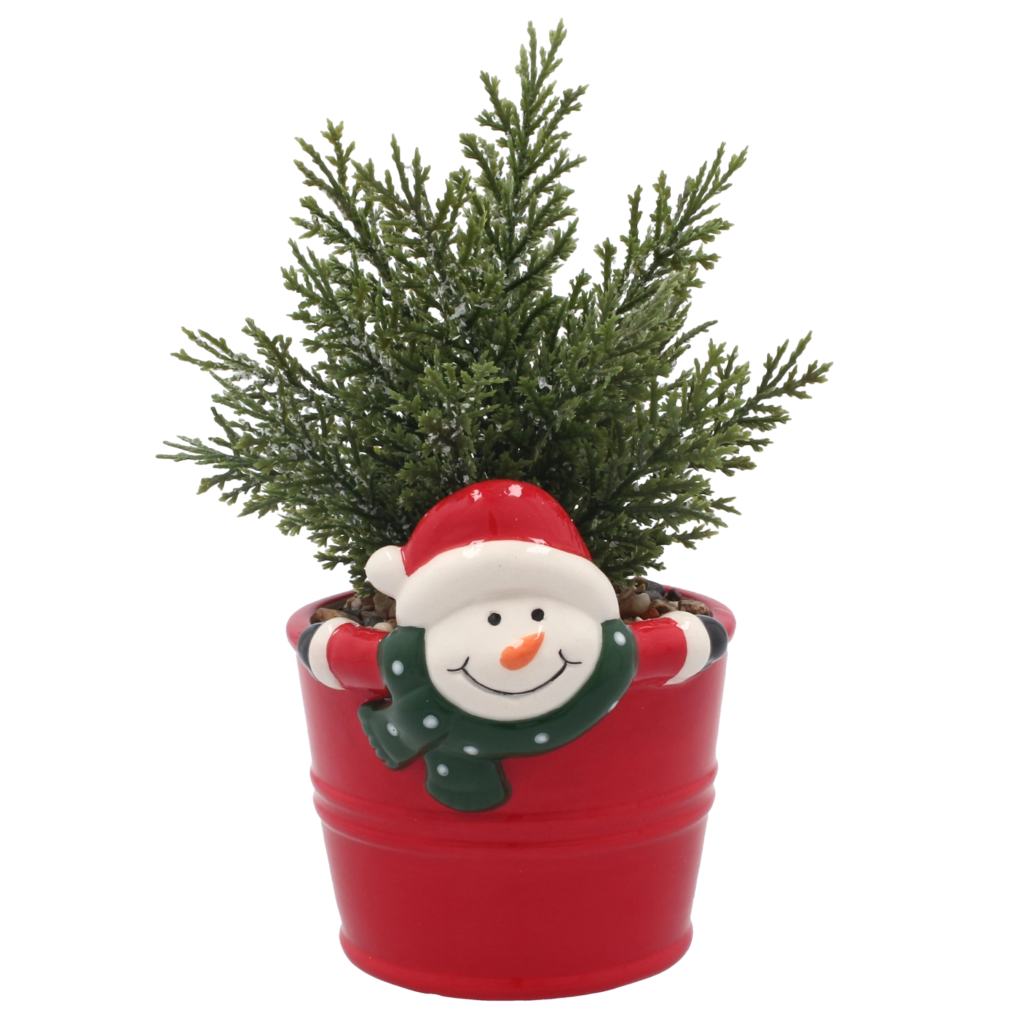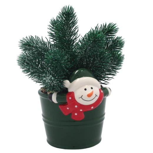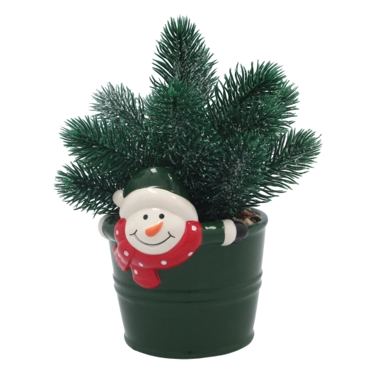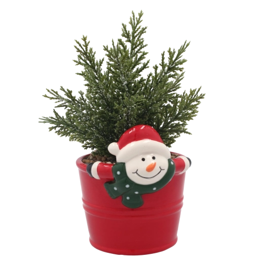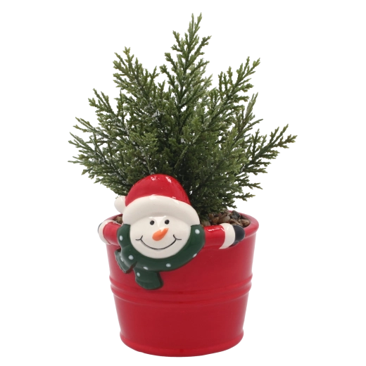 Den dekorative keramiske urtepotte med et muntert snemandsmotiv giver ethvert rum et legende præg og sikrer stabil placering.