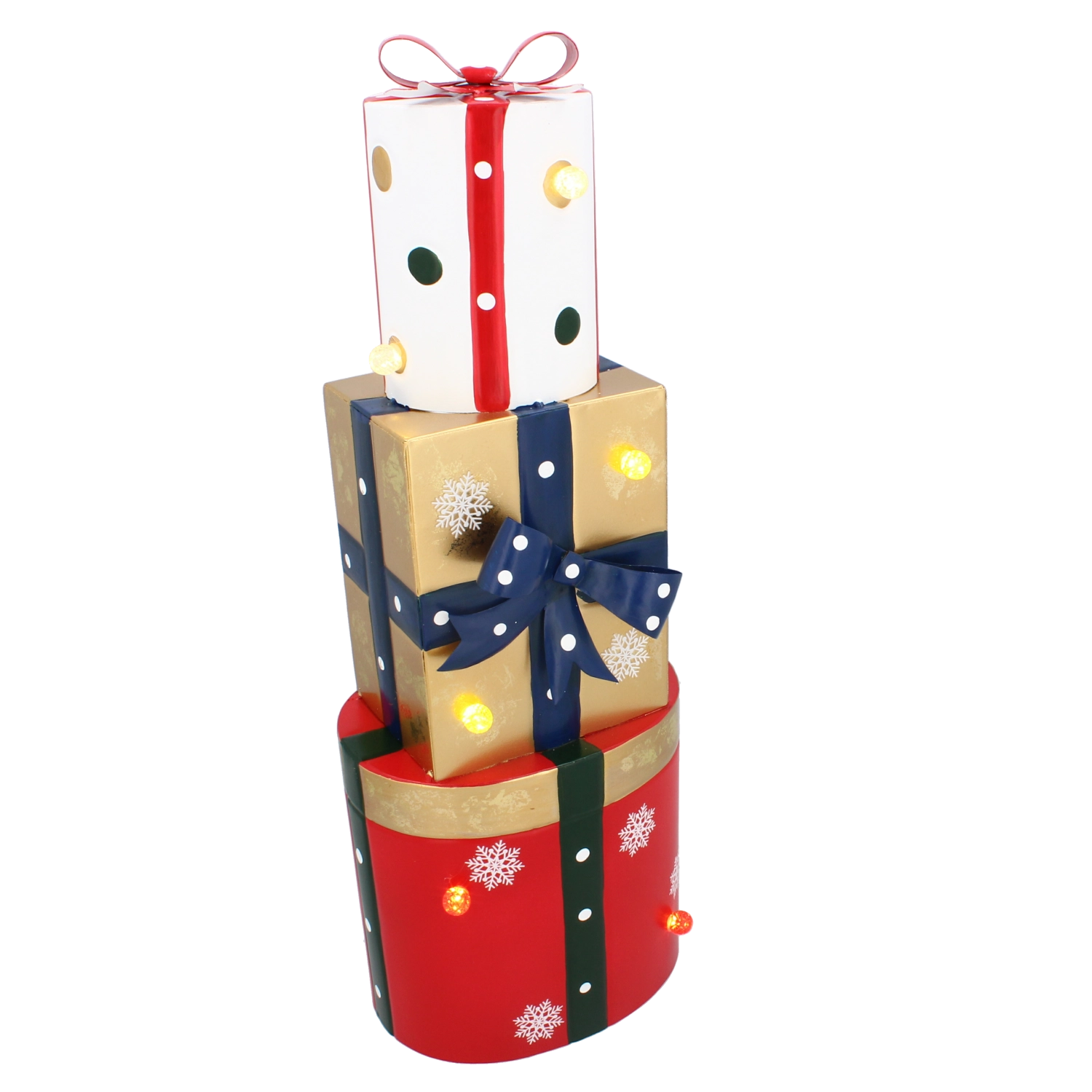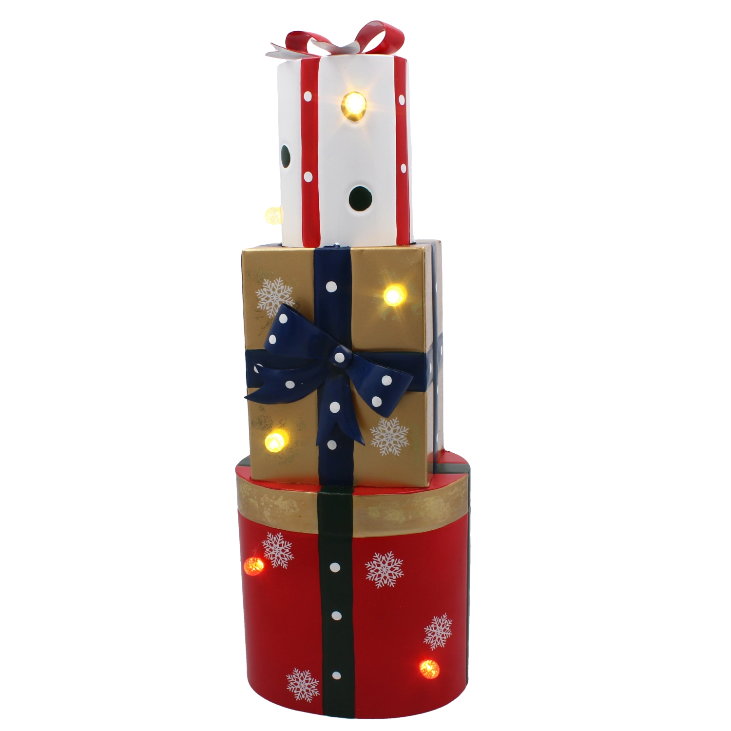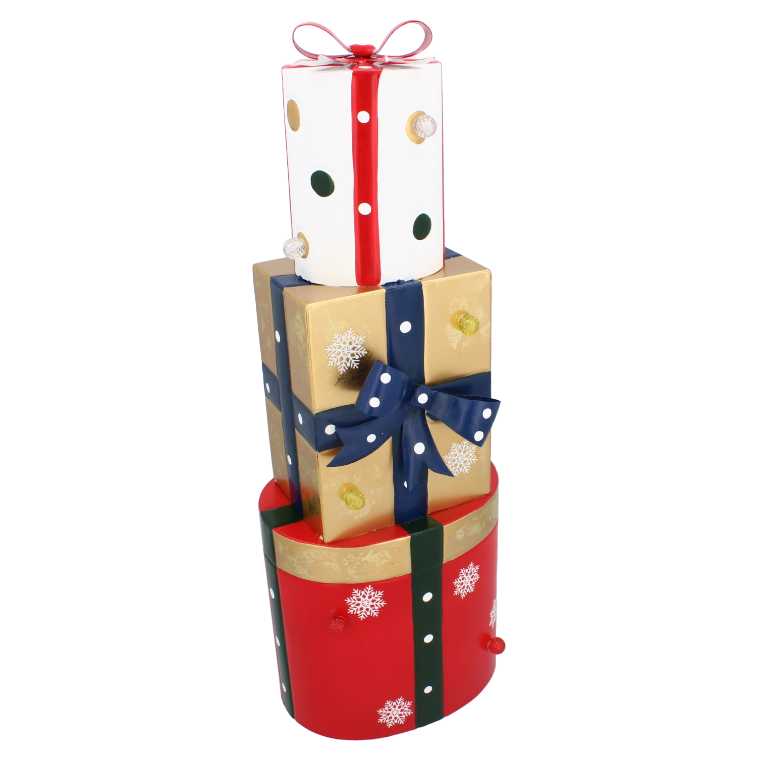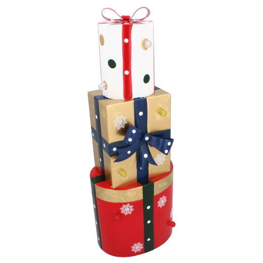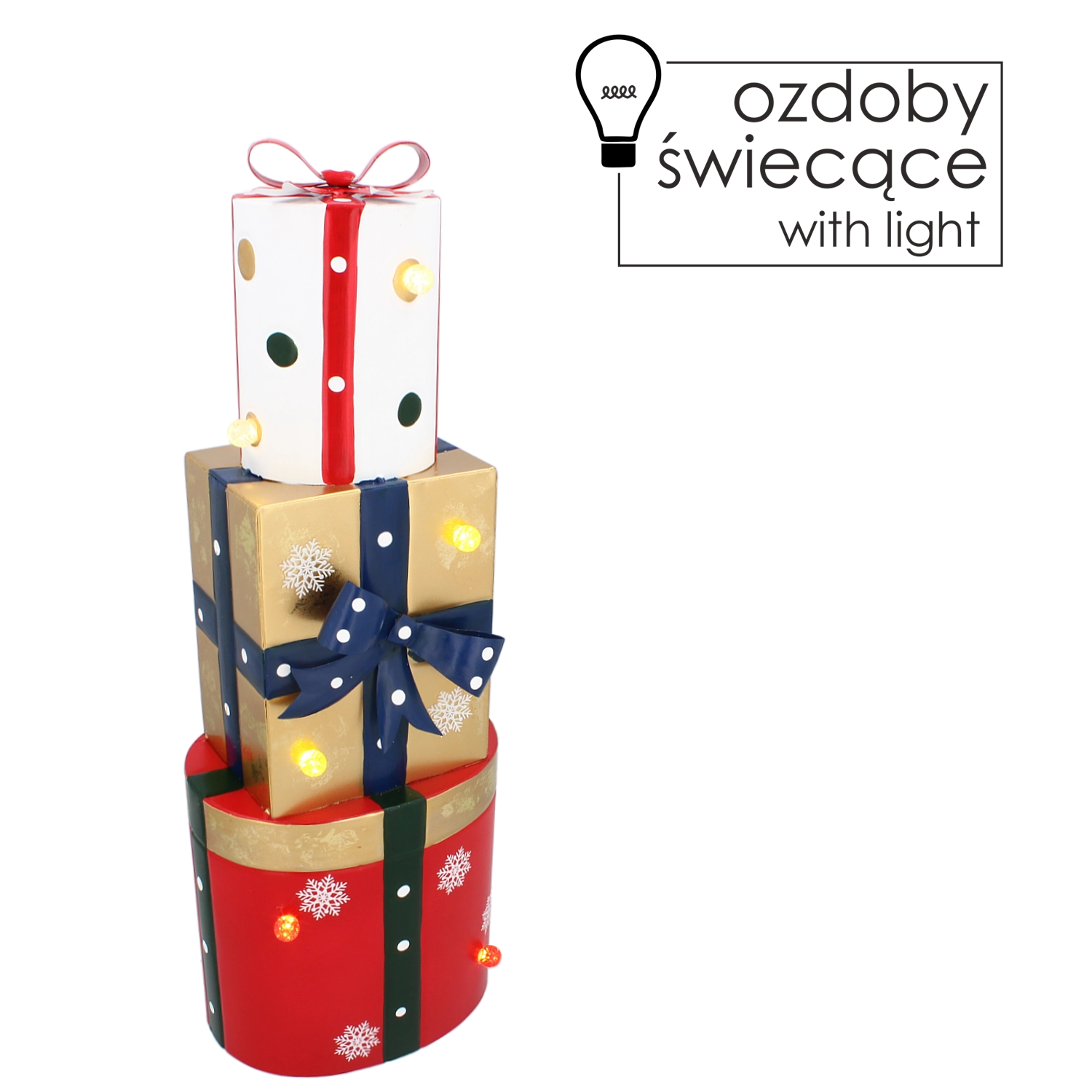 Denne stilfulde metaldekoration i form af tre stablede gaver i rød, guld og hvid er udstyret med varme hvide LED-dioder, som skaber et behageligt, blødt lys. Kombinationen af kvalitetsmetal og diskret bagbelysning virker moderne og samtidig hyggelig – ideel til hjemmets juleudsmykning.