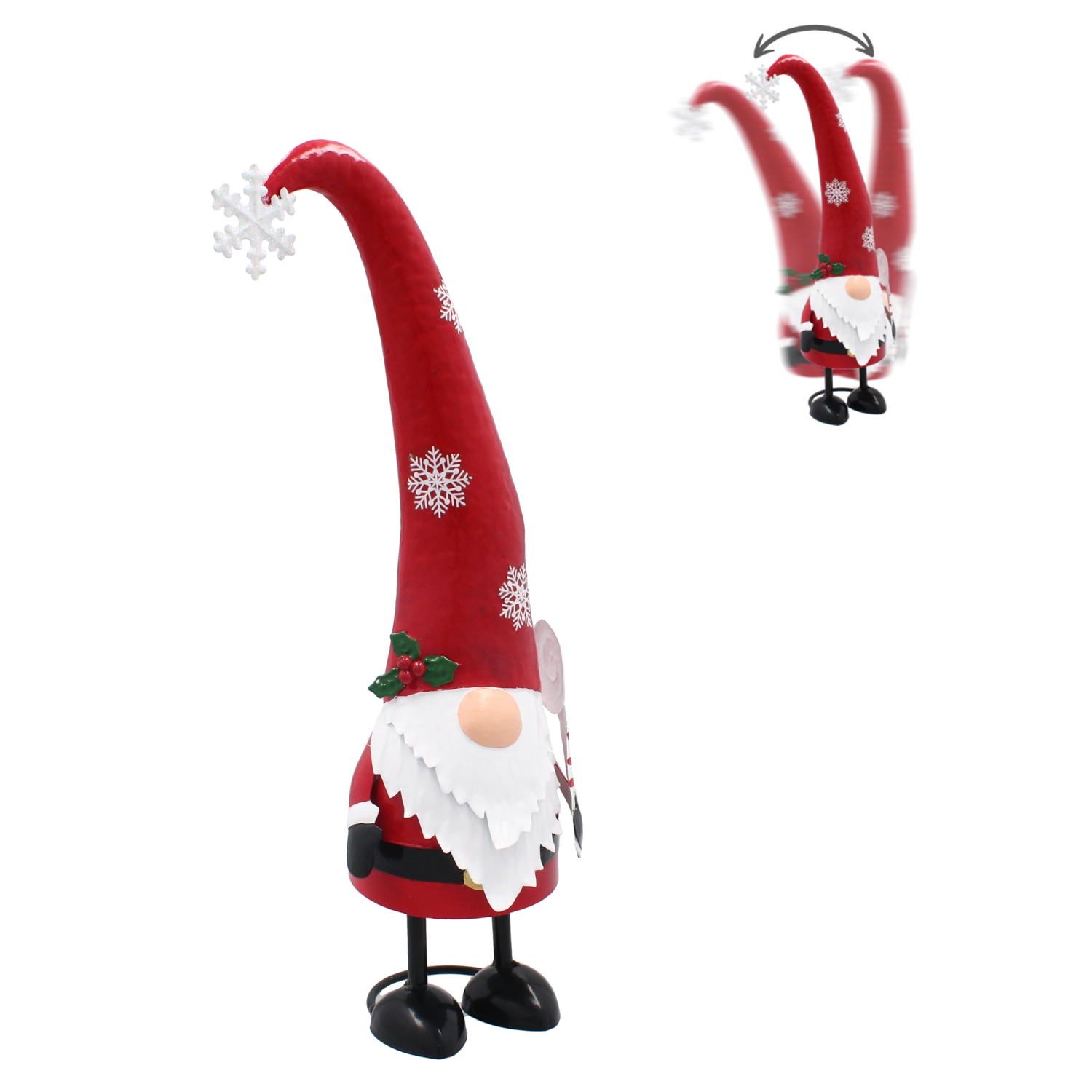 En elegant metallisk julesmånd med lang hue, der lyser dit hjem op og bringer julens magi ind. Takket være kvalitetsforarbejdning, stabil metalkonstruktion og en stilfuld kombination af rød og sølv bliver den en iøjnefaldende højtidsdekoration på hylden, vindueskarmen eller bordet.