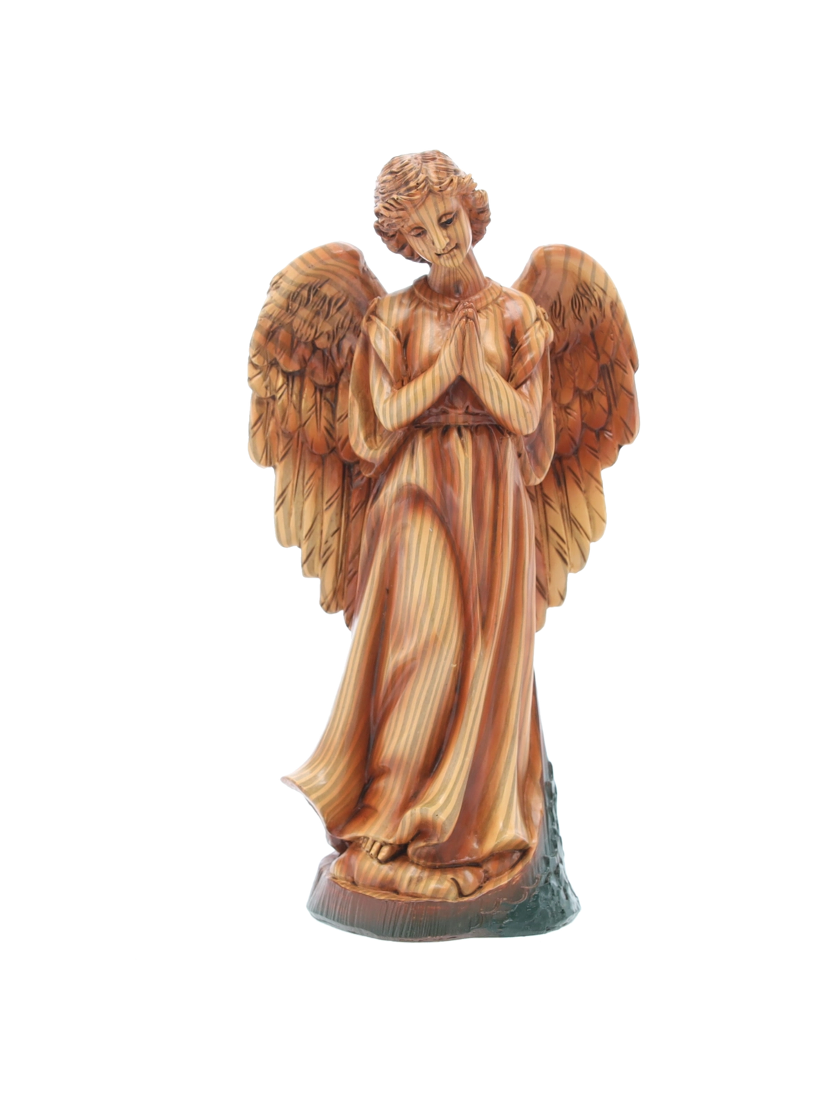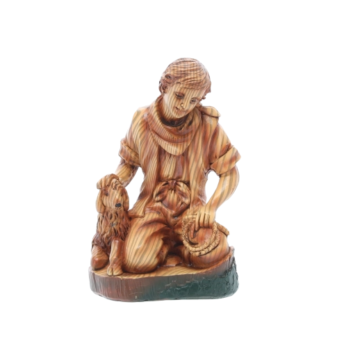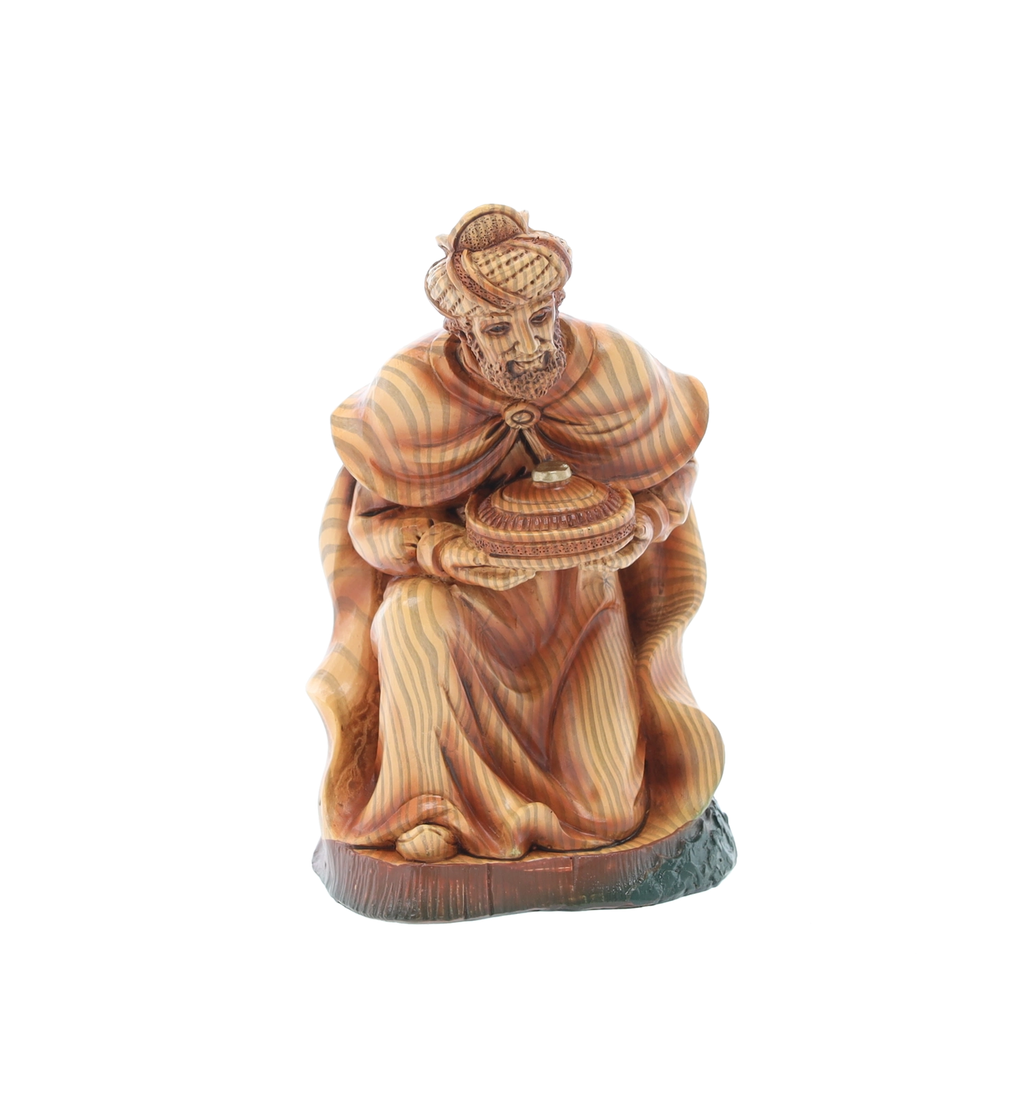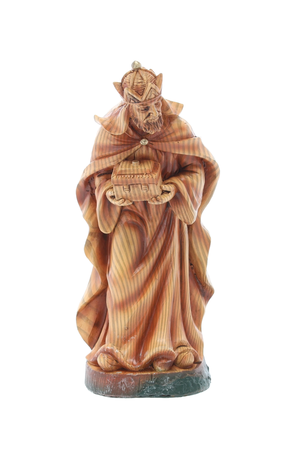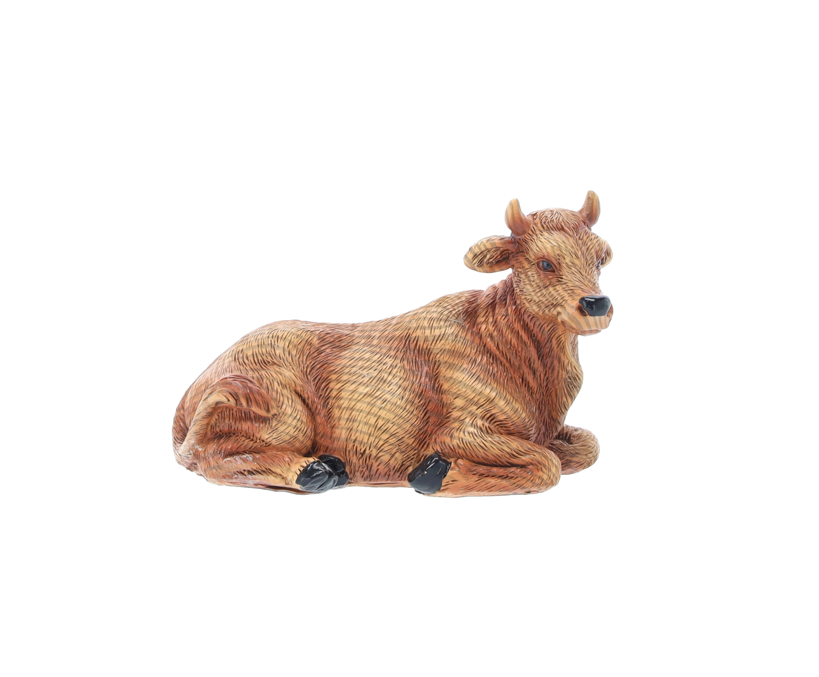 Hver figur er omhyggeligt håndmalet med fine overgange og teksturer, som fremhæver ansigtstræk, draperingers folder og dyrenes naturlige udseende.