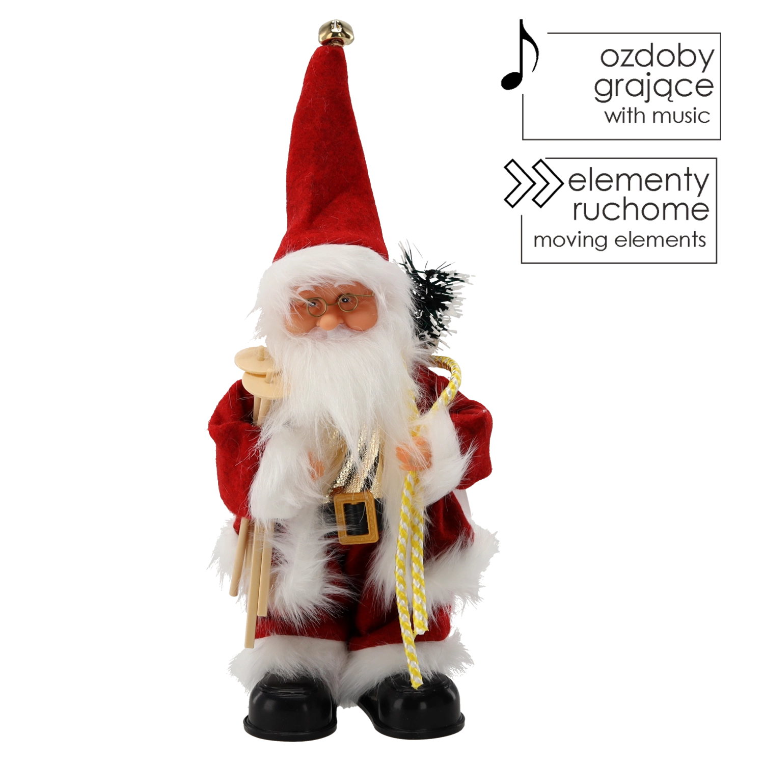 Bring vintermagi og julestemning ind i hjemmet. Denne søde julemand med ski er en dekorativ figur, der afspiller julesange, har bevægelige elementer og skaber øjeblikkeligt festlig atmosfære takket være kvalitetsudførelse og den traditionelle røde dragt med pelskant.