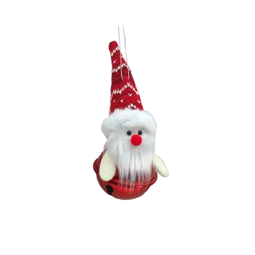 Denne julepynt kombinerer højtidens traditionelle charme med robust kvalitet. Kroppen har form som en skinnende rød klokke, suppleret af tekstildetaljer – hat eller hue, halstørklæde og for julemanden et fyldigt skæg – som giver dekorationen personlighed. Hvert stykke er nænsomt fuldendt med håndmaling for et autentisk udtryk.