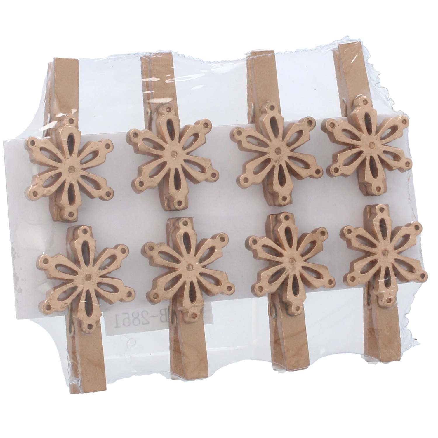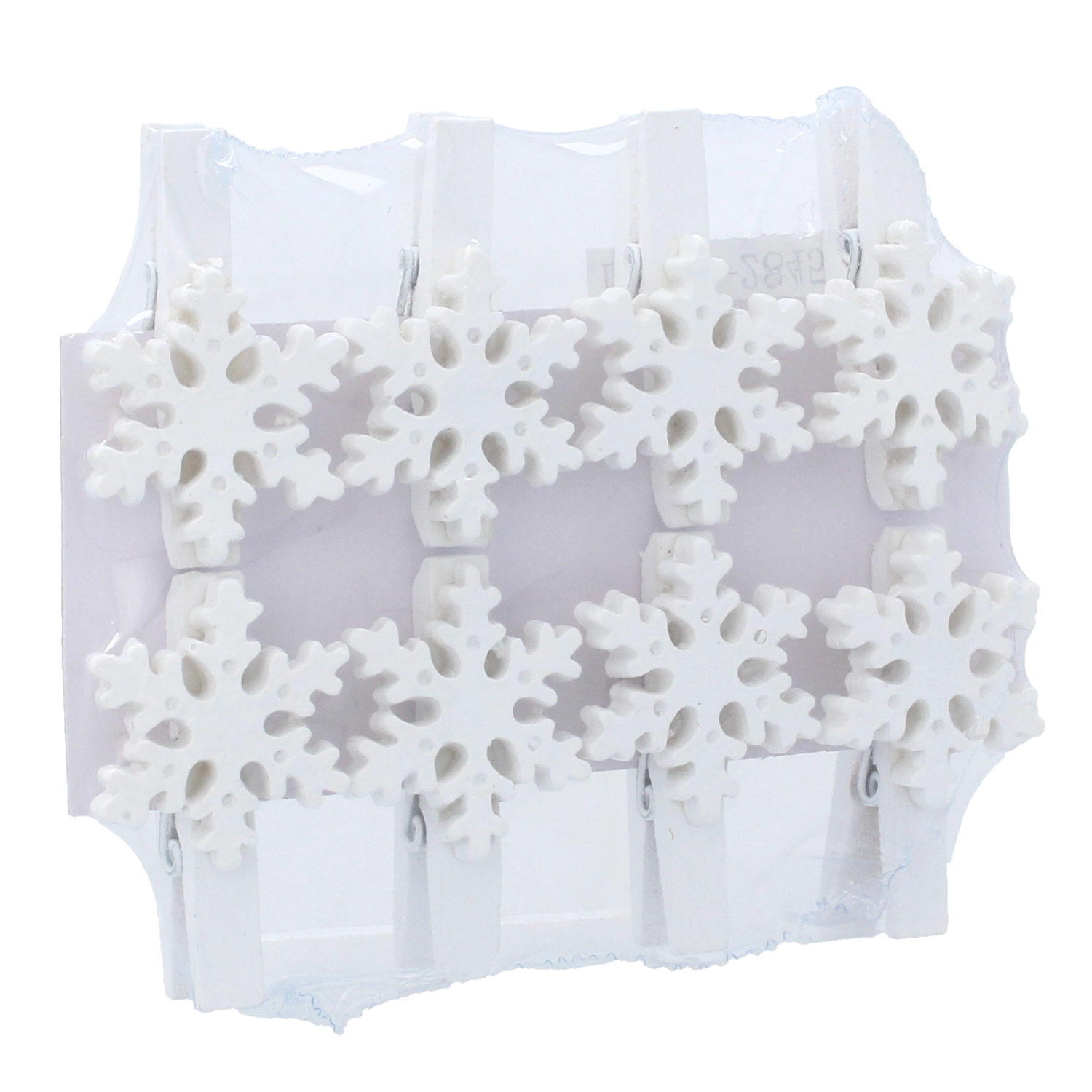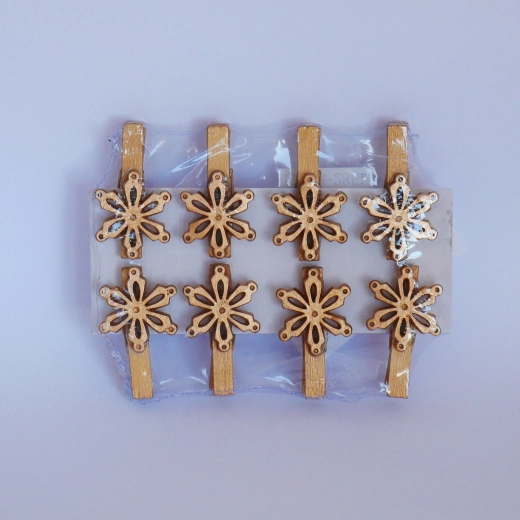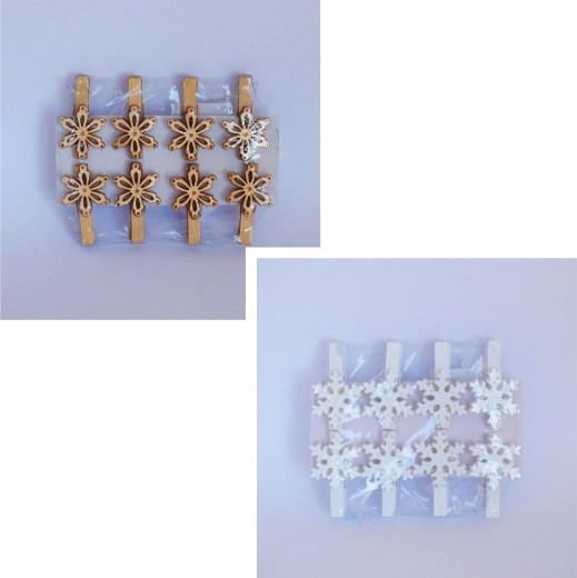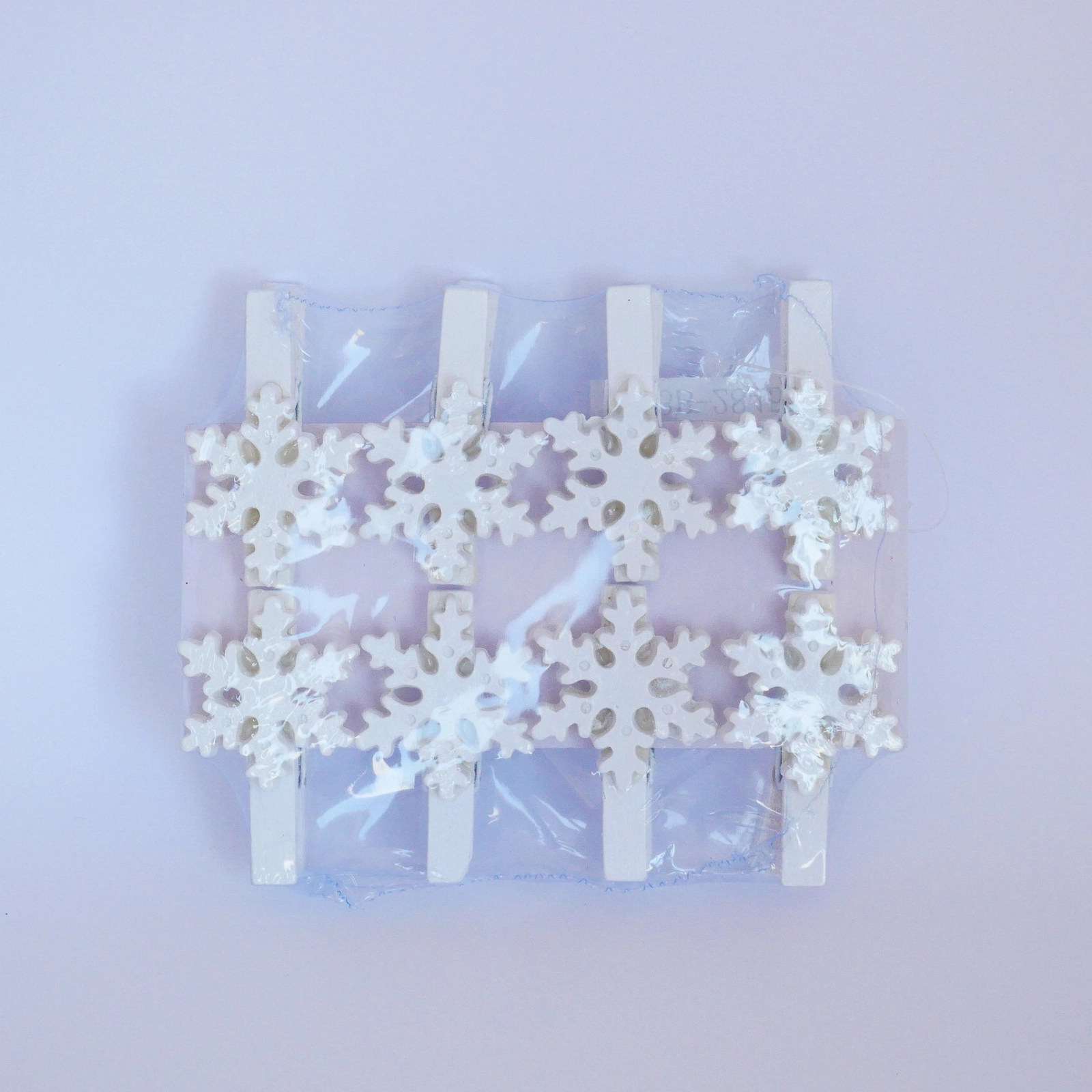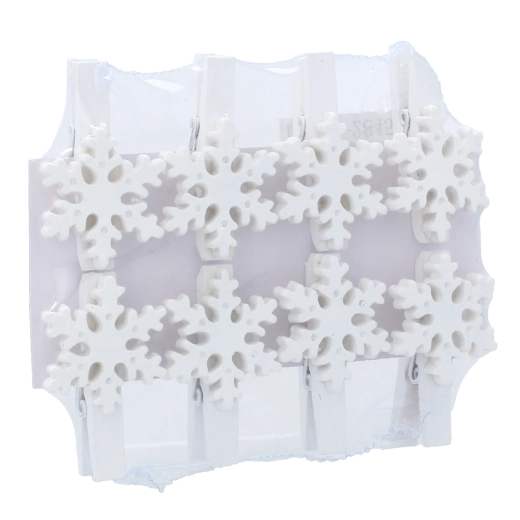 Skab en festlig stemning i hjemmet med et sæt på otte dekorative klips med snefnug i størrelsen 3 × 3 cm. Takket være den praktiske klips sætter du dem på juletræ, guirlander, pakker eller fotogardiner på ingen tid. Et mix af mønstre og farver giver pyntningen variation og vintermagi. Hurtig montering, solidt greb og alsidig anvendelse til både hjemmeudsmykning og gaveindpakning.
