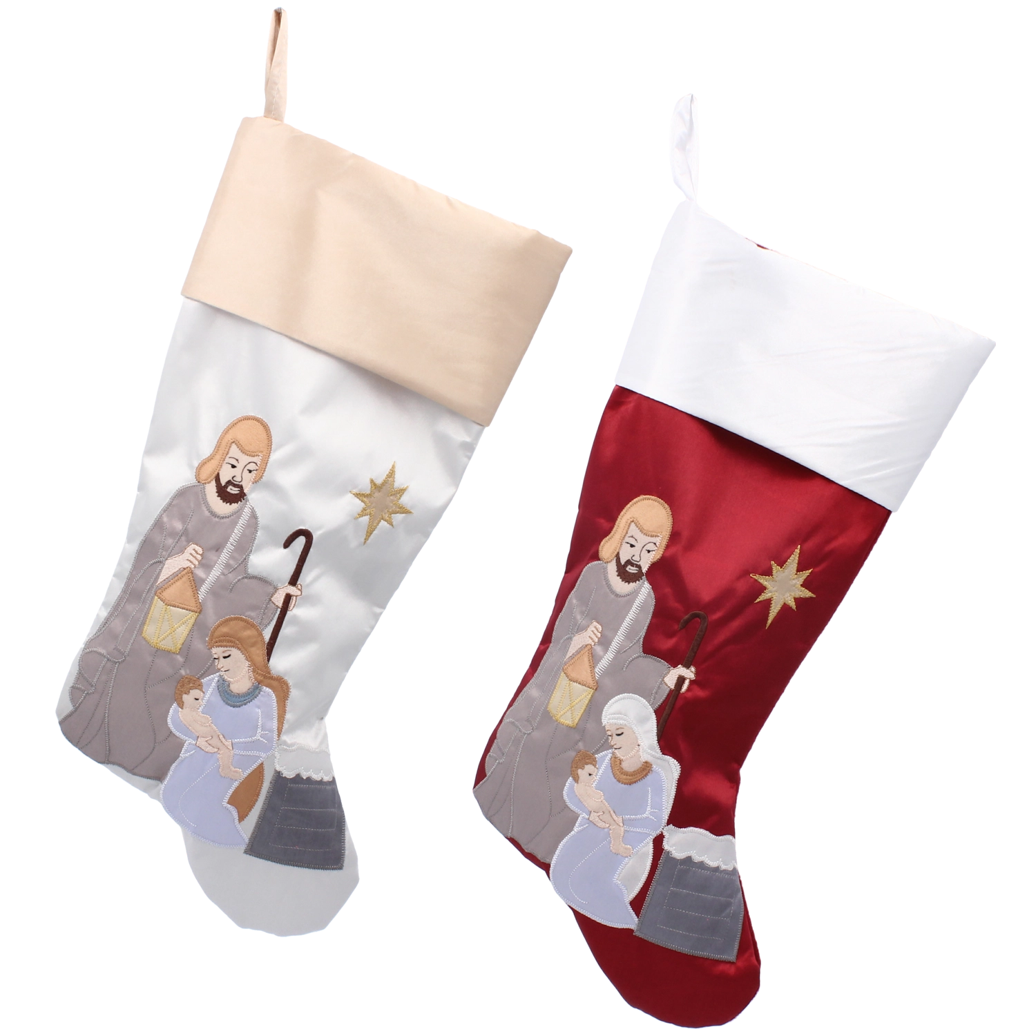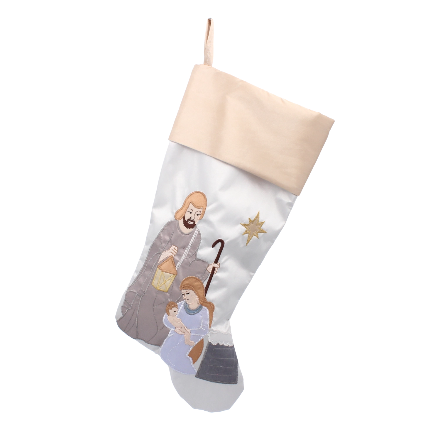 Denne julestrømpe med motiv af Den Hellige Familie er en smuk påmindelse om julens egentlige budskab. Takket være den omhyggelige udførelse og det bløde tekstilmateriale bliver den en favorit i din juleudsmykning — uanset om du hænger den over pejsen, på væggen, rækværket eller på et større juletræ.