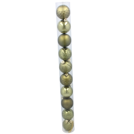 Løft din juleudsmykning med et elegant sæt på 10 pyntede kugler, der let kombineres med både traditionelle og nutidige dekorationer. Den harmoniske palet af oliven, kobber og grafit skaber en unik, tidløs effekt og tilfører interiøret varme og stil.
