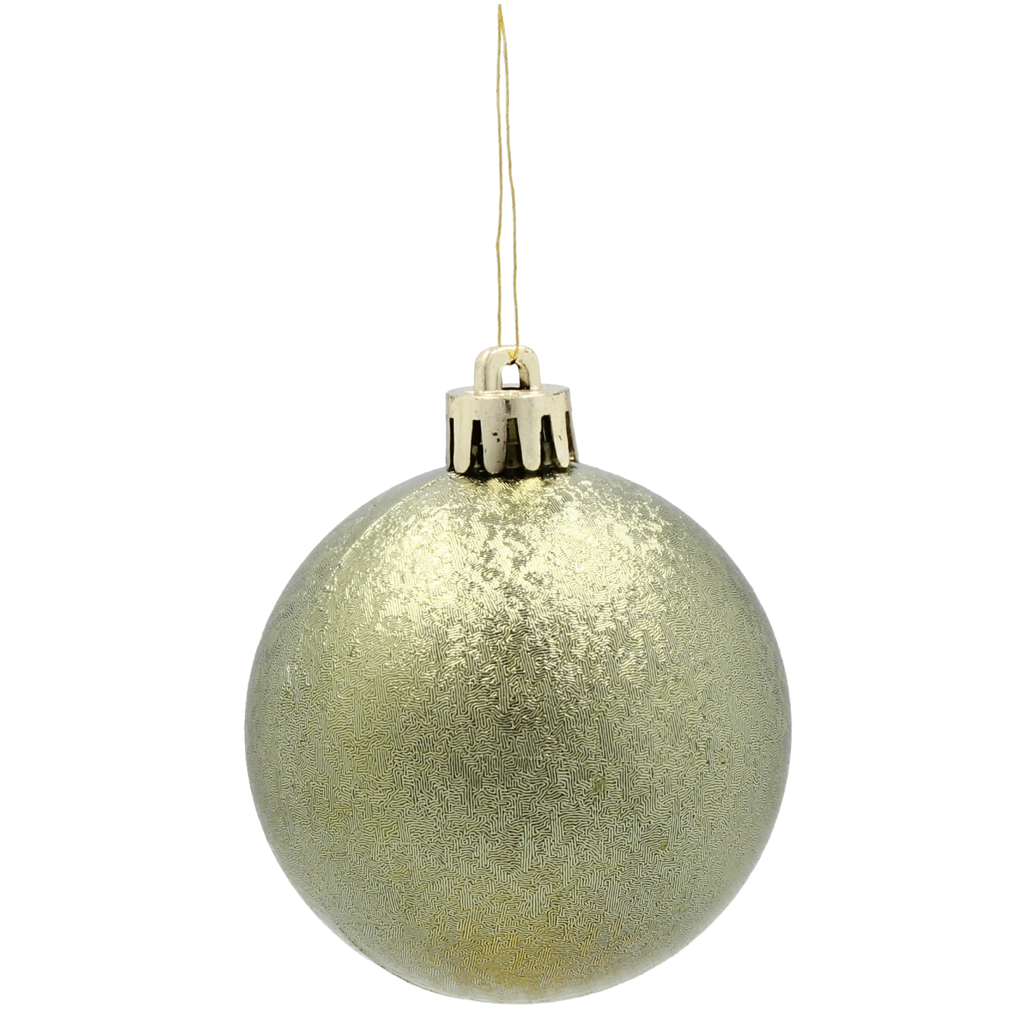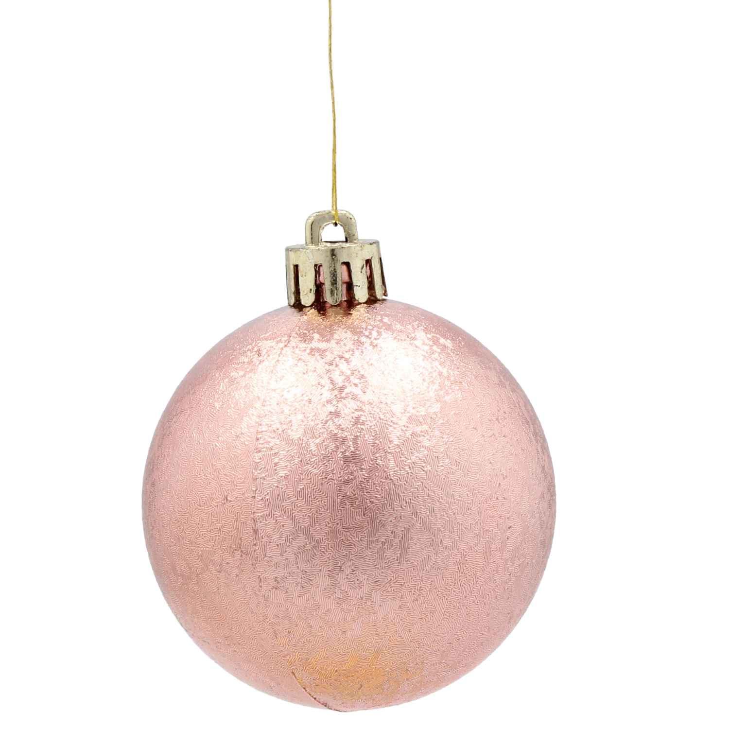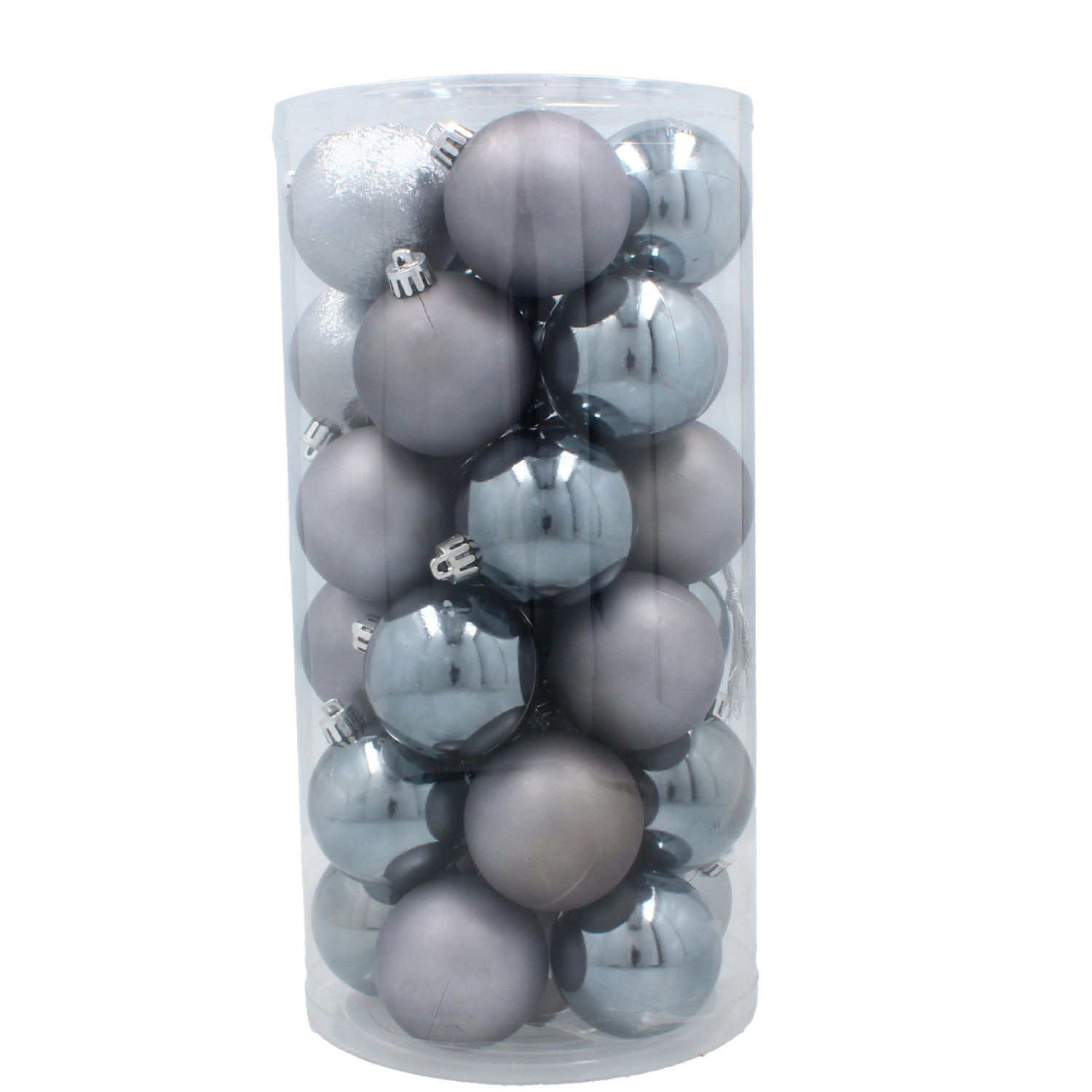 Stilfuldt sæt med 30 juleornamenter på 6 cm i diameter i elegante nuancer af oliven, kobber og grafit, som giver dit hjem en moderne, festlig atmosfære. De holdbare plastikkugler med blank, mat og glitrende overflade er lette, uknuselige og sikre for både børn og kæledyr.