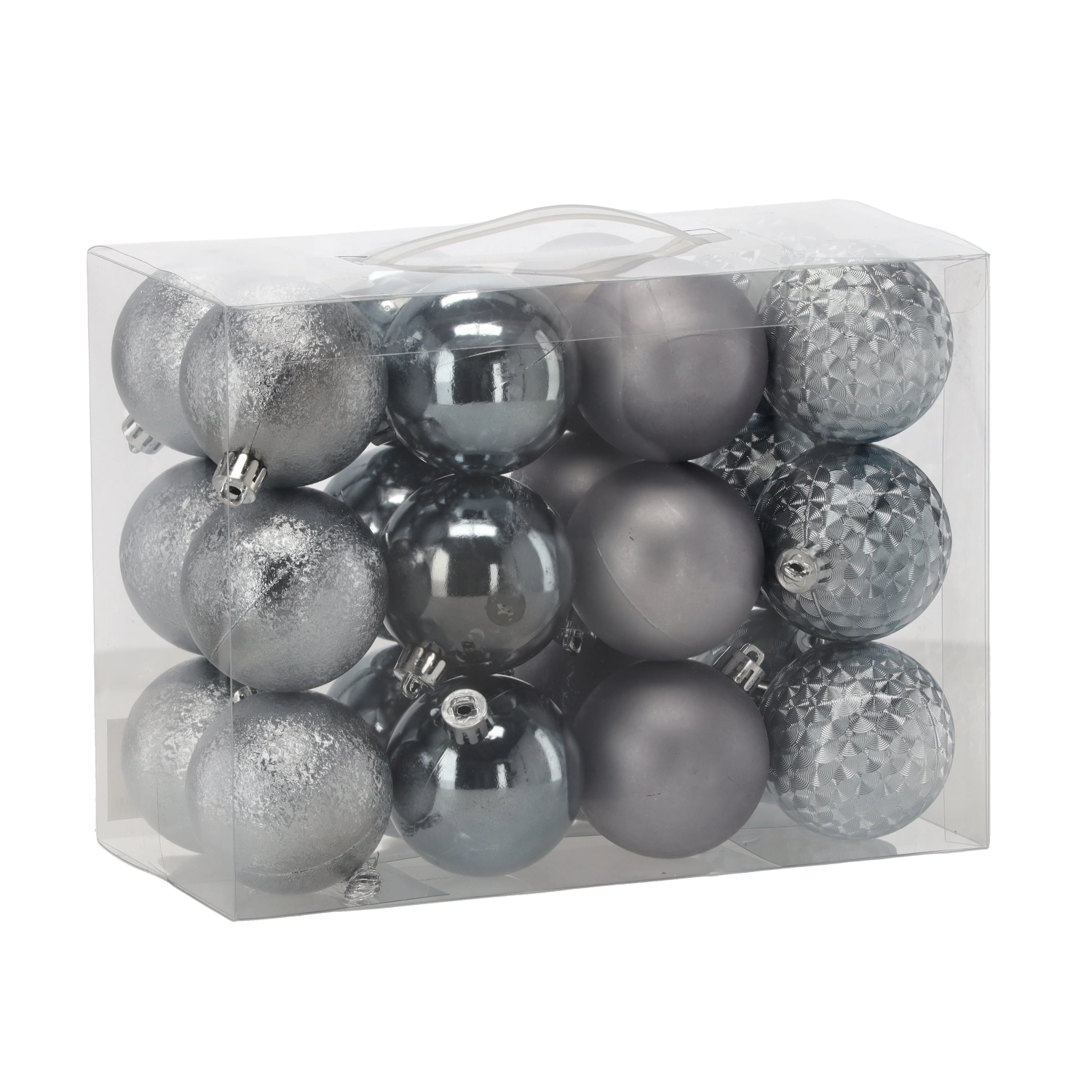 Kombinationen af glans-, matte, glitrende og facet-slebne kugler giver dybde, kontrast og attraktive reflekser på ethvert træ.