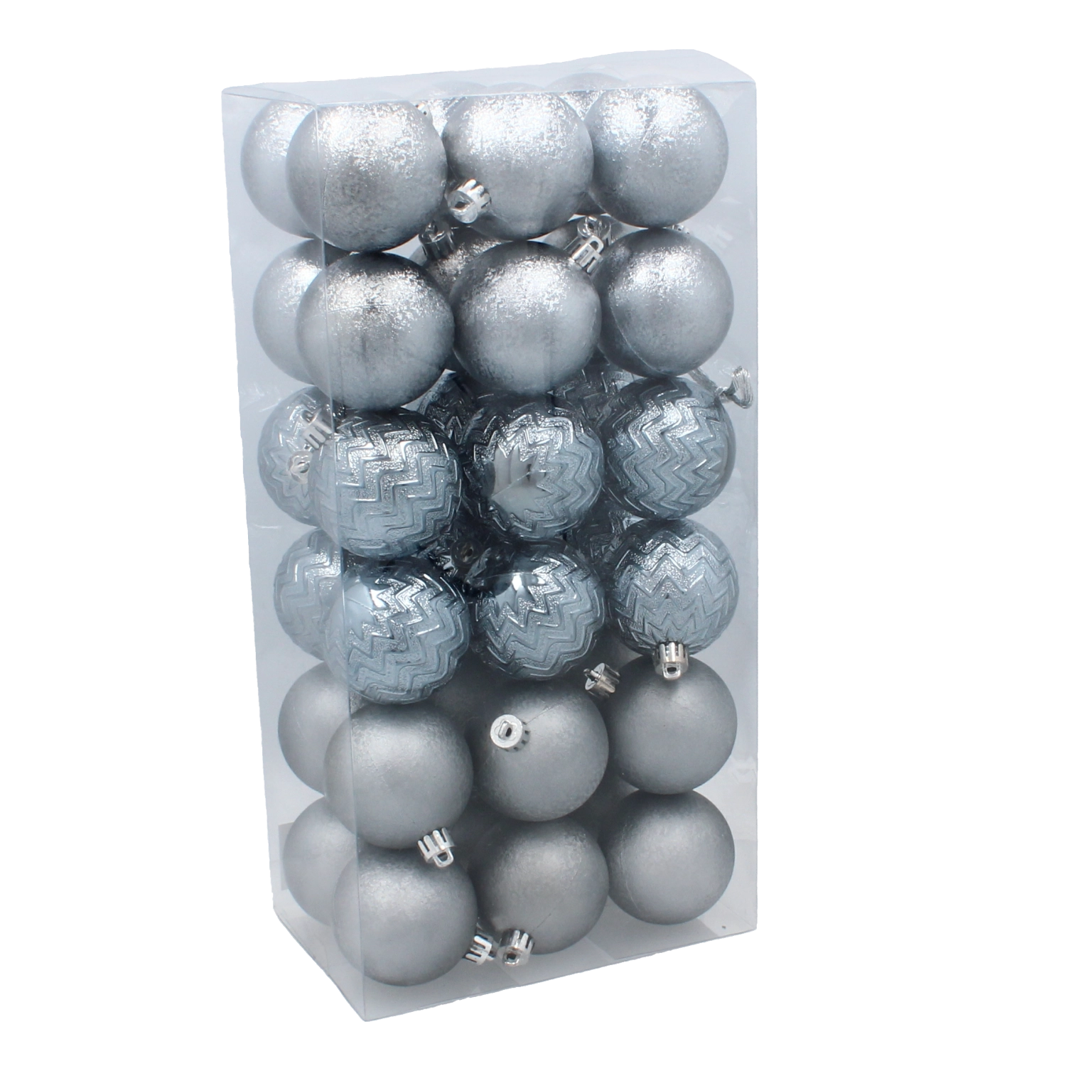Hver farve findes i forskellige designs og overflader, herunder mat og blank, hvilket giver træet dybde, glans og visuel rytme. Takket være den ensartede diameter på 6 cm fylder kuglerne grenene smukt og sikrer en velafbalanceret fordeling.
