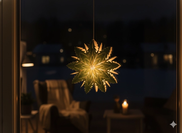Det to-lags design giver stjernen et rumligt udtryk og en markant silhuet, der står smukt i både moderne og klassiske interiører. Velegnet til hjem, caféer og erhvervsrum, hvor den understøtter sæson- og højtidspynt.