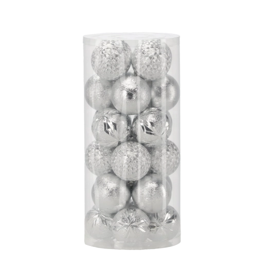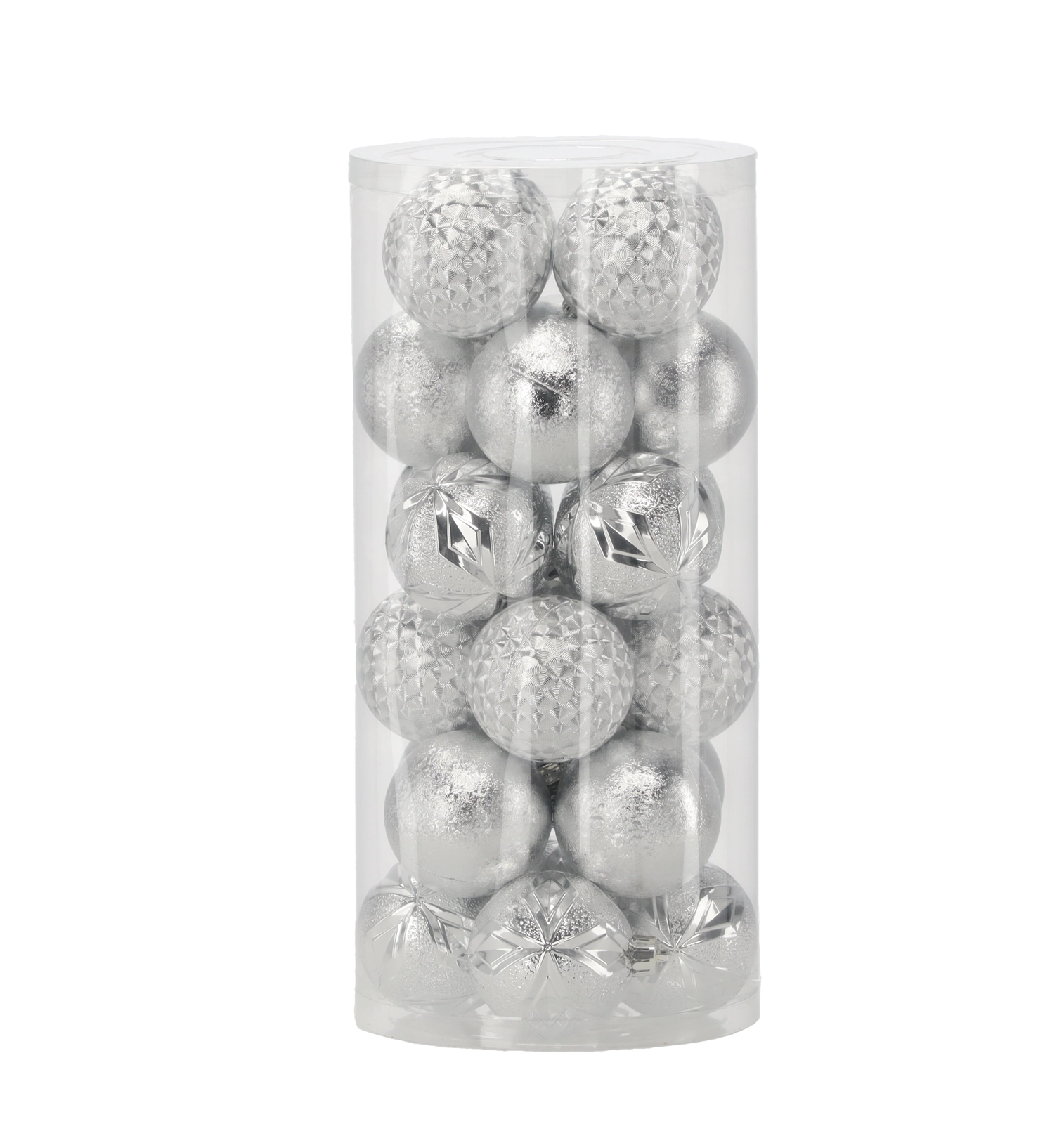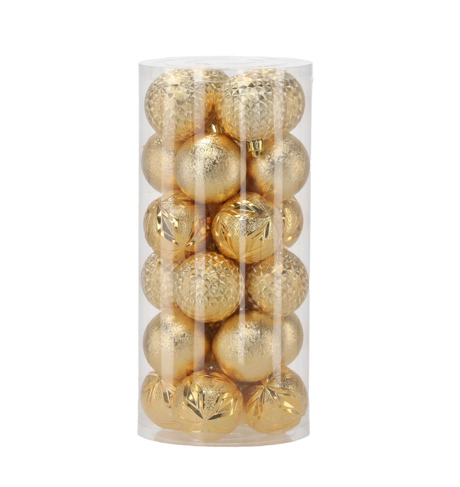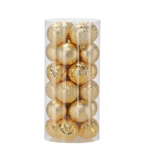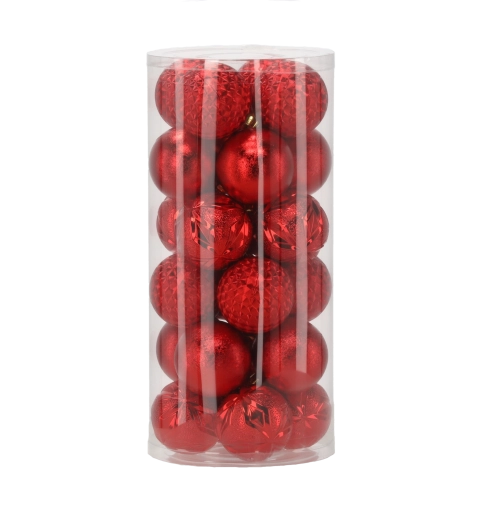 Dette elegante sæt indeholder 24 julekugler med en diameter på 6 cm i en tidløs kombination af rød, guld og sølv. Forskellige overflader som blank, struktureret og glitter giver dit træ både dybde og glans og hjælper med at skabe en harmonisk udsmykning.