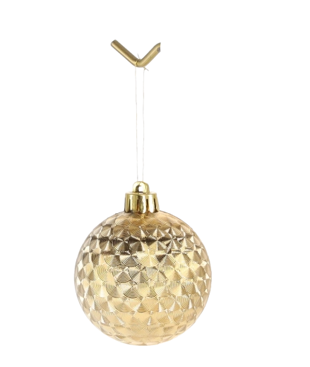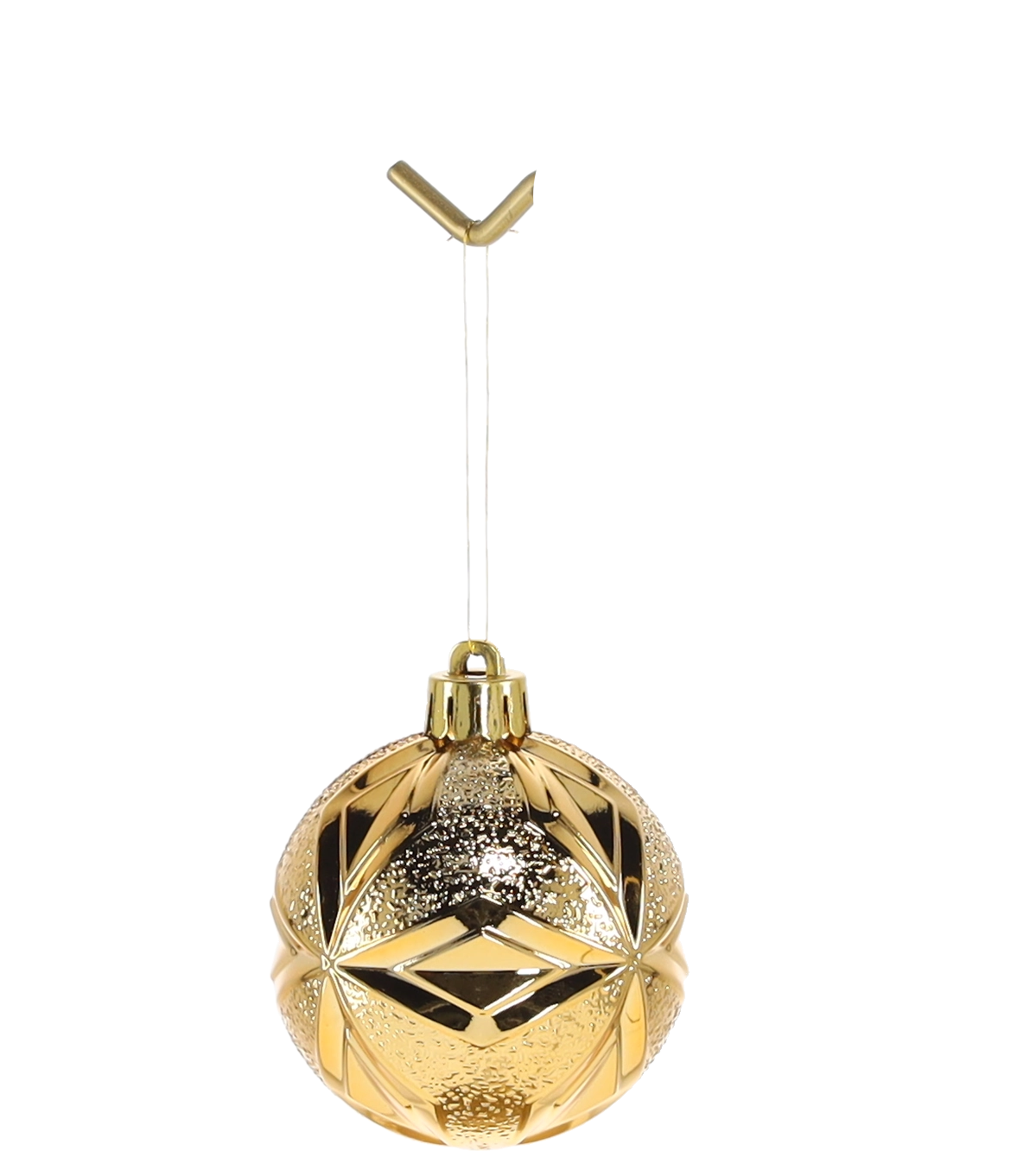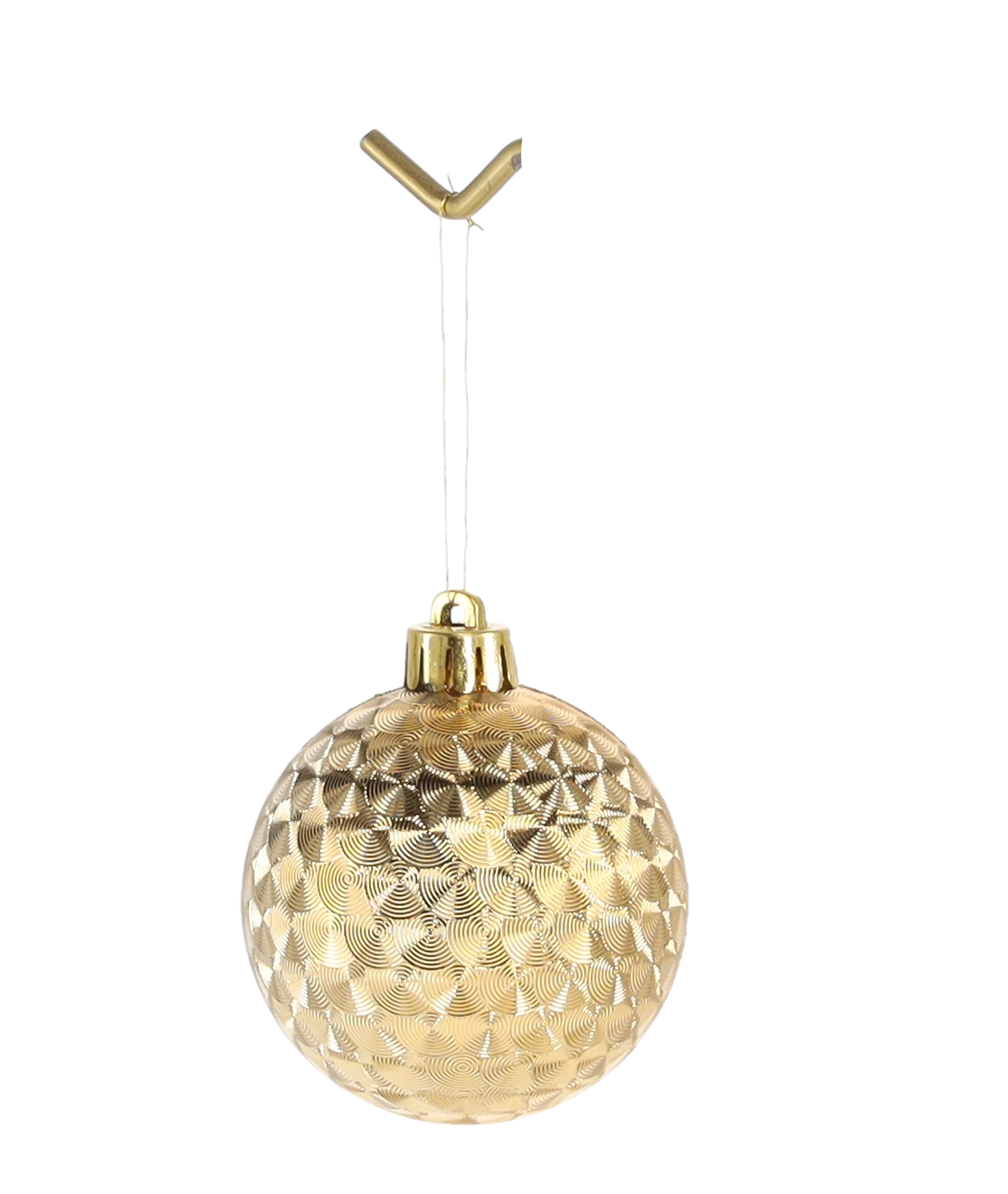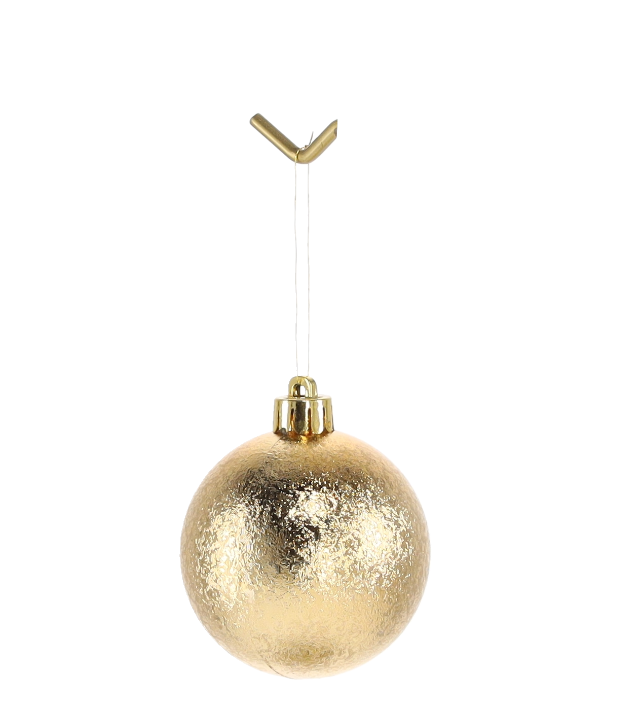 Gyldne og sølvfarvede kugler med forskellige teksturer skaber en funklende effekt og giver pynten et elegant præg.