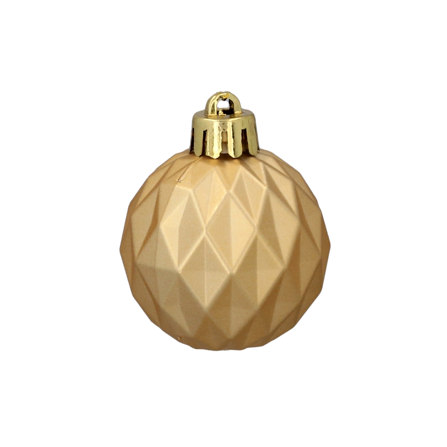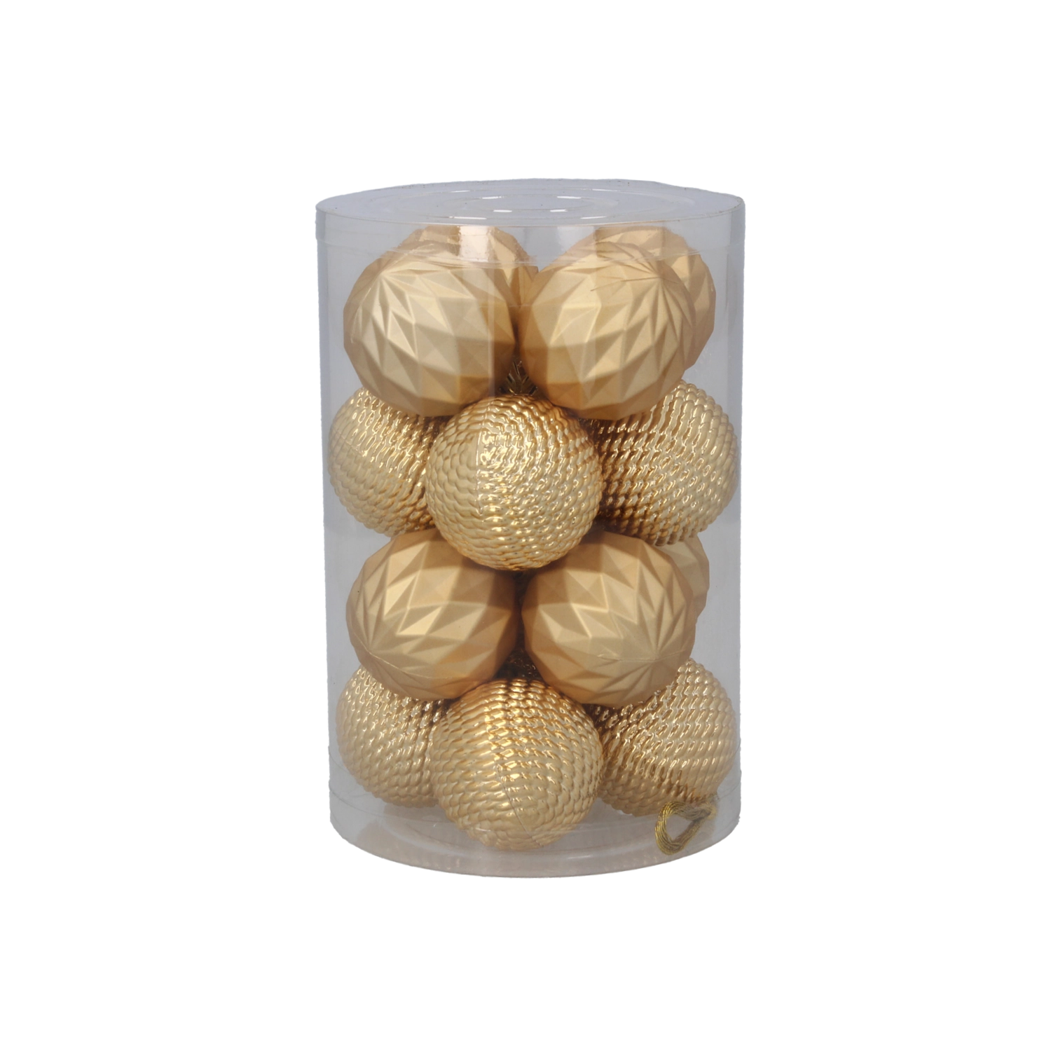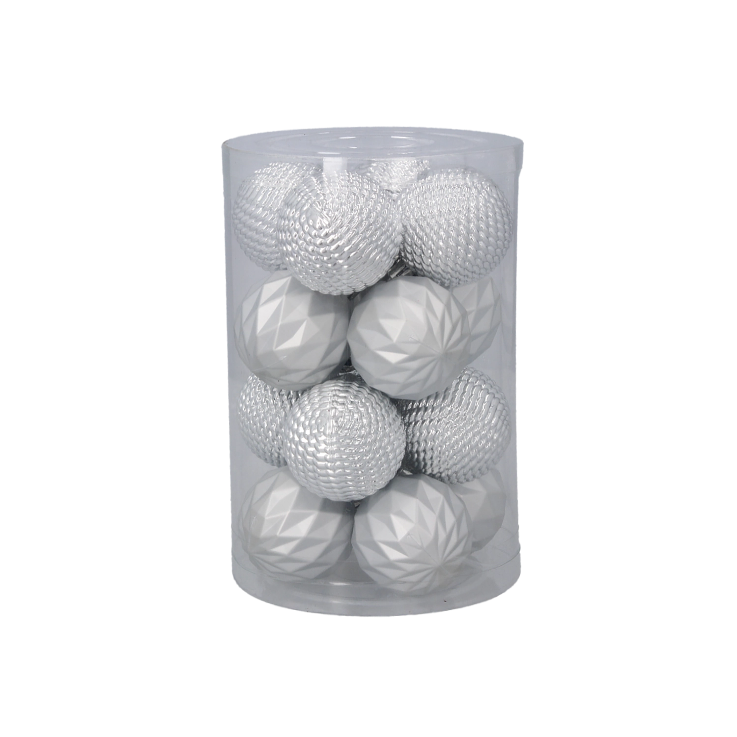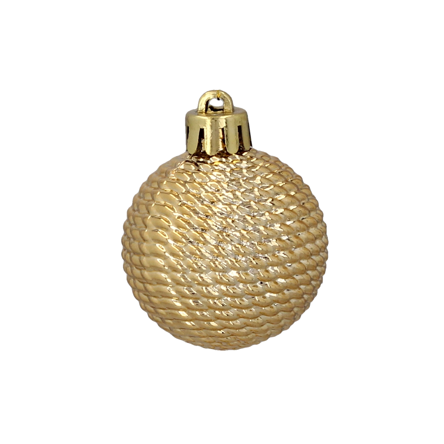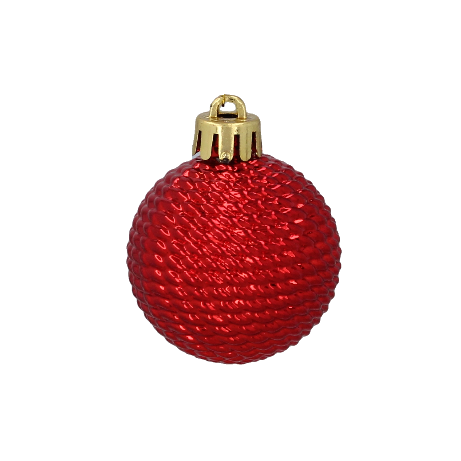 Giv dit hjem julestemning med en afbalanceret palet af klassiske farver. Blandingen af forskellige strukturer og mønstre på kuglernes overflade skaber smukke lysreflekser og giver dekorationen dybde. Takket være den ensartede størrelse på 4 cm er ornamenterne lette at matche med lyskæder, bånd og andre dekorationer.