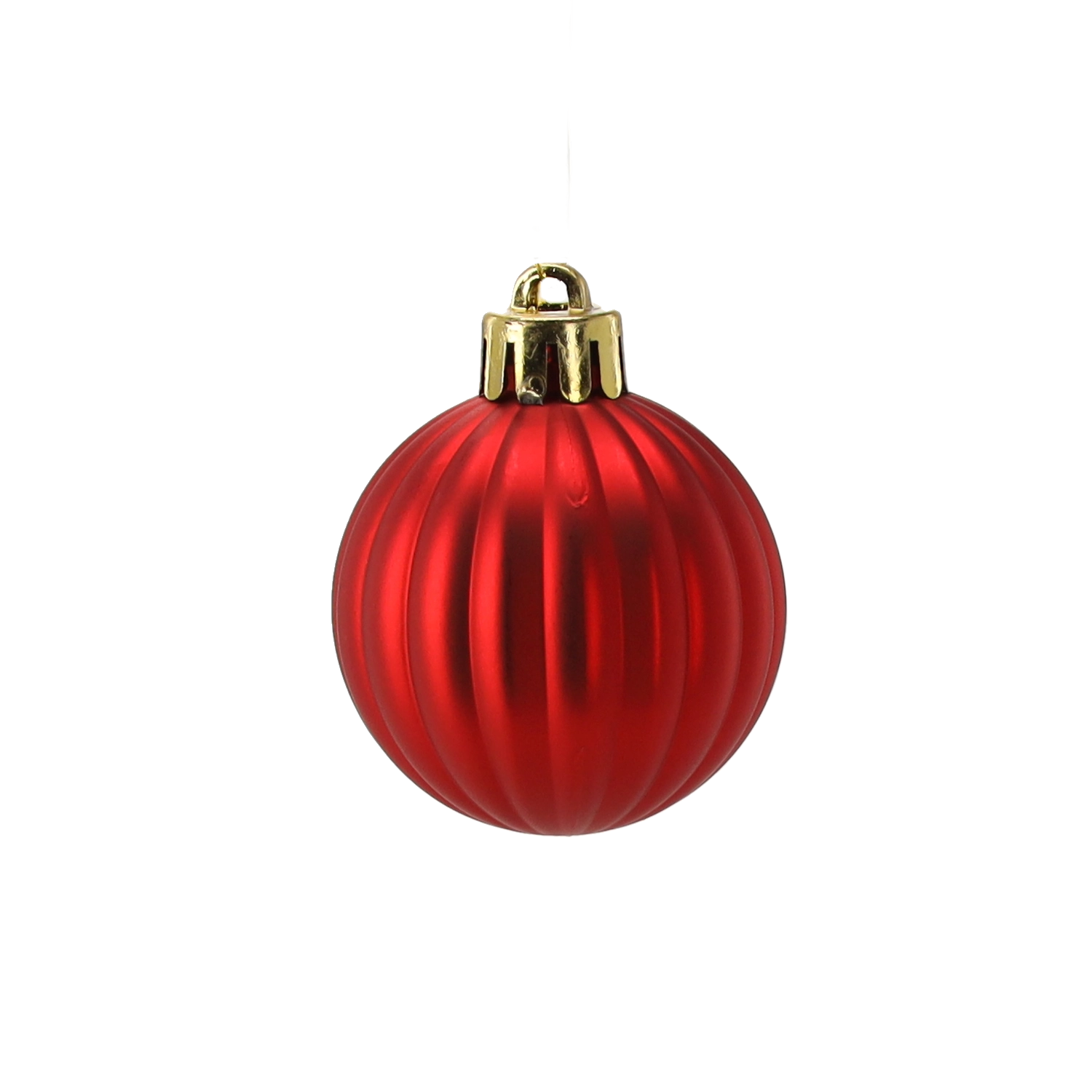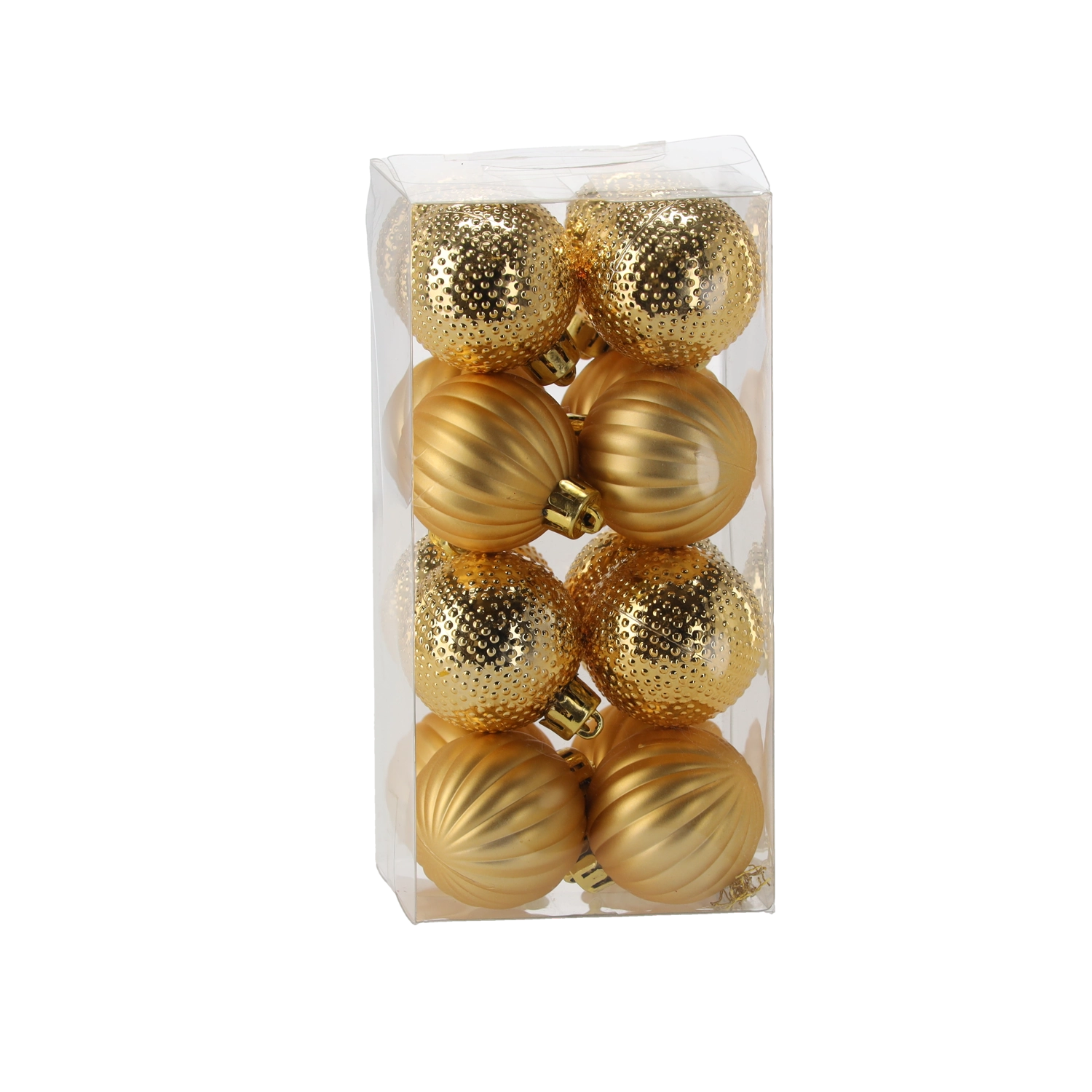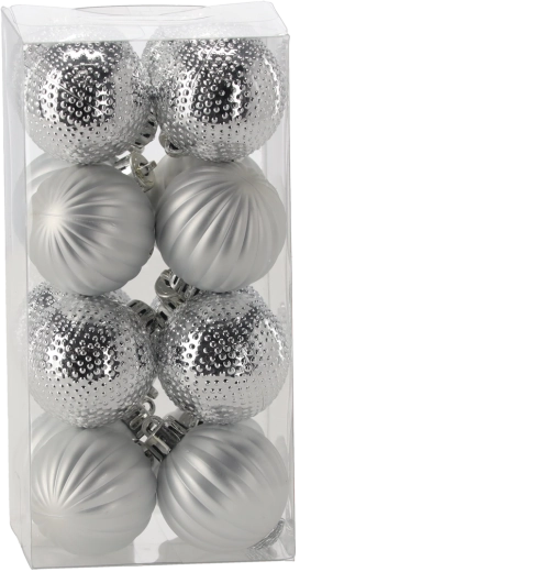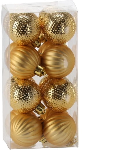 Skab en harmonisk juleudsmykning med et sæt på 16 kugler med en diameter på 4 cm i de traditionelle farver rød, guld og sølv. Kombinationen af matte, blanke og glitrende overflader med riflede og prikkede teksturer giver et effektfuldt lys-spil og et stilfuldt, elegant udtryk.