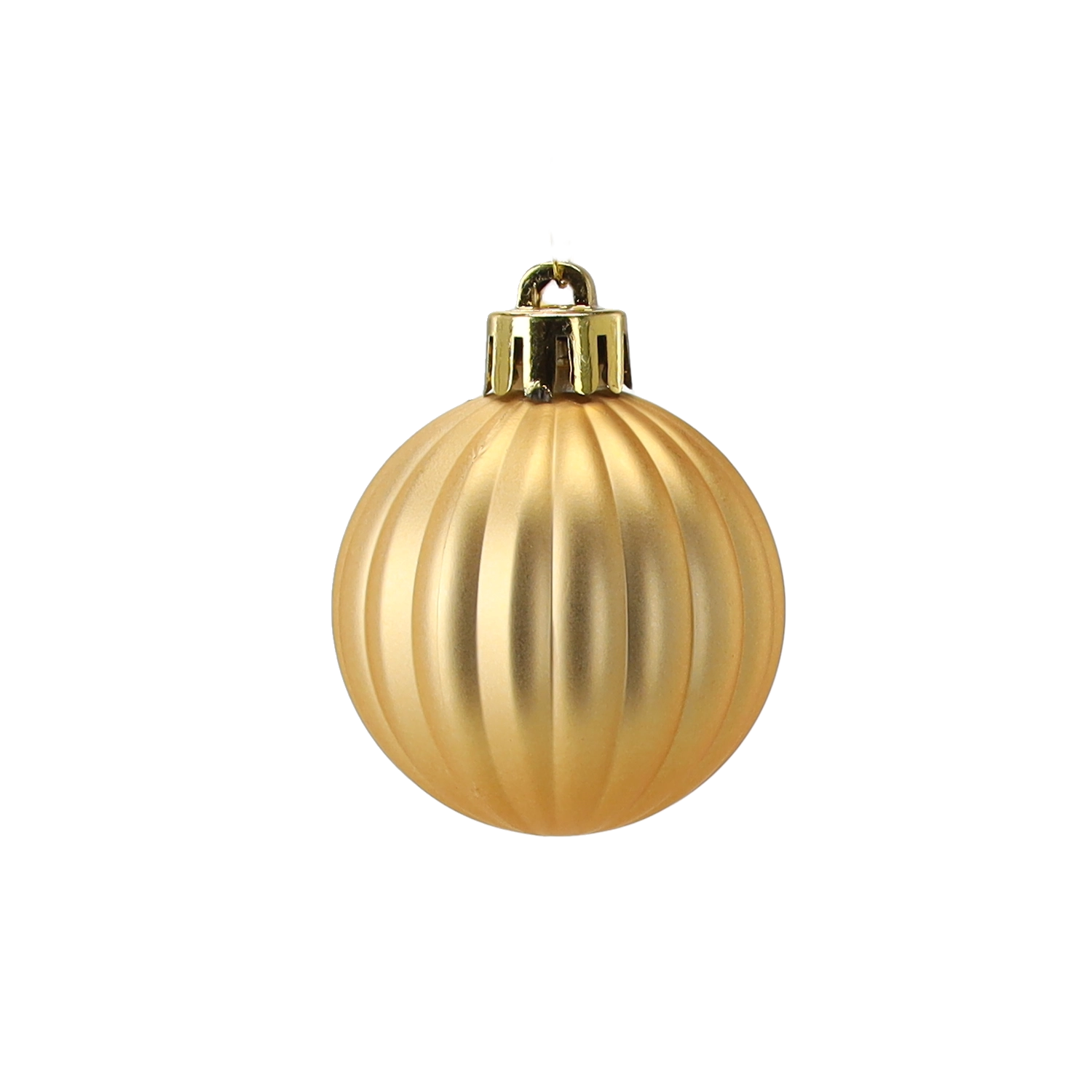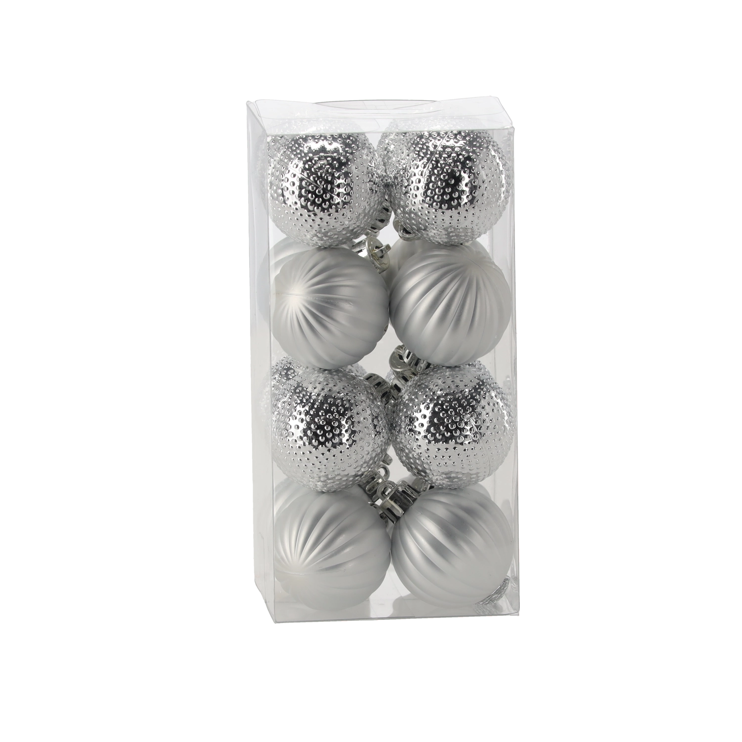 Matte, riflede kugler skaber en diskret kontrast til de blanke og glitrende varianter og giver visuel dybde på træet.