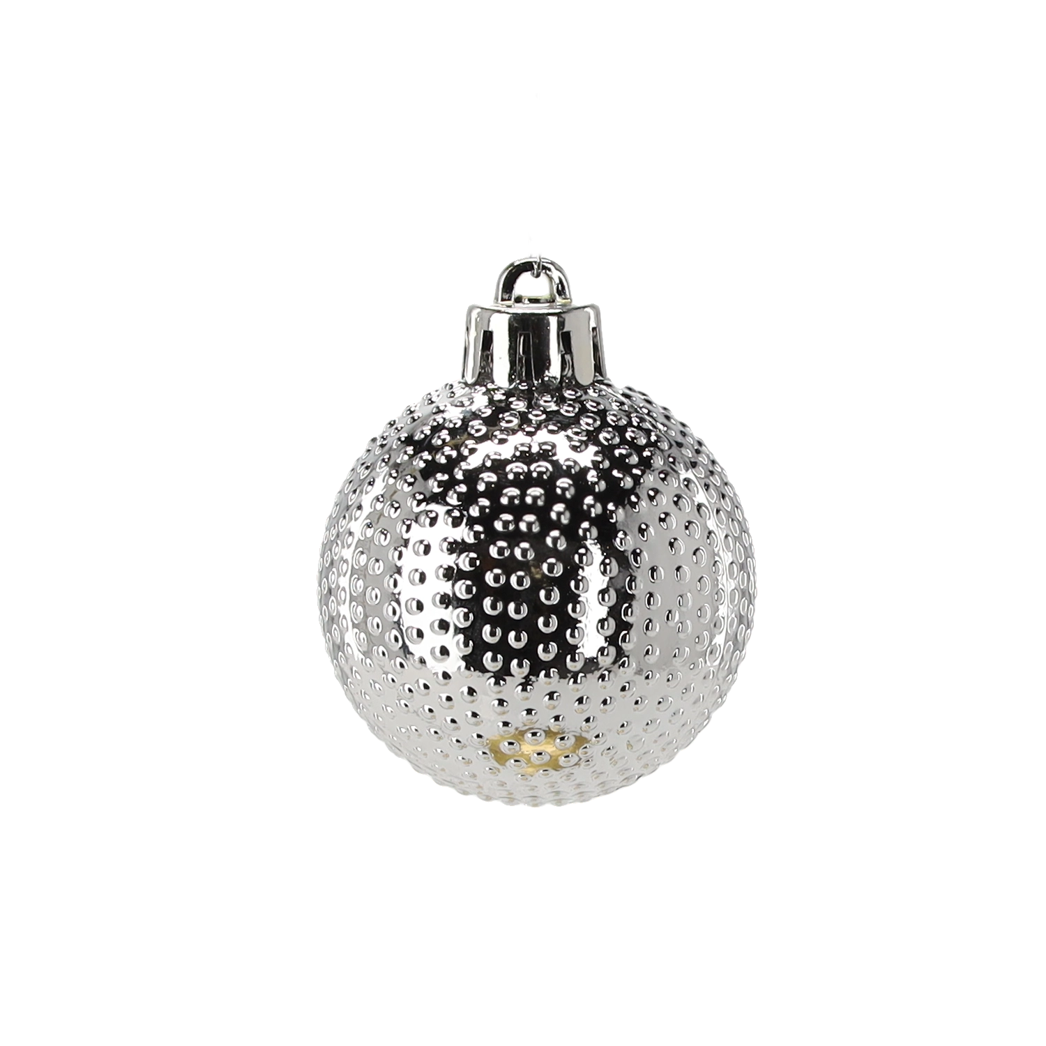 Kugler med finprikket overflade og højglans reflekterer lyset og giver dekorationen et gnistrende udtryk uden at gå på kompromis med elegancen.