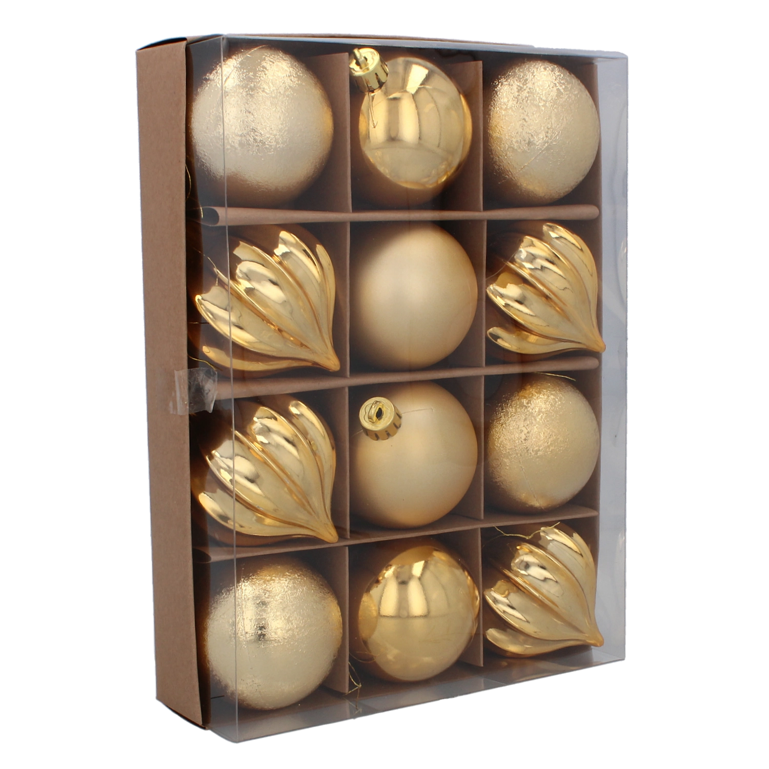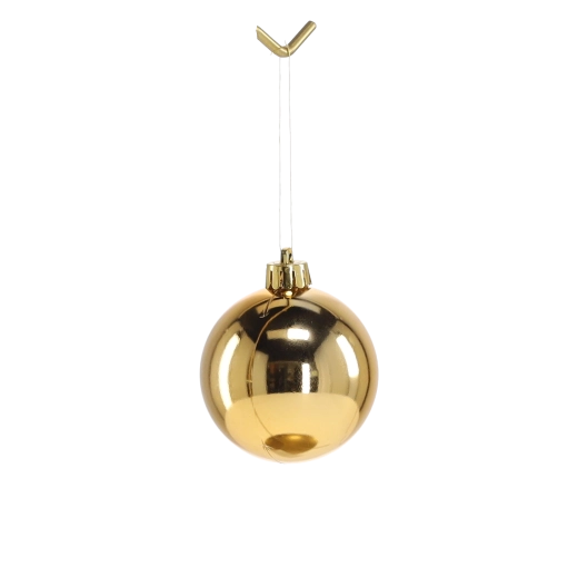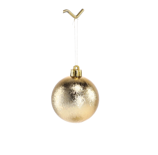 Elegant sæt med 12 juleornamenter med en diameter på 6 cm i en kombination af rød, guld og sølv, der giver træet et traditionelt præg. Pynten er lavet af let, uknuselig plast, så den er sikker for både børn og kæledyr. En blanding af matte, blanke og teksturerede overflader skaber en livlig og harmonisk effekt, og den transparente emballage gør det nemt at opbevare efter højtiden.