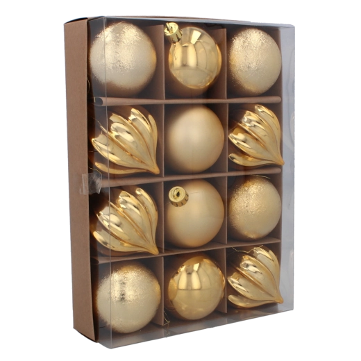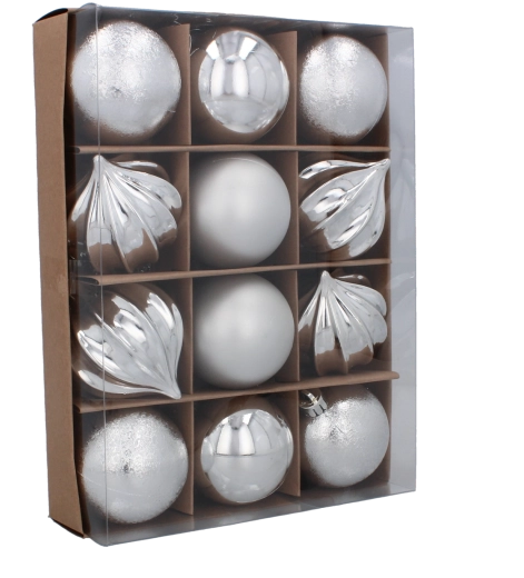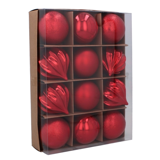 Dette alsidige sæt pynter både små og mellemstore træer, kranse og guirlander. Takket være den lette konstruktion tynger de ikke grenene ned, og metaløjer med kroge giver hurtig og sikker ophængning. Den klassiske palet af rød, guld og sølv er nem at kombinere med de fleste lyskæder og dekorationer.