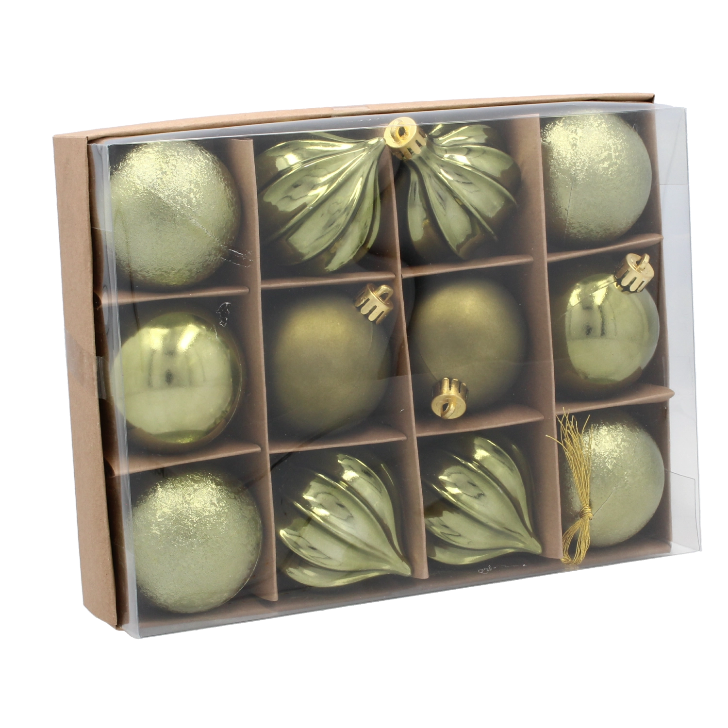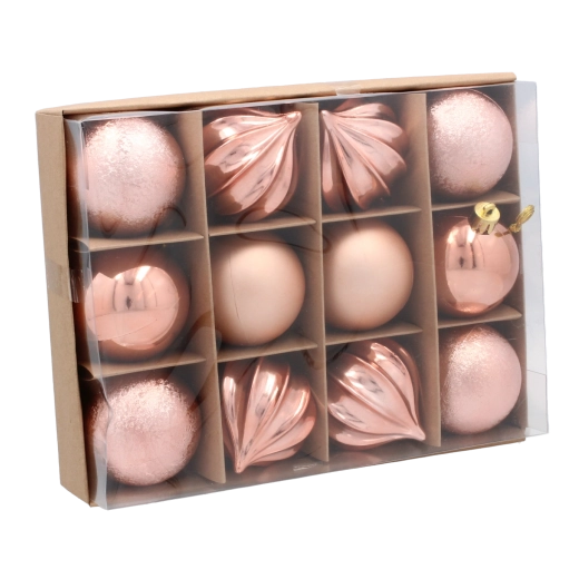 Skab en harmonisk, festlig stemning med sættet med 12 ornamenter, der kombinerer tre trendy nuancer – oliven, kobber og grafit. Hver kugle har en diameter på 6 cm og giver med forskellige overflader og mønstre nemt dekorationen dybde og stil.
