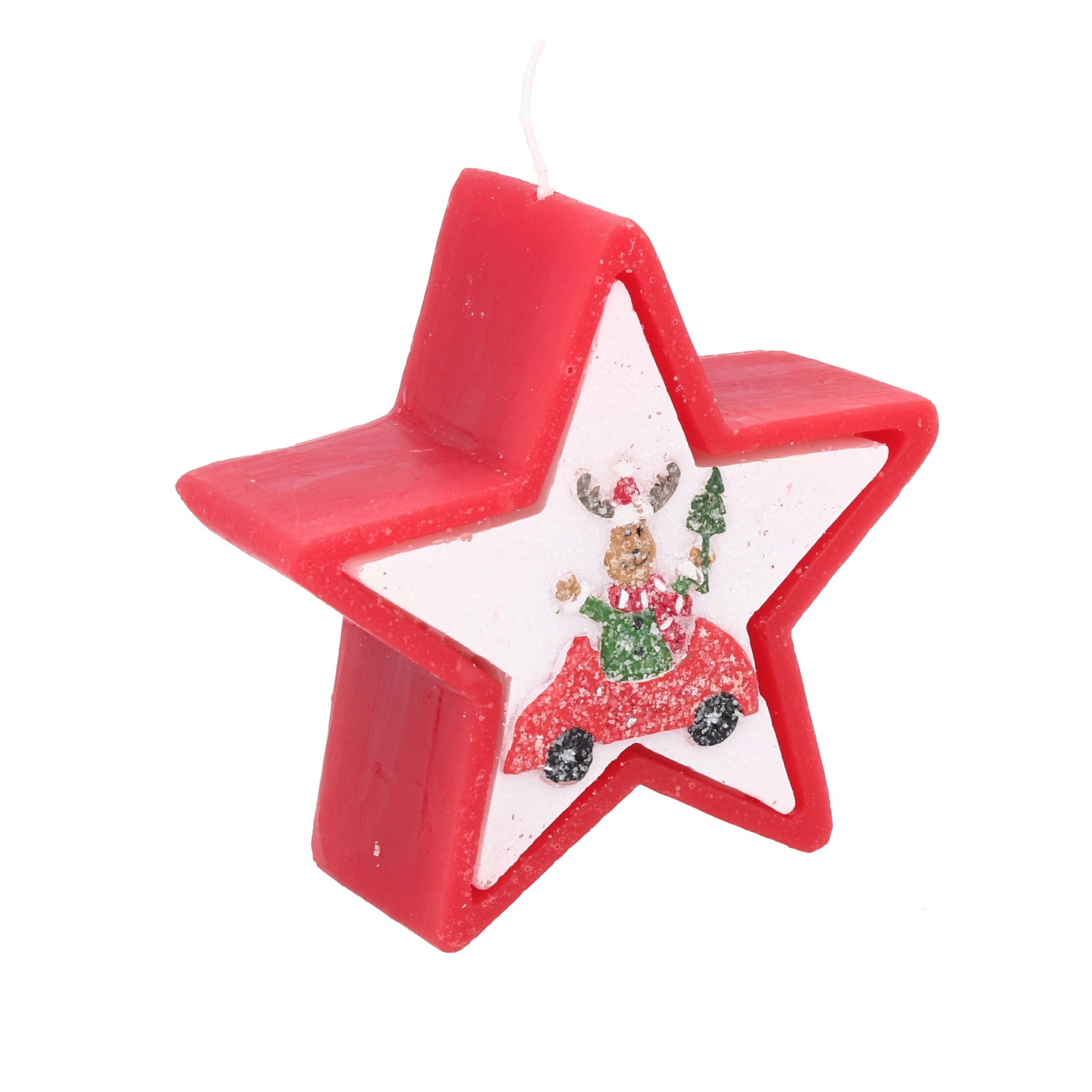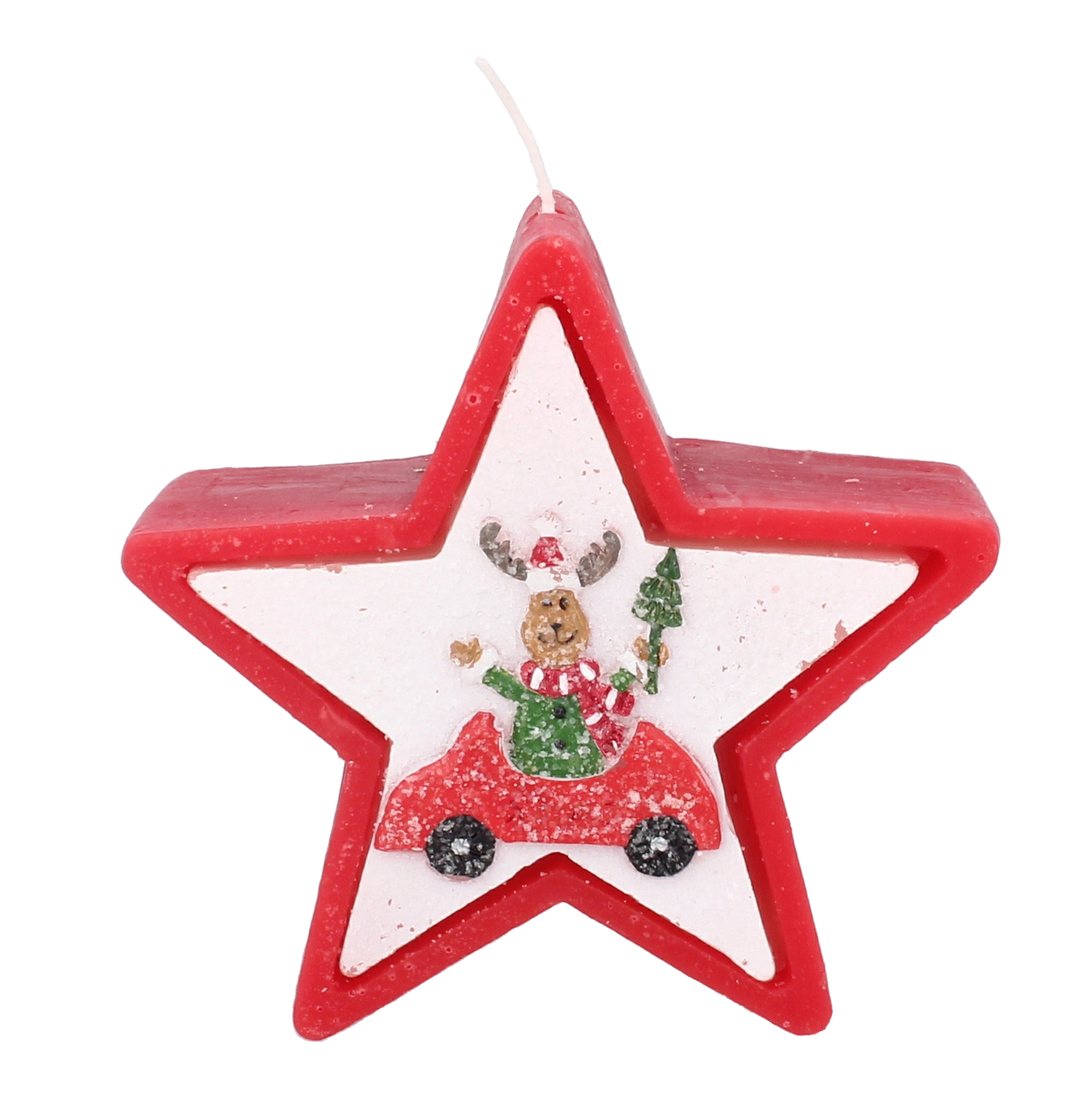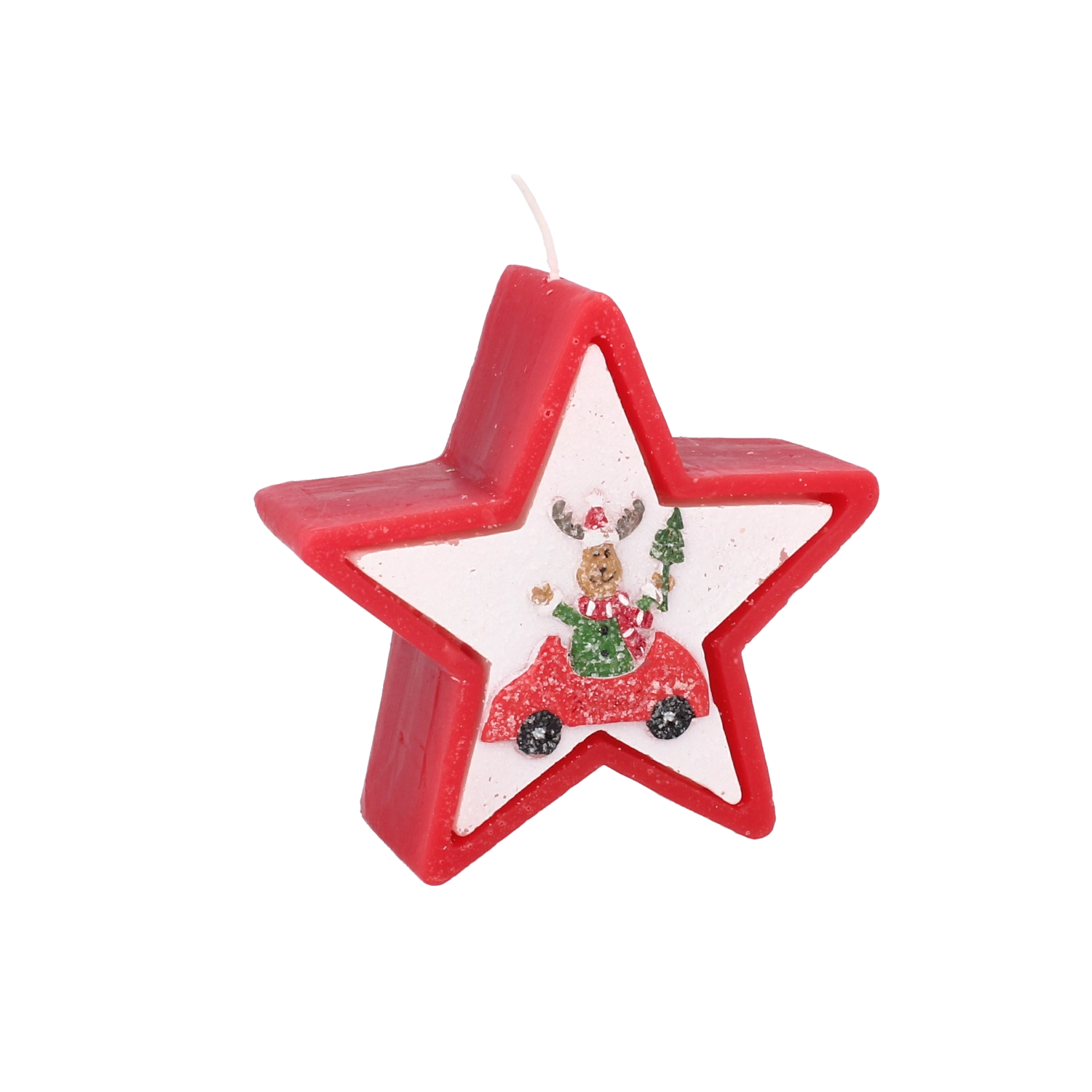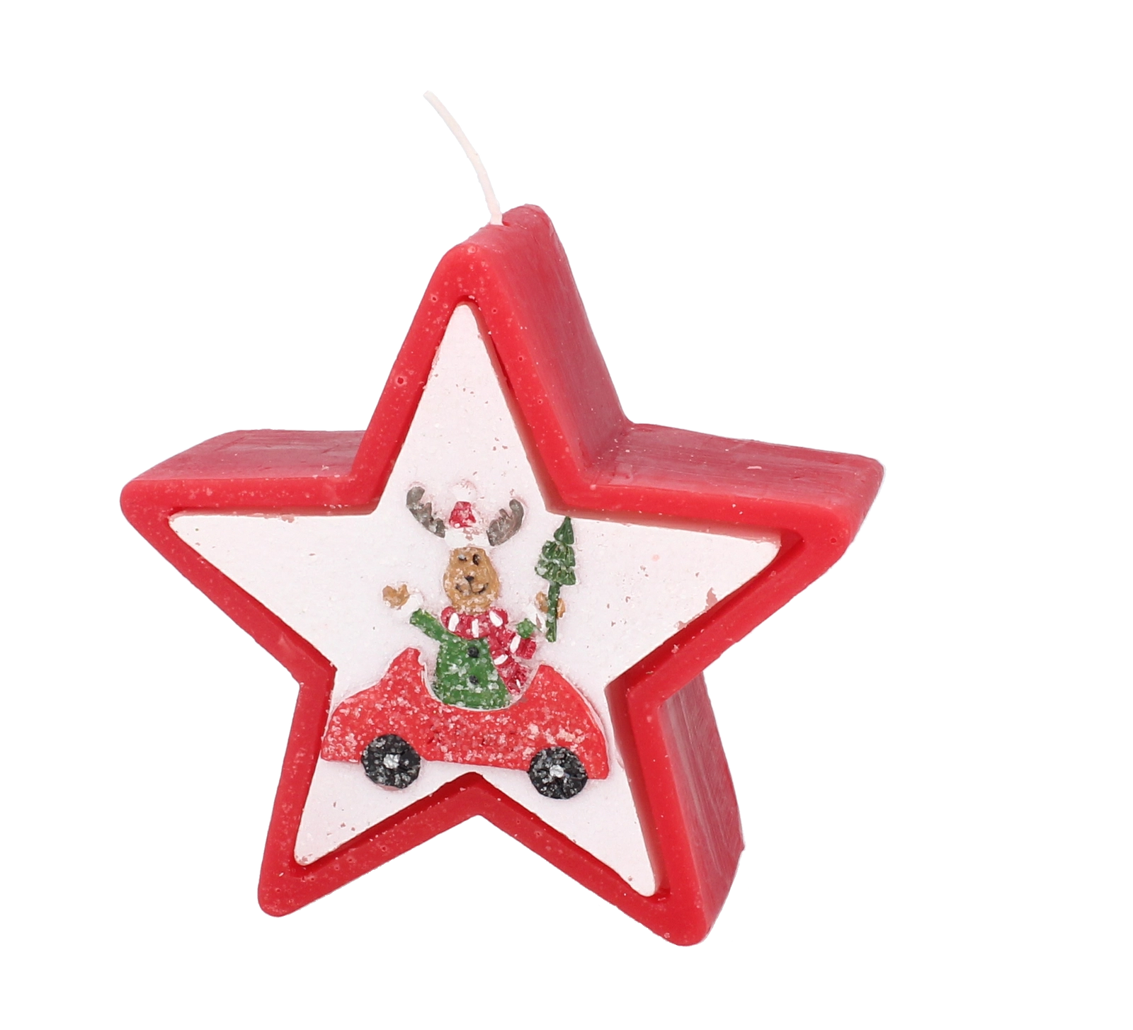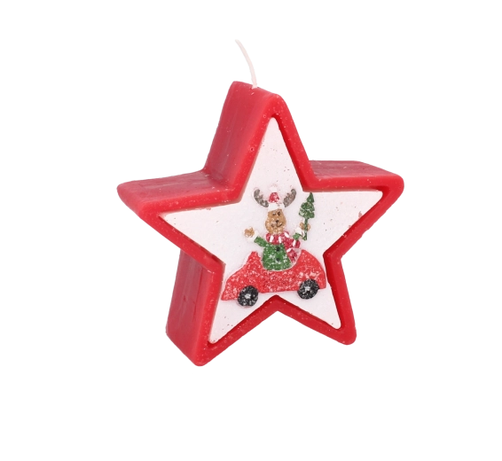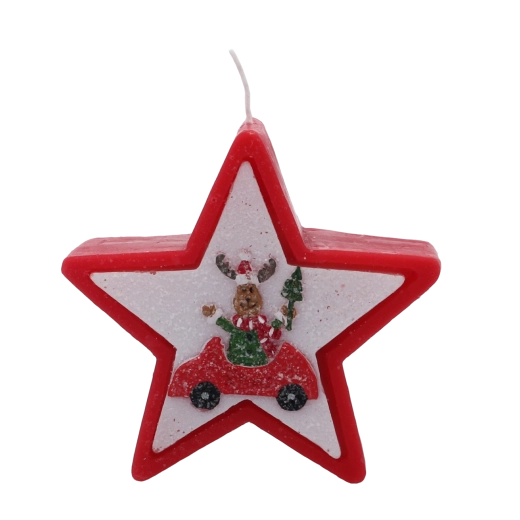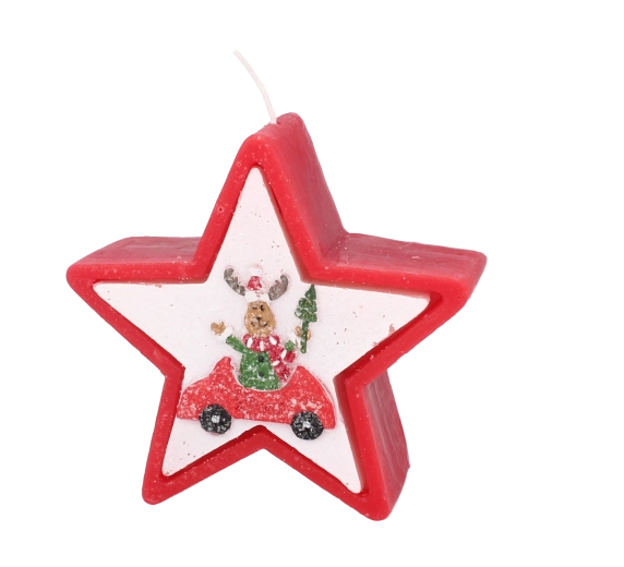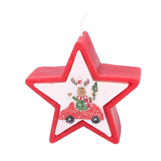Dette julelys i elegant stjerneform imponerer med et muntert motiv af et rensdyr i bil og skaber straks en varm og hyggelig julestemning. Voks af høj kvalitet giver en stabil og jævn forbrænding, så du kan nyde lyset længere.