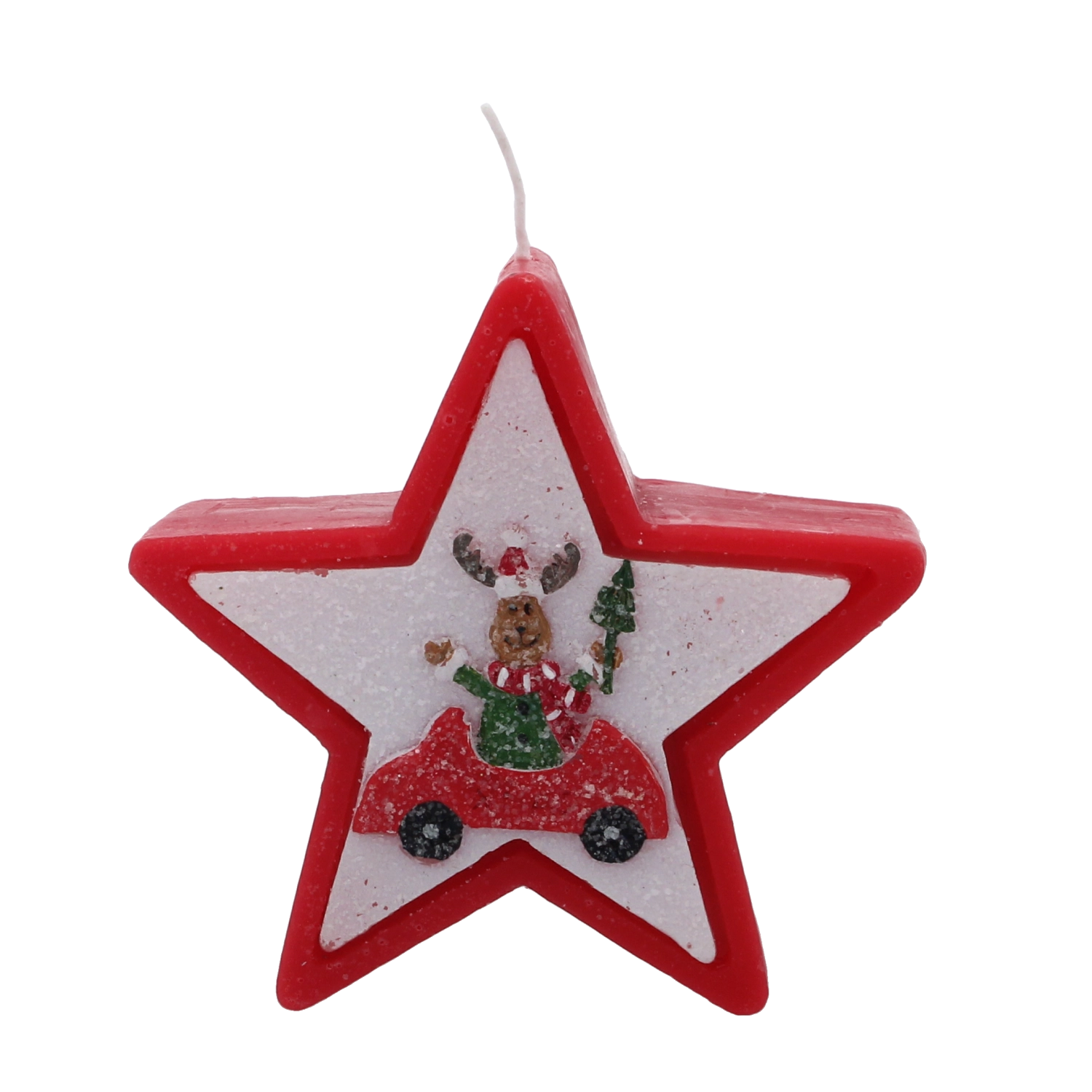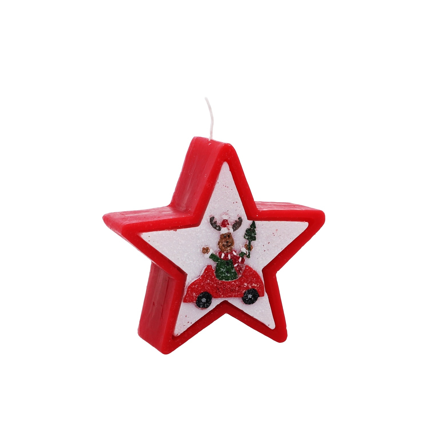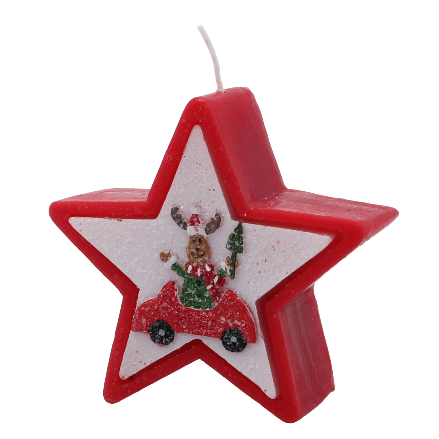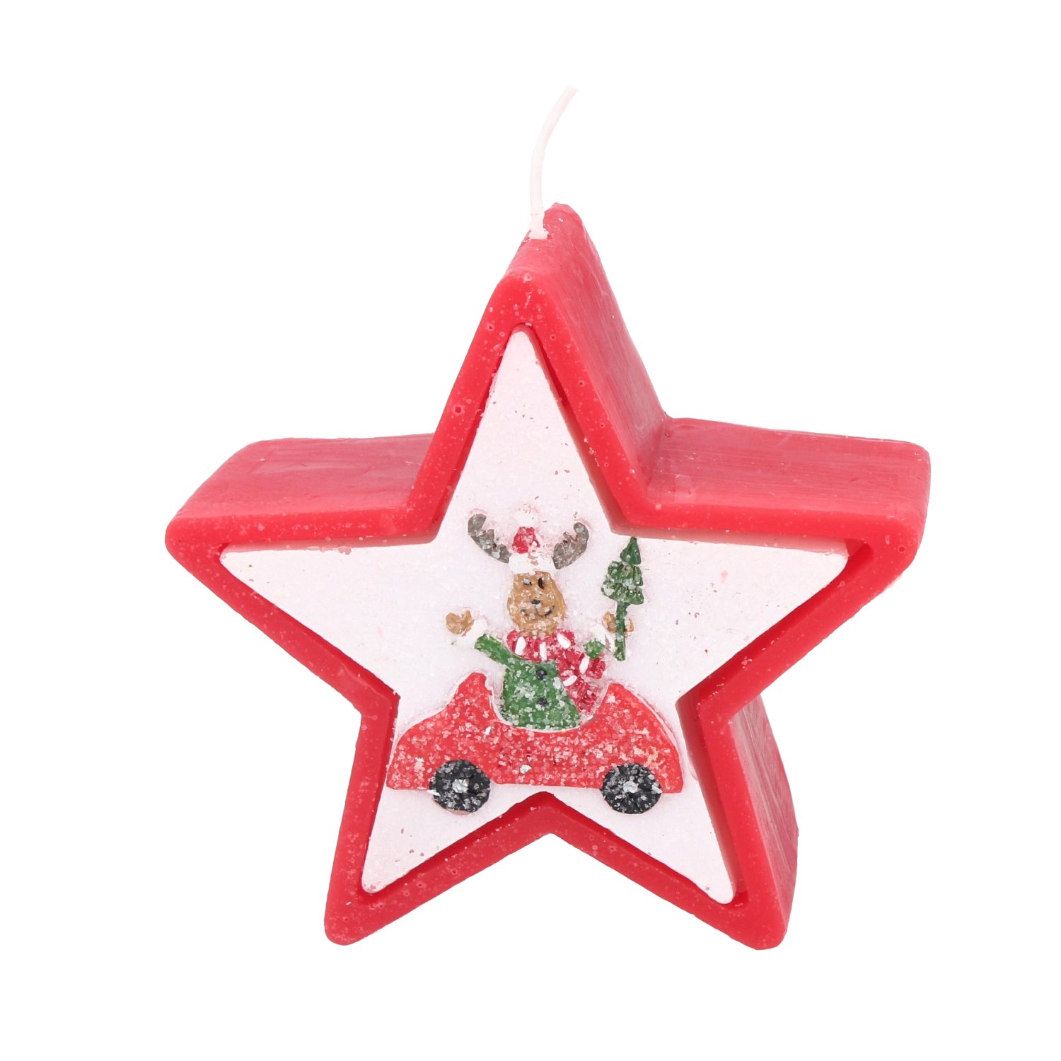 Dette julelys i elegant stjerneform imponerer med et muntert motiv af et rensdyr i bil og skaber straks en varm og hyggelig julestemning. Voks af høj kvalitet giver en stabil og jævn forbrænding, så du kan nyde lyset længere.