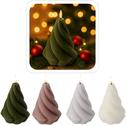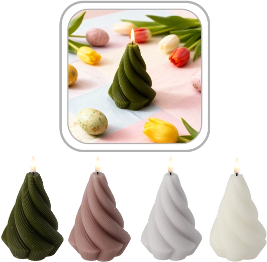 Elegant LED-stearinlys af ægte voks med et unikt spiraldesign giver varmt og hyggeligt lys uden røg og åben flamme. Takket være den praktiske 6/18 t timer og drift på 2× AA-batterier er det ideelt til enhver indretning og festlig udsmykning.
