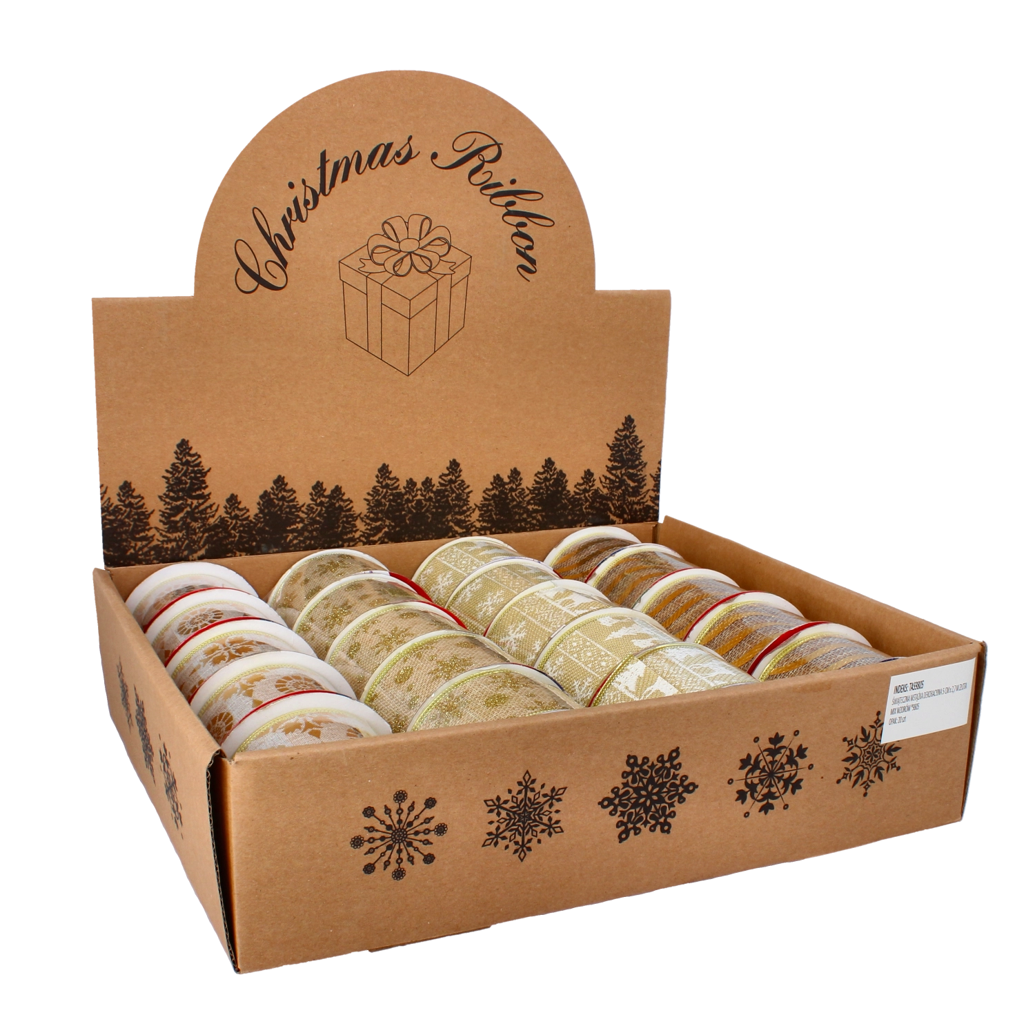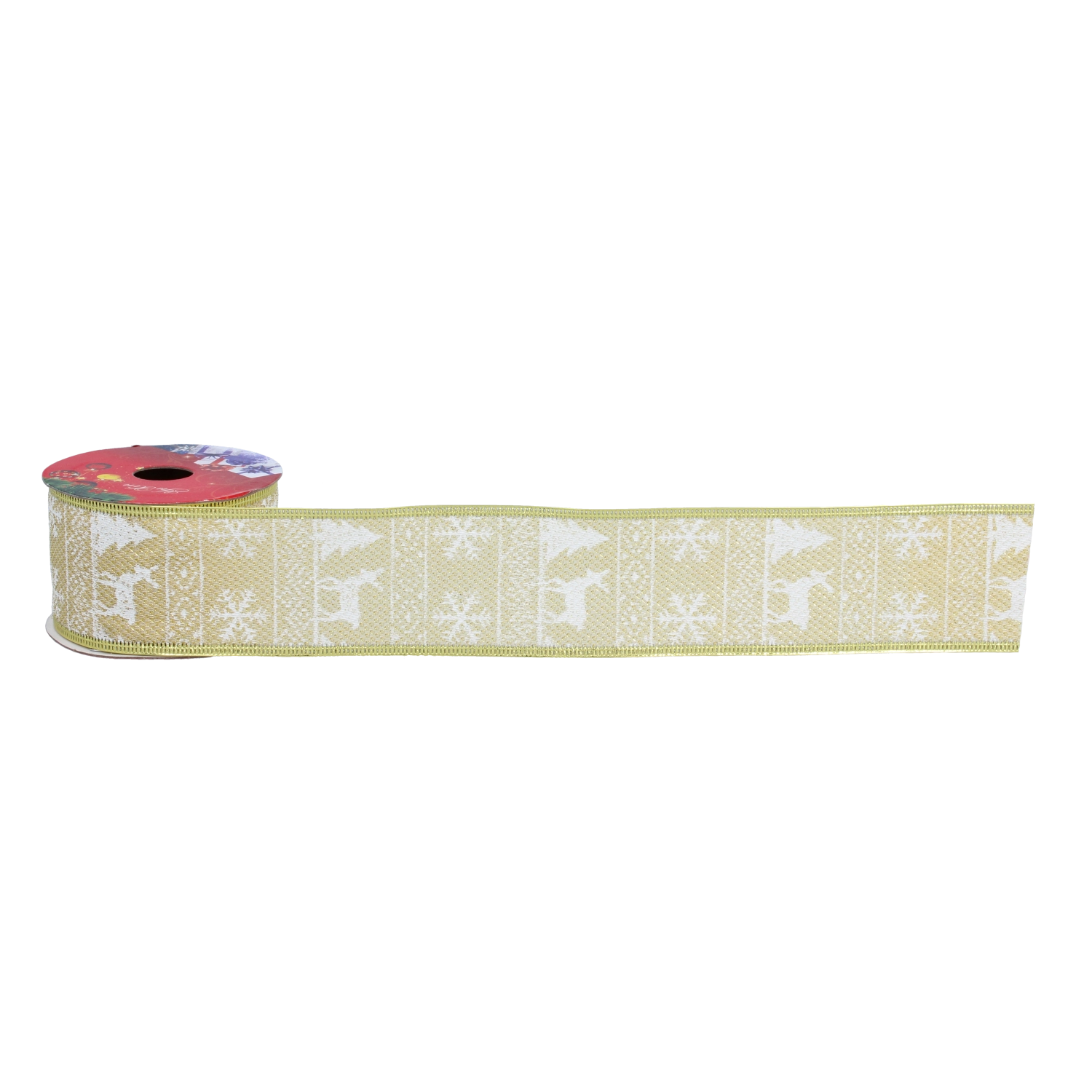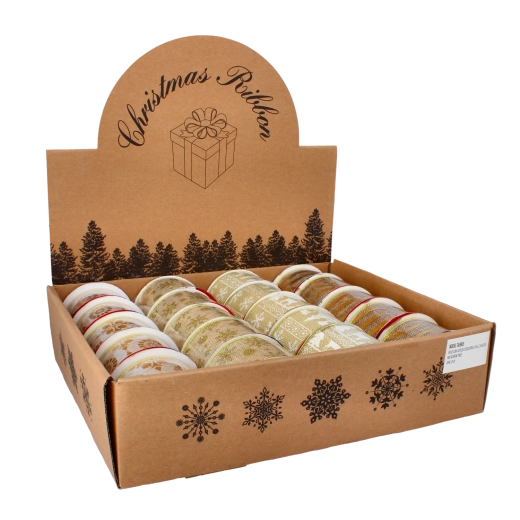 Båndet er fremstillet af tekstil i høj kvalitet, som er holdbart og stærkt, men samtidig tilpas bøjeligt til at forme sløjfer og dekorative elementer. Gyldent design med julemotiver understreger den festlige atmosfære og tilfører interiøret elegant glans.