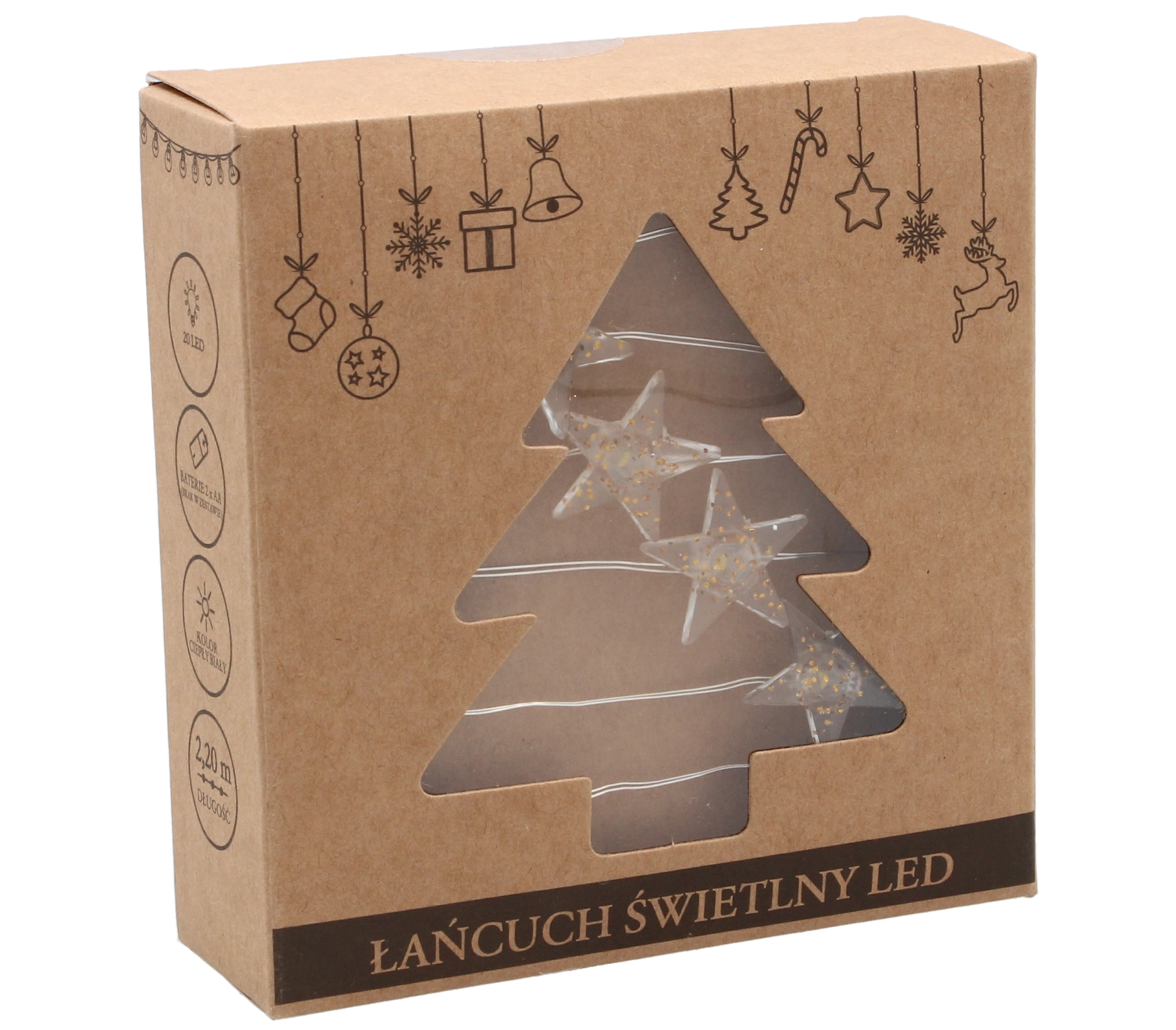 Den stilfulde lyskæde med stjernemotiv lyser enhver indretning op. Det varme hvide lys virker behageligt og skaber en festlig stemning, uanset om du bruger den til julepynt, i dekorationer på kommoden eller som en diskret accent i vinduet.