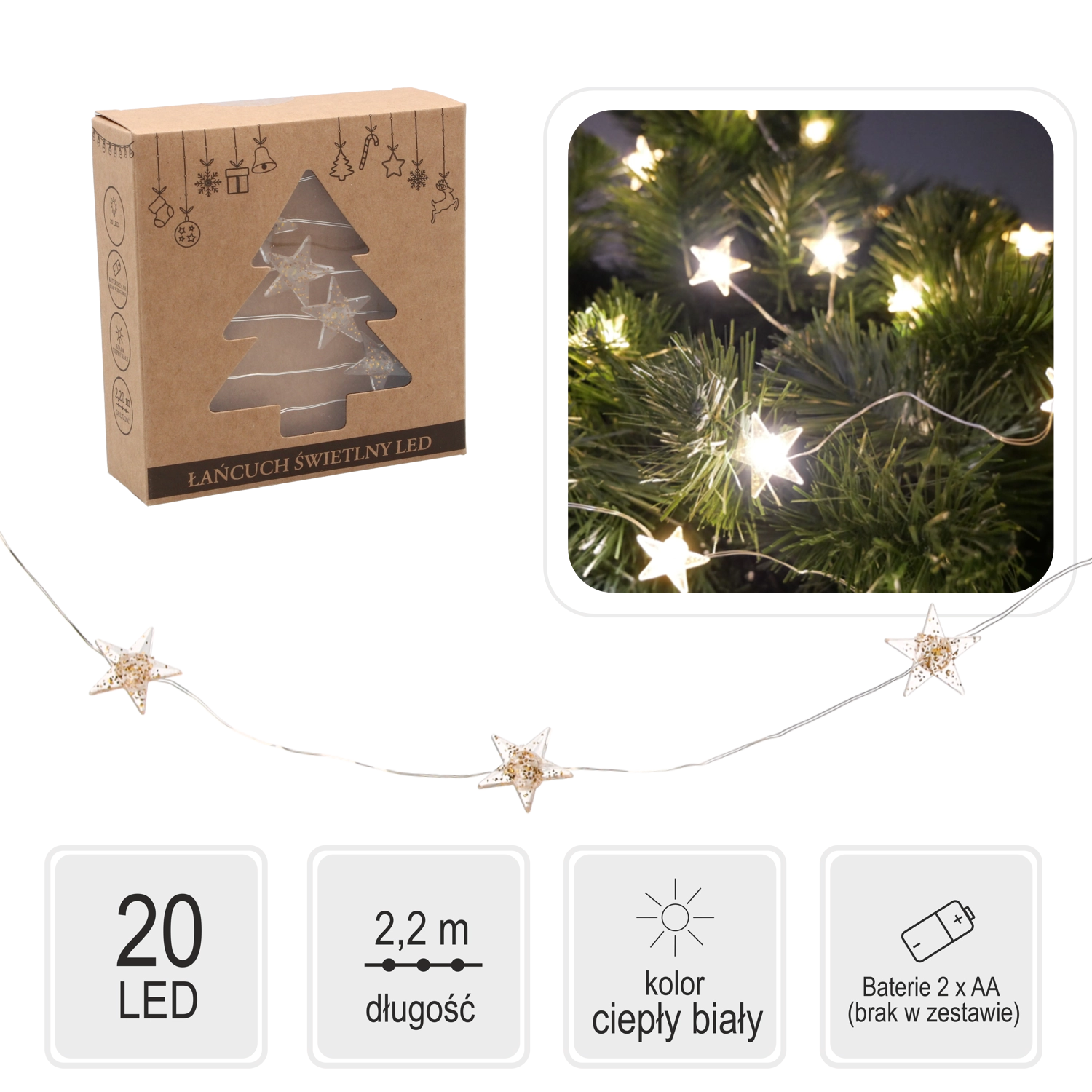- 20 LED med varmt hvidt lys for en hyggelig atmosfære