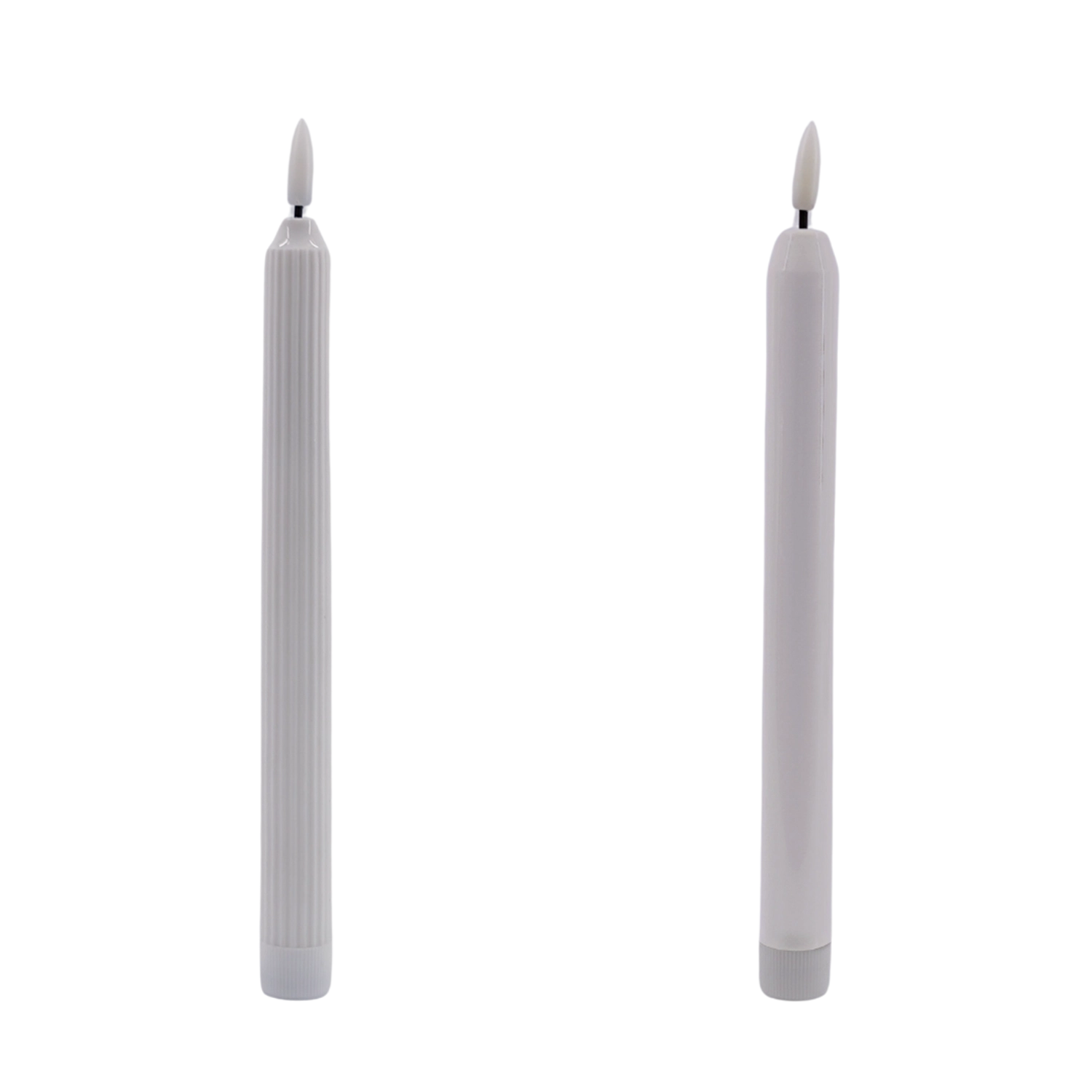 Elegant LED-stearinlys med en højde på 22,5 cm i varm hvid skaber en hyggelig atmosfære uden røg og rod. Takket være batteridrift er det ideelt til hjemmet, bryllupper og sæsonbestemt dekoration. Fås i mix af mønstre – glat og rillet overflade, så det passer til din indretning.