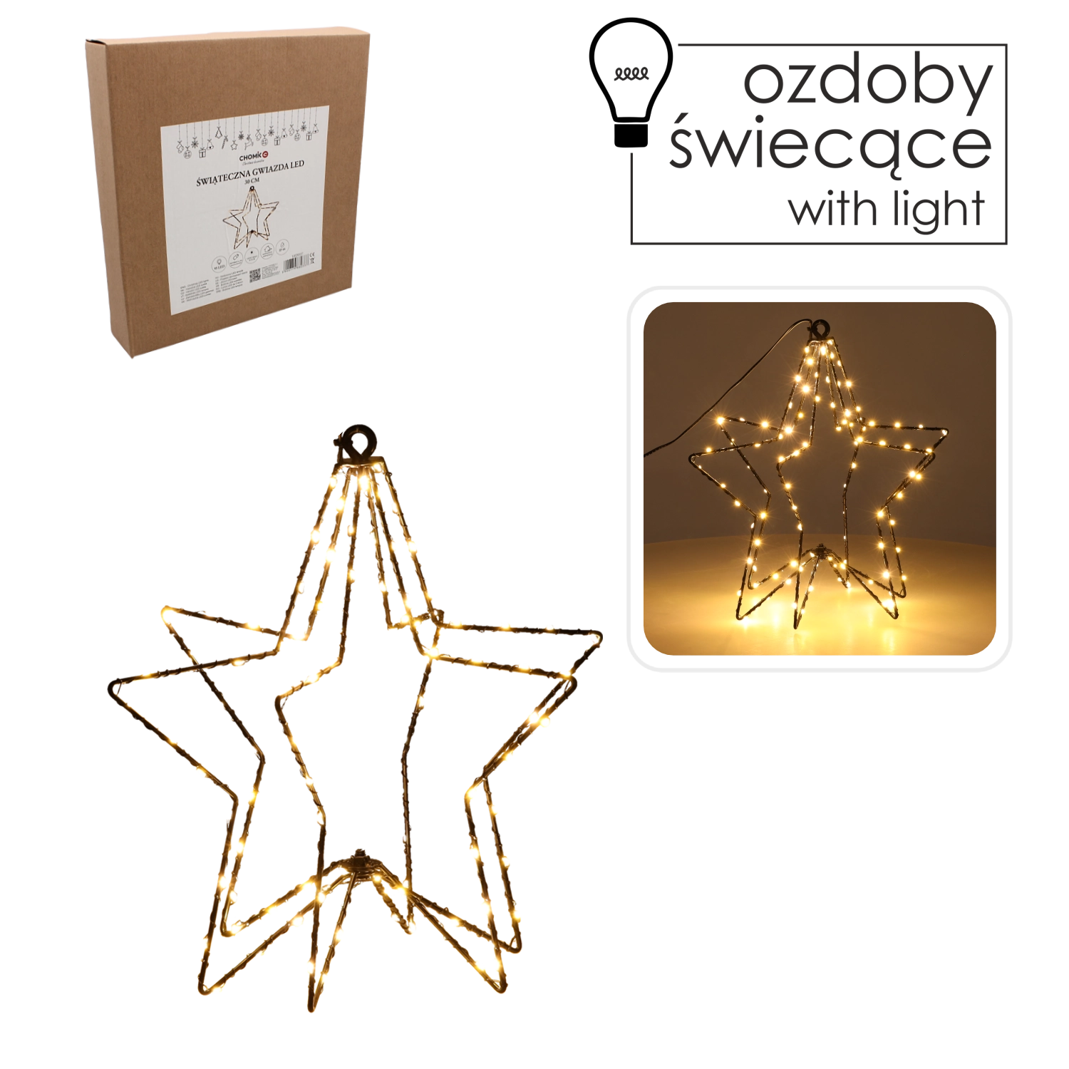 Stjernen er ideel til vindue, væg, hylde og et festligt dækket bord. Beskyttelsesklassen IP44 giver beskyttelse mod sprøjtende vand, så den er især velegnet til indendørs brug og beskyttede områder. Det enkle design i form af en markant stjerne passer både til klassiske og moderne arrangementer og komplimenterer anden julepynt perfekt.