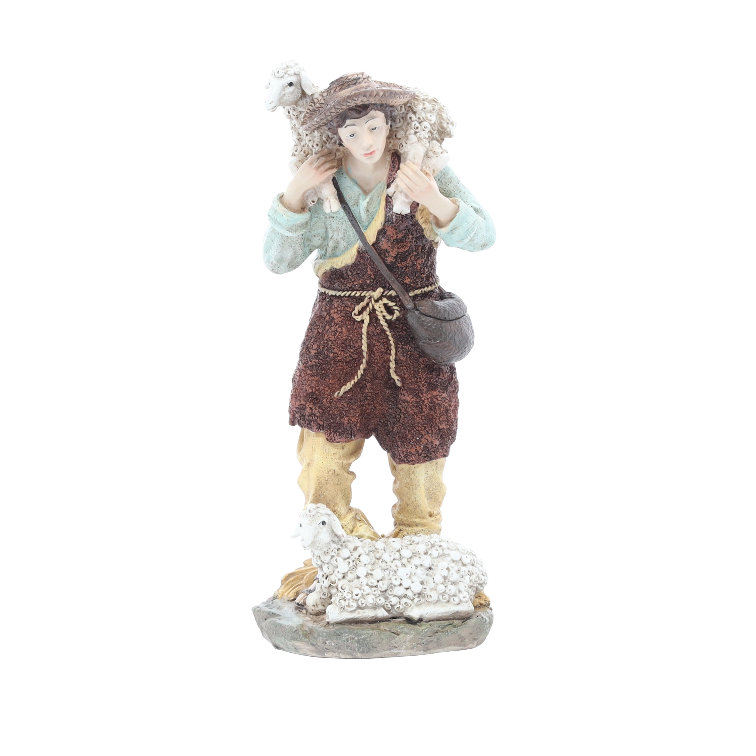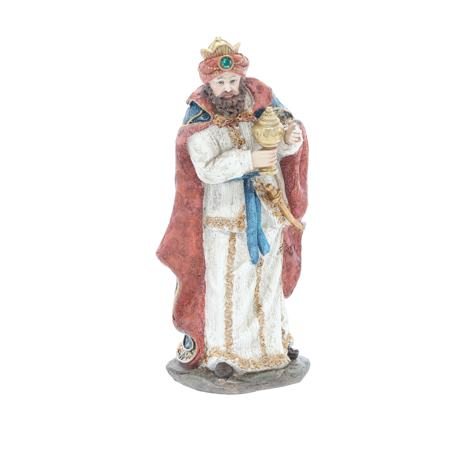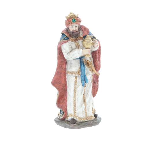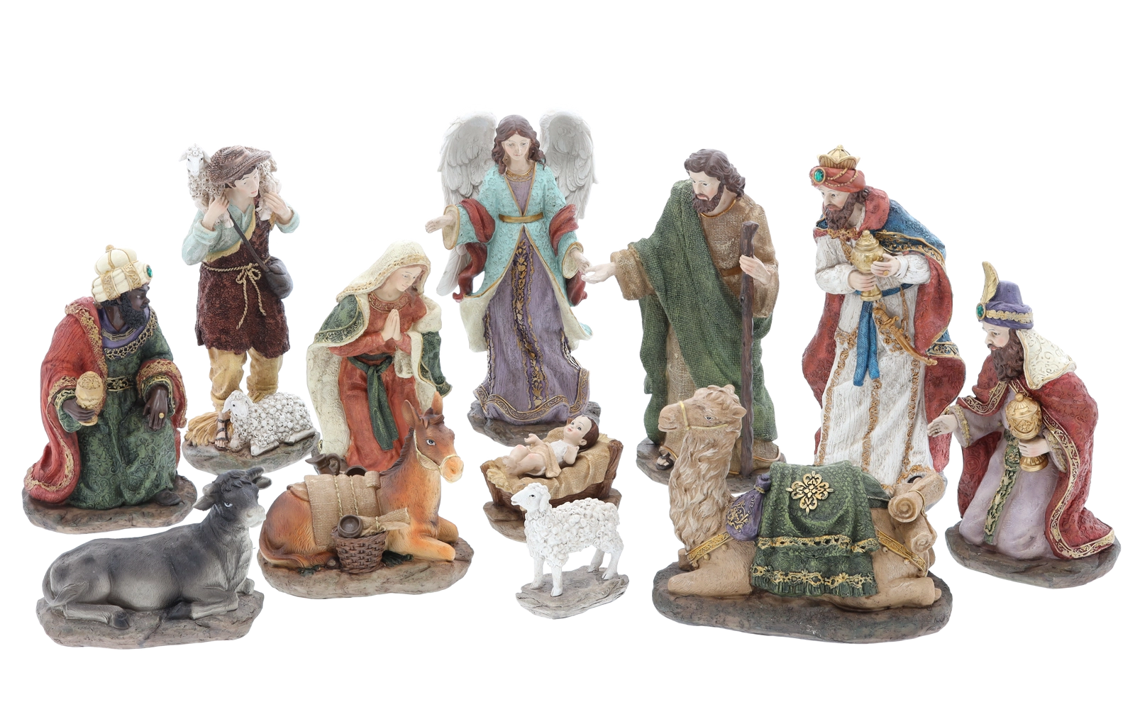 Dette komplette sæt af krybbefigurer omfatter Den Hellige Familie, de tre vise mænd, en engel, en hyrde og dyr (okse, får, æsel og kamel) – alt i afstemte farver og med rig tekstur. Polyresin sikrer lang holdbarhed, farvestabilitet og et elegant udtryk.
